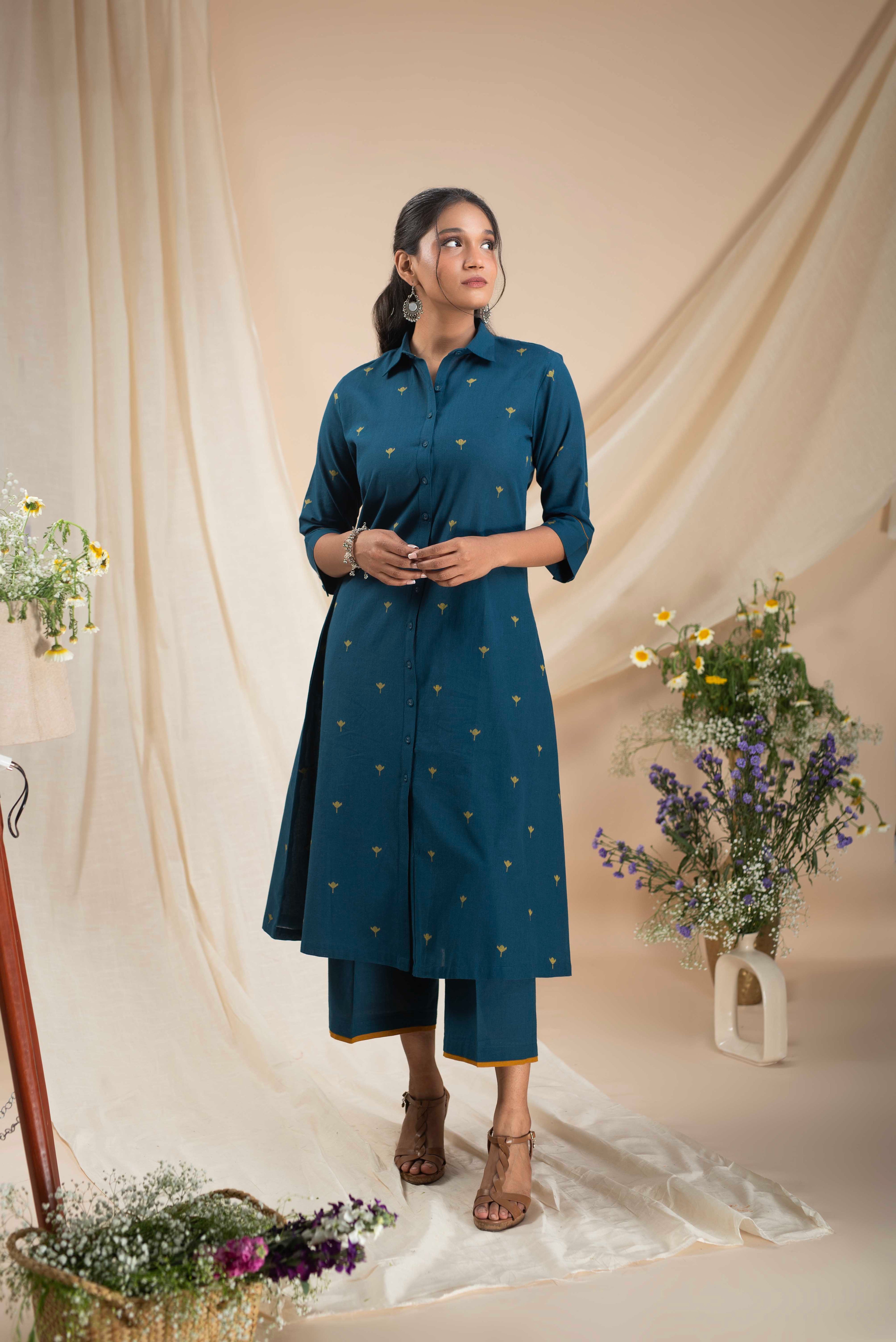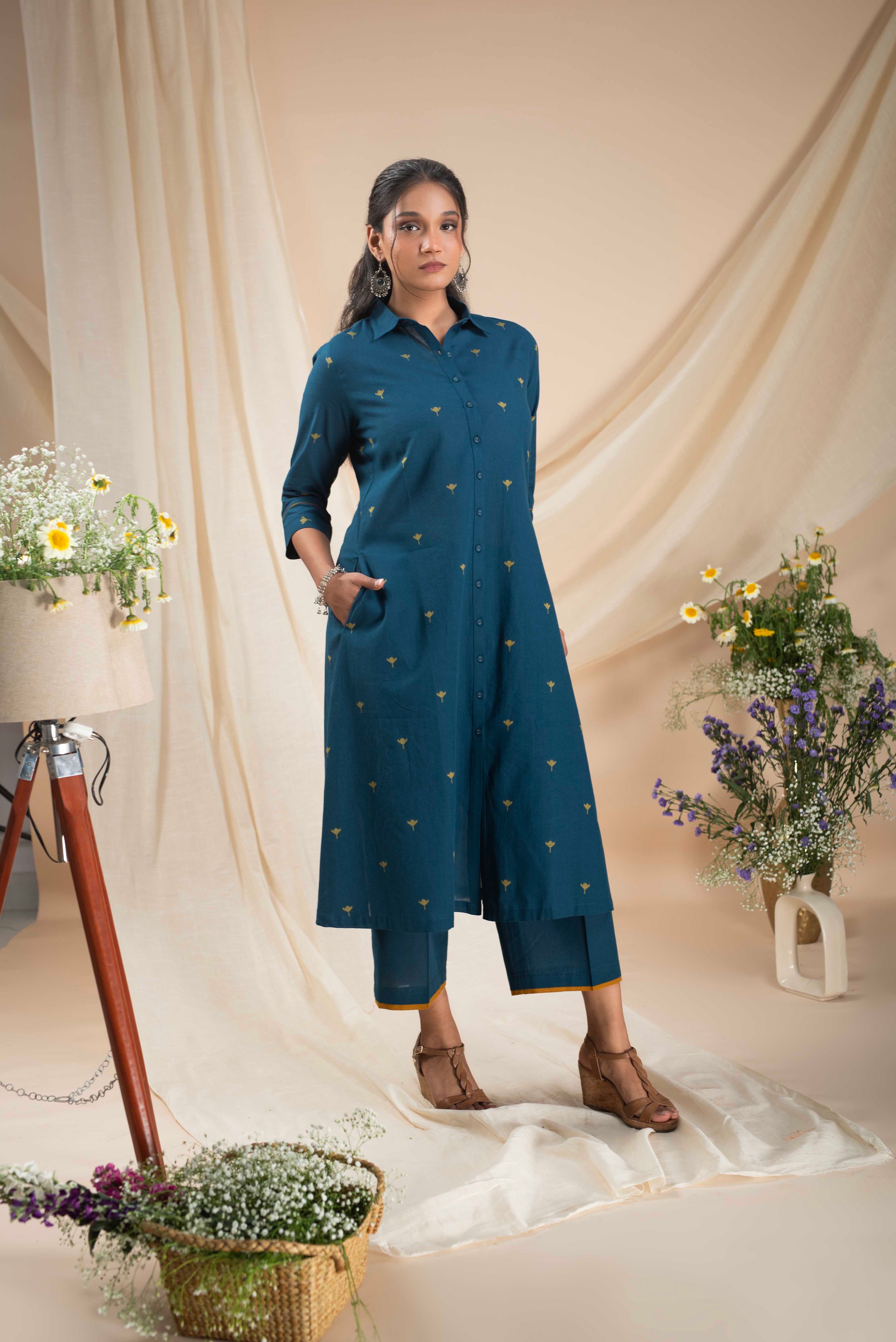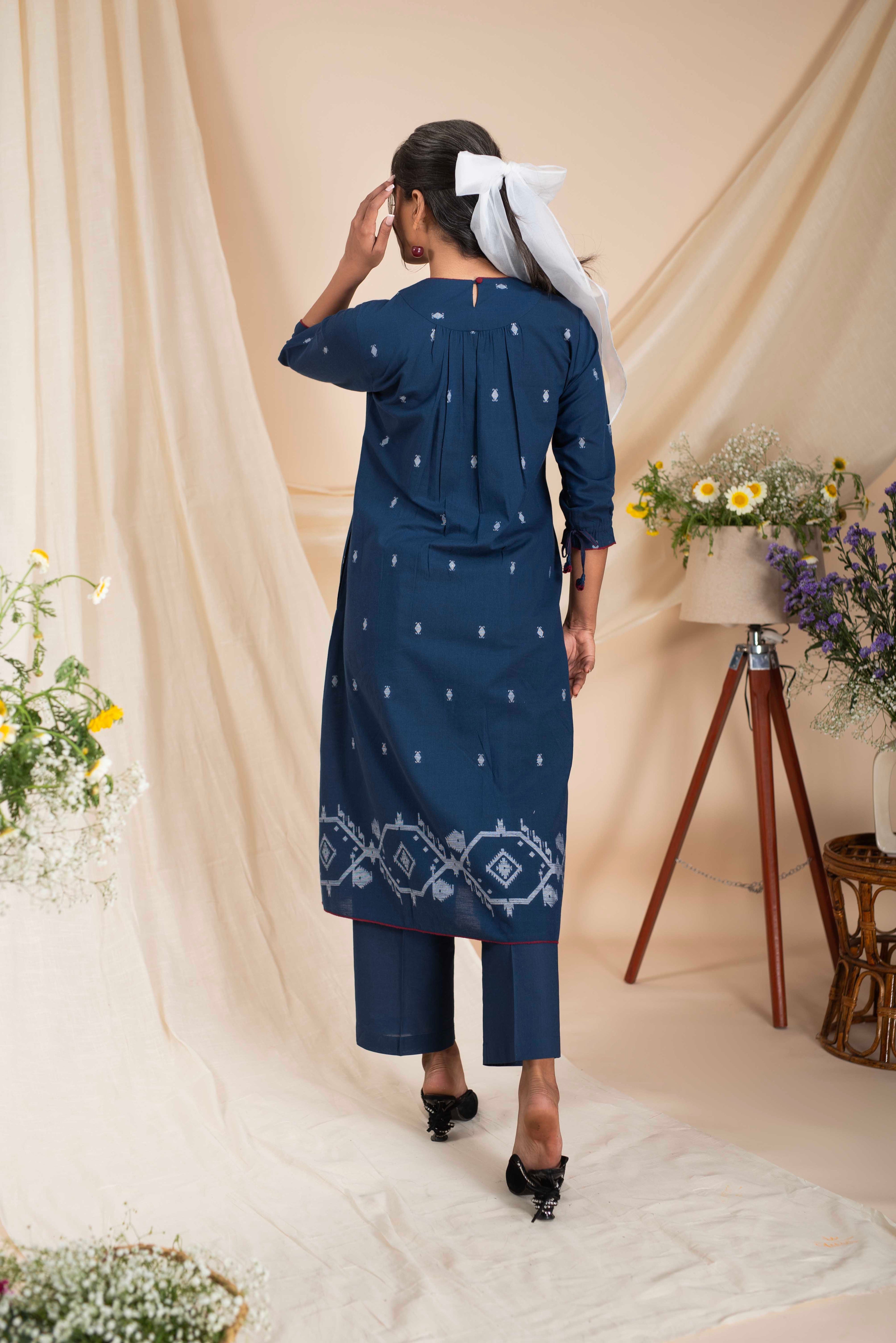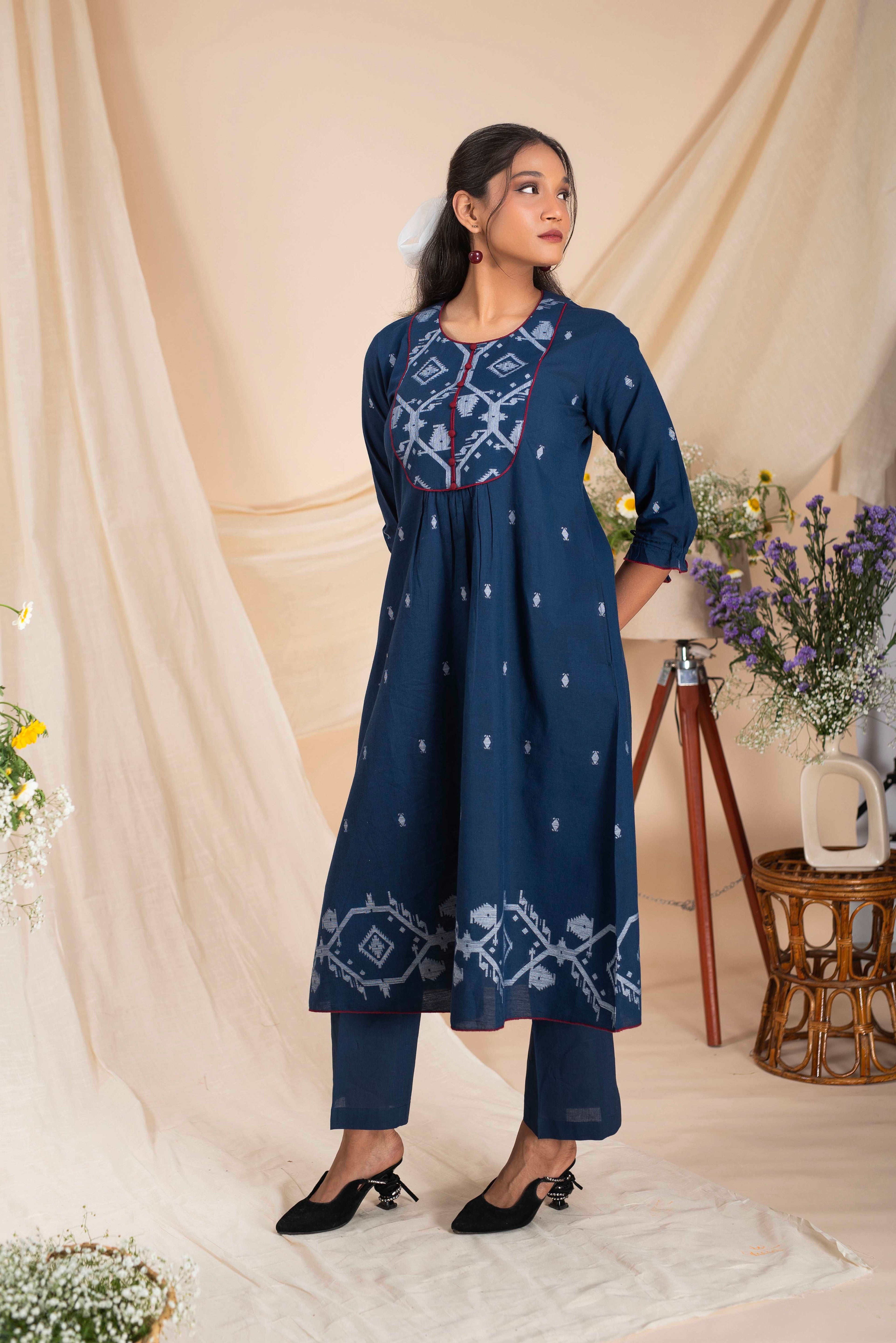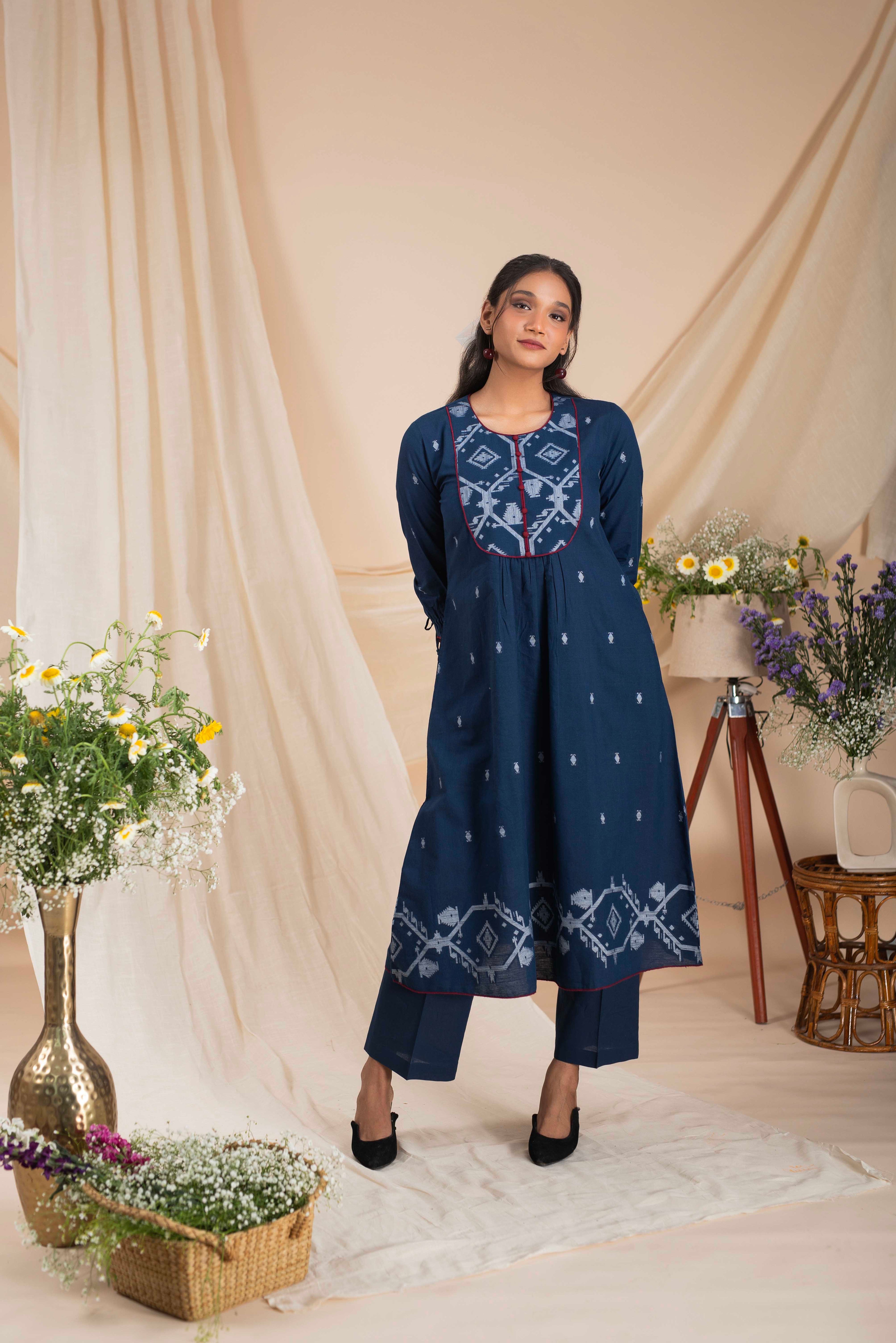 A-Line Kurta Pant Set - Embrace a feminine and flattering silhouette with our A-line kurta pant sets. The A-line cut of the kurta adds a touch of elegance, while the matching pants complete the ensemble for a stylish look.