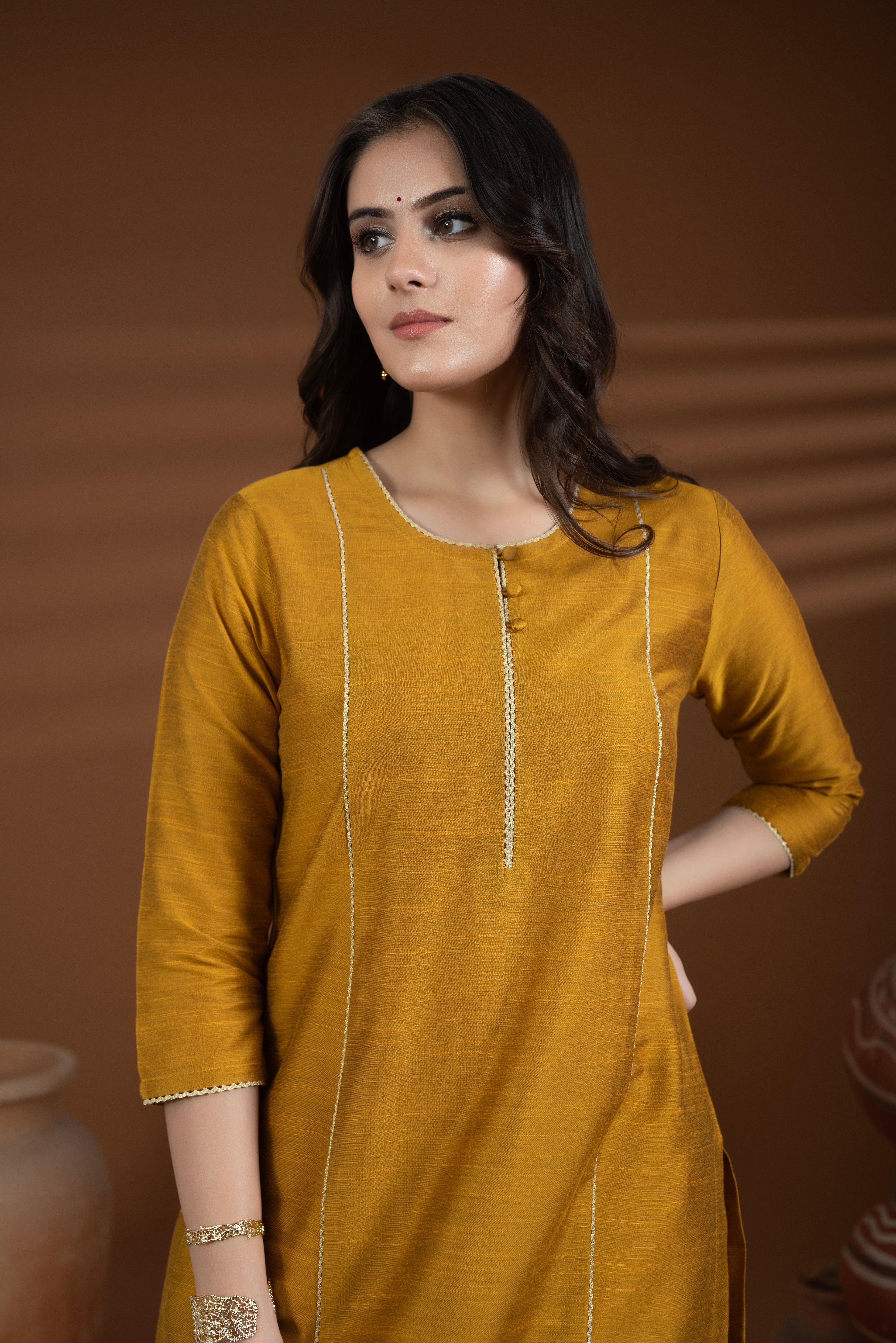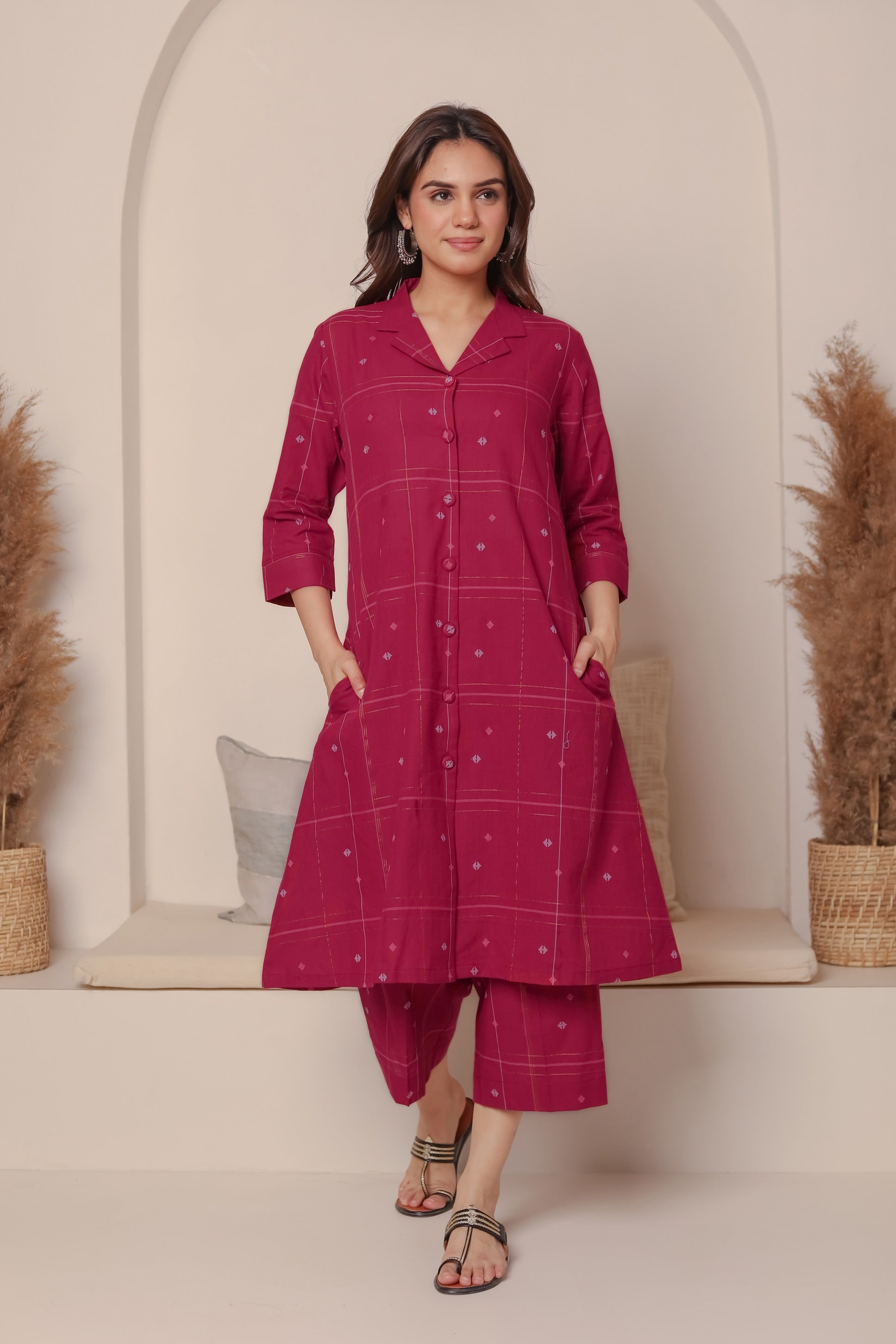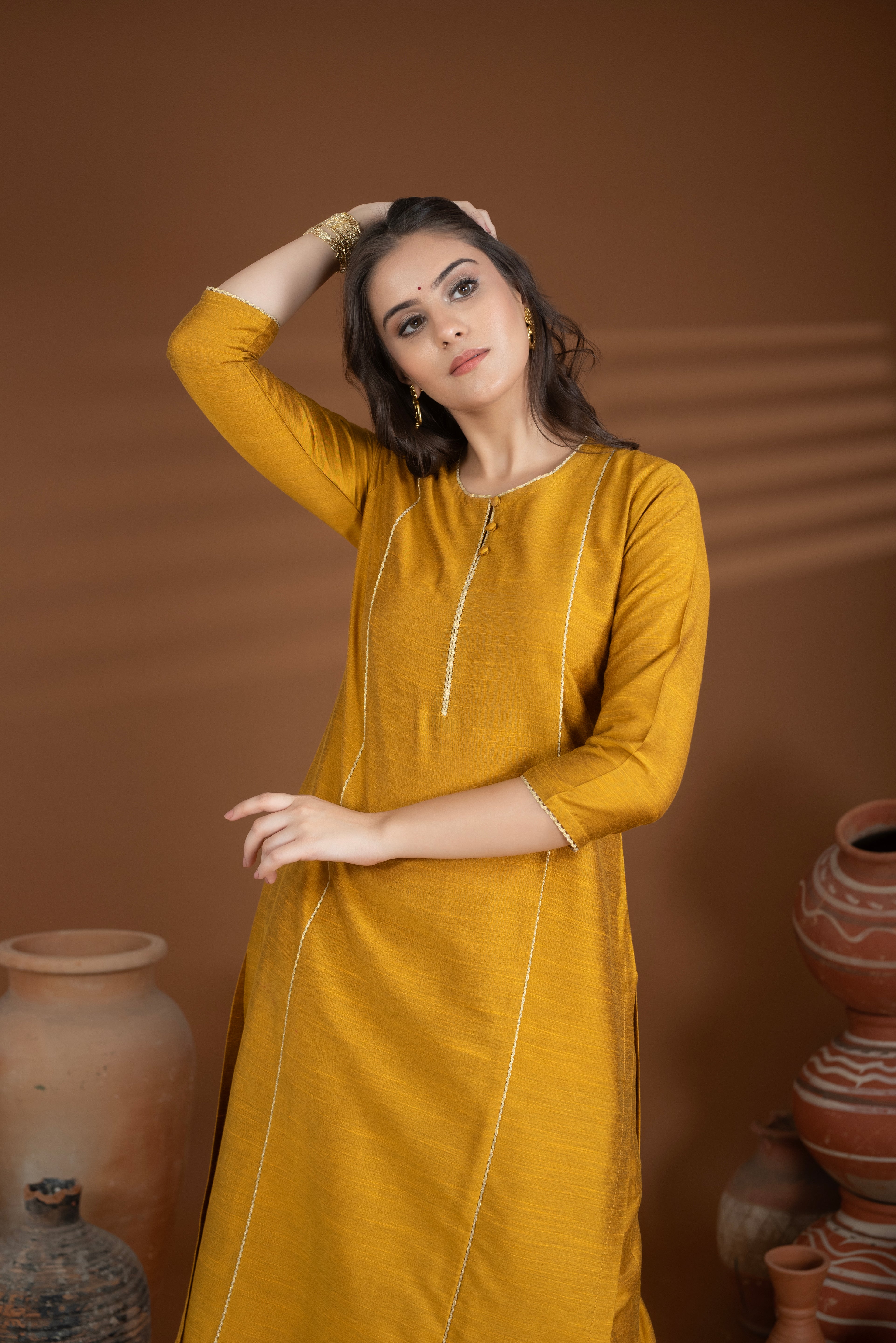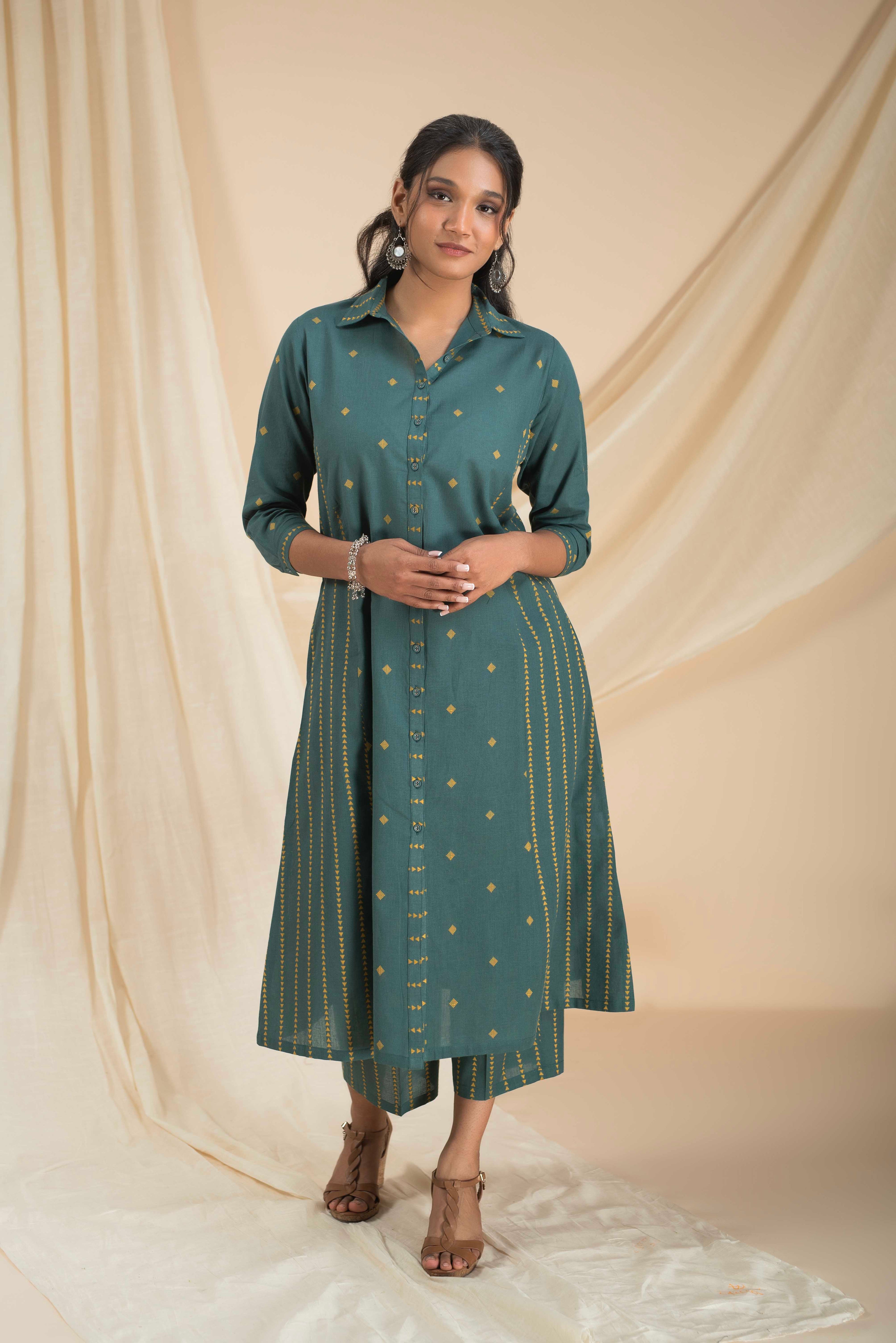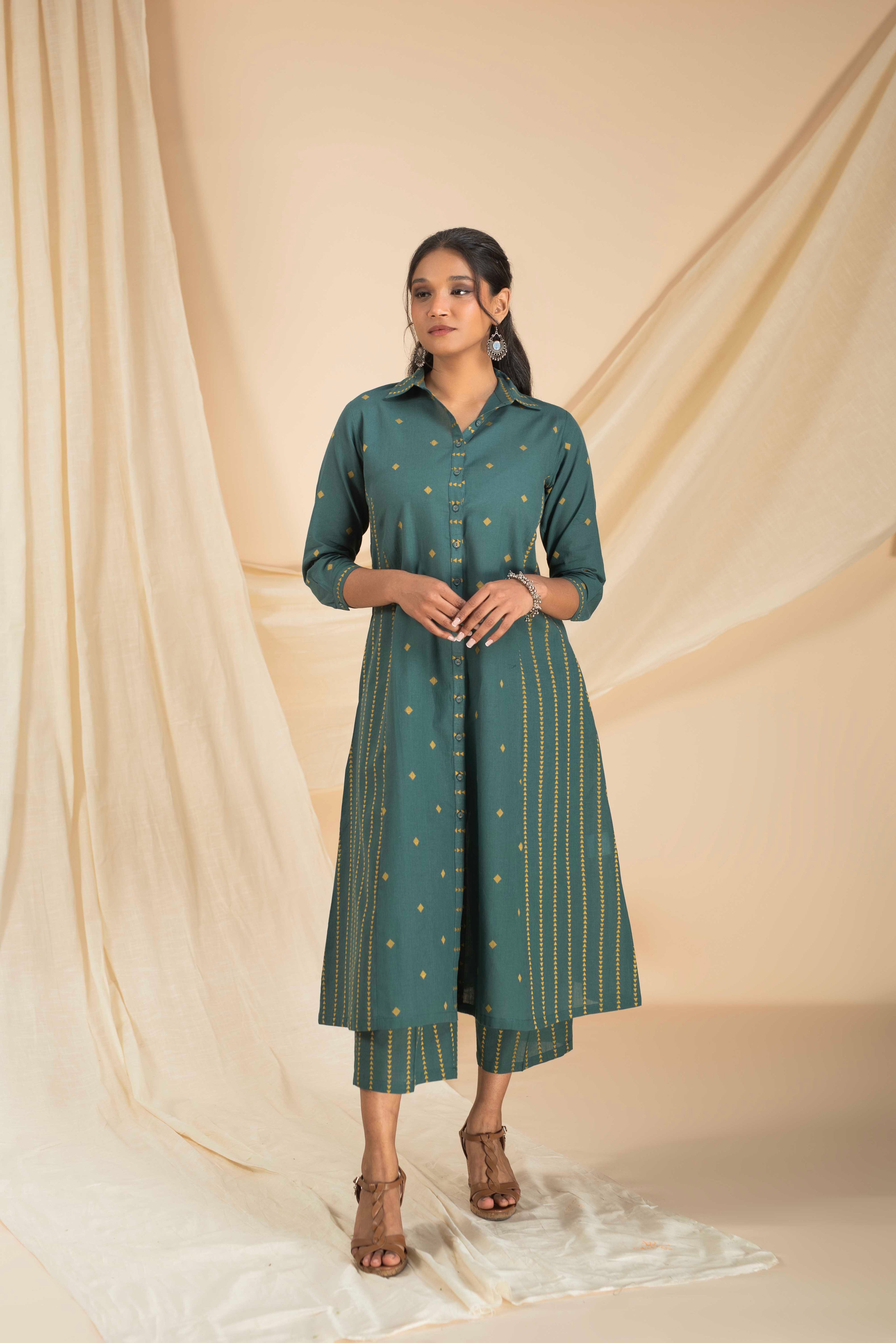 A-Line Kurta Pant Set - Embrace a feminine and flattering silhouette with our A-line kurta pant sets. The A-line cut of the kurta adds a touch of elegance, while the matching pants complete the ensemble for a stylish look.