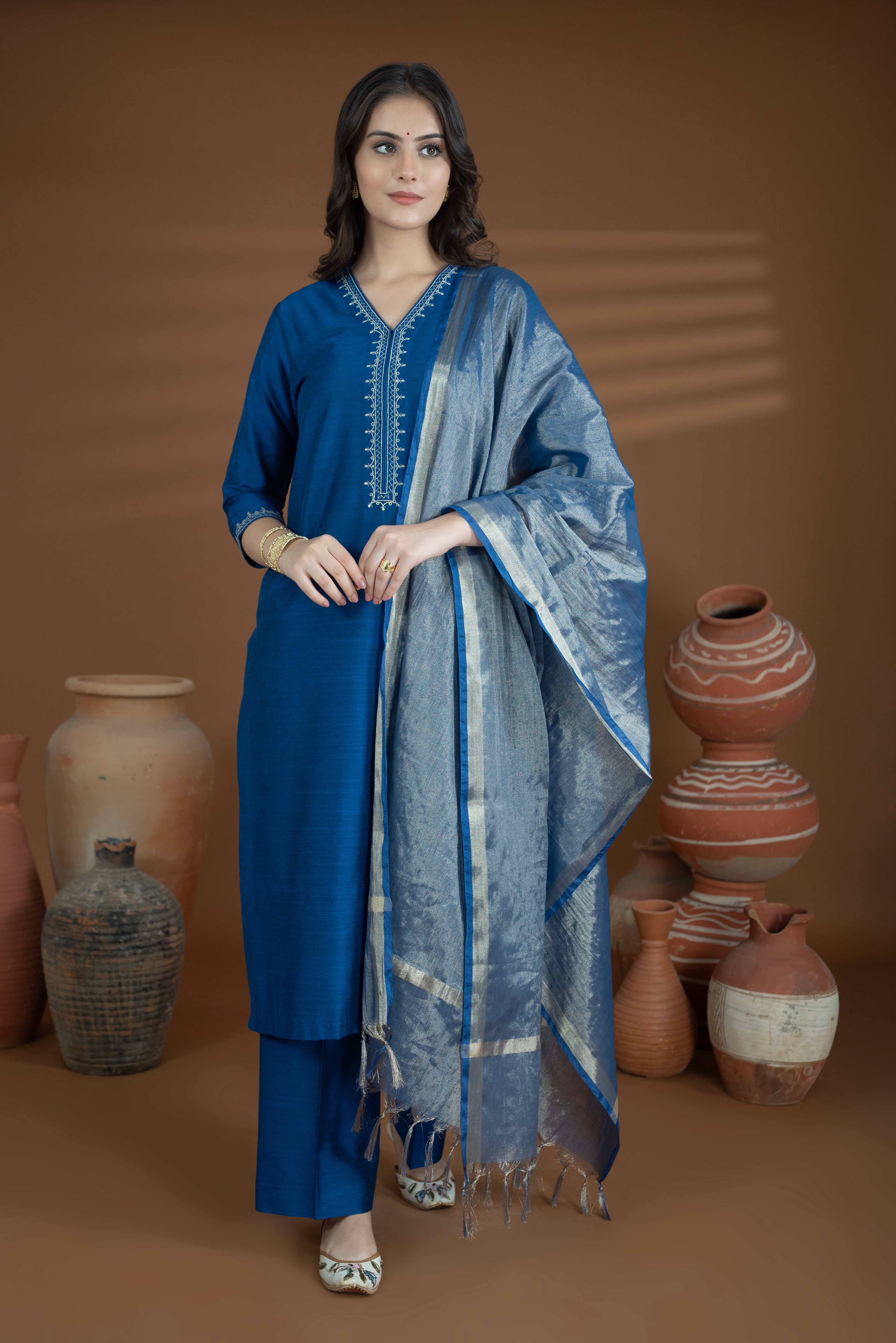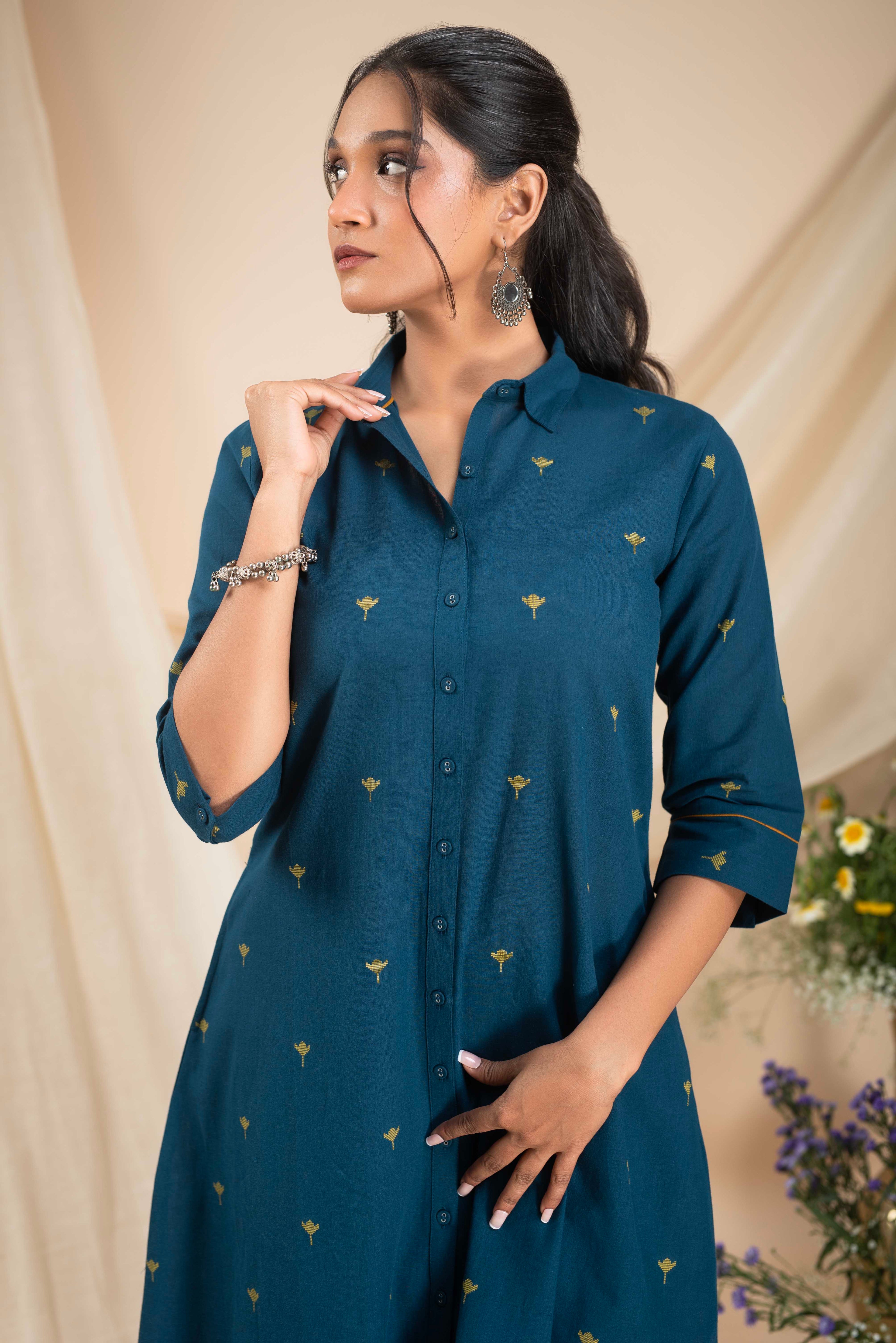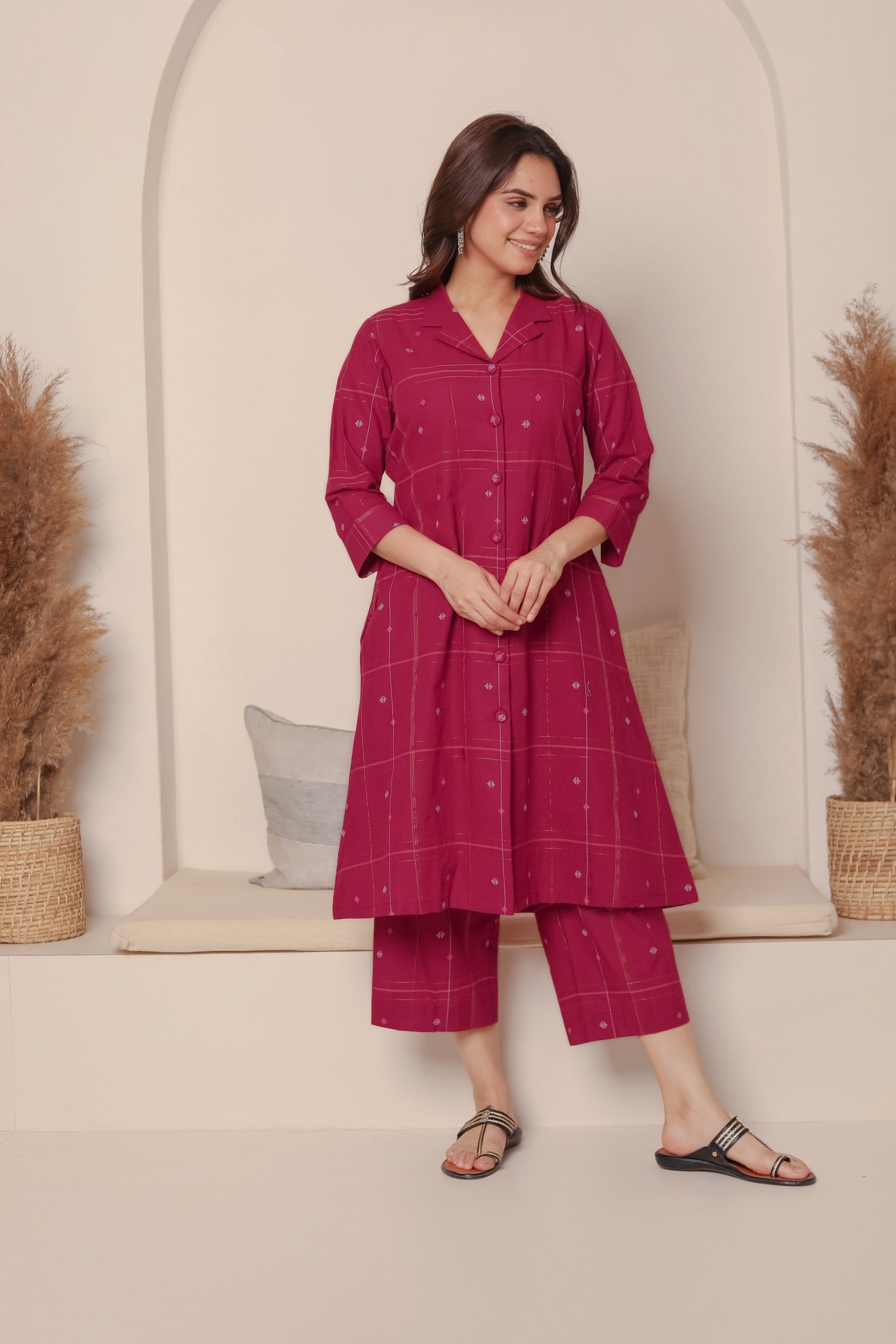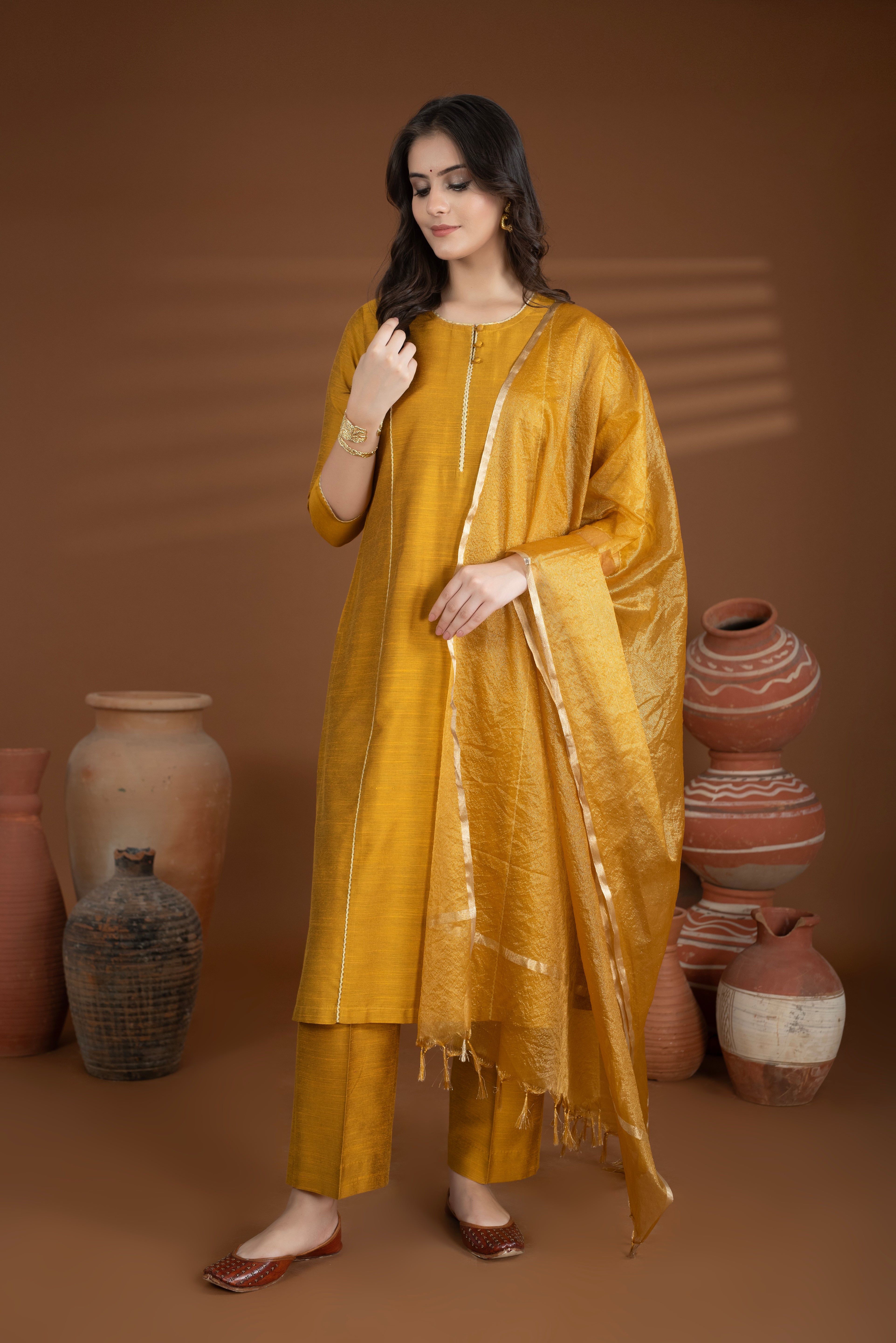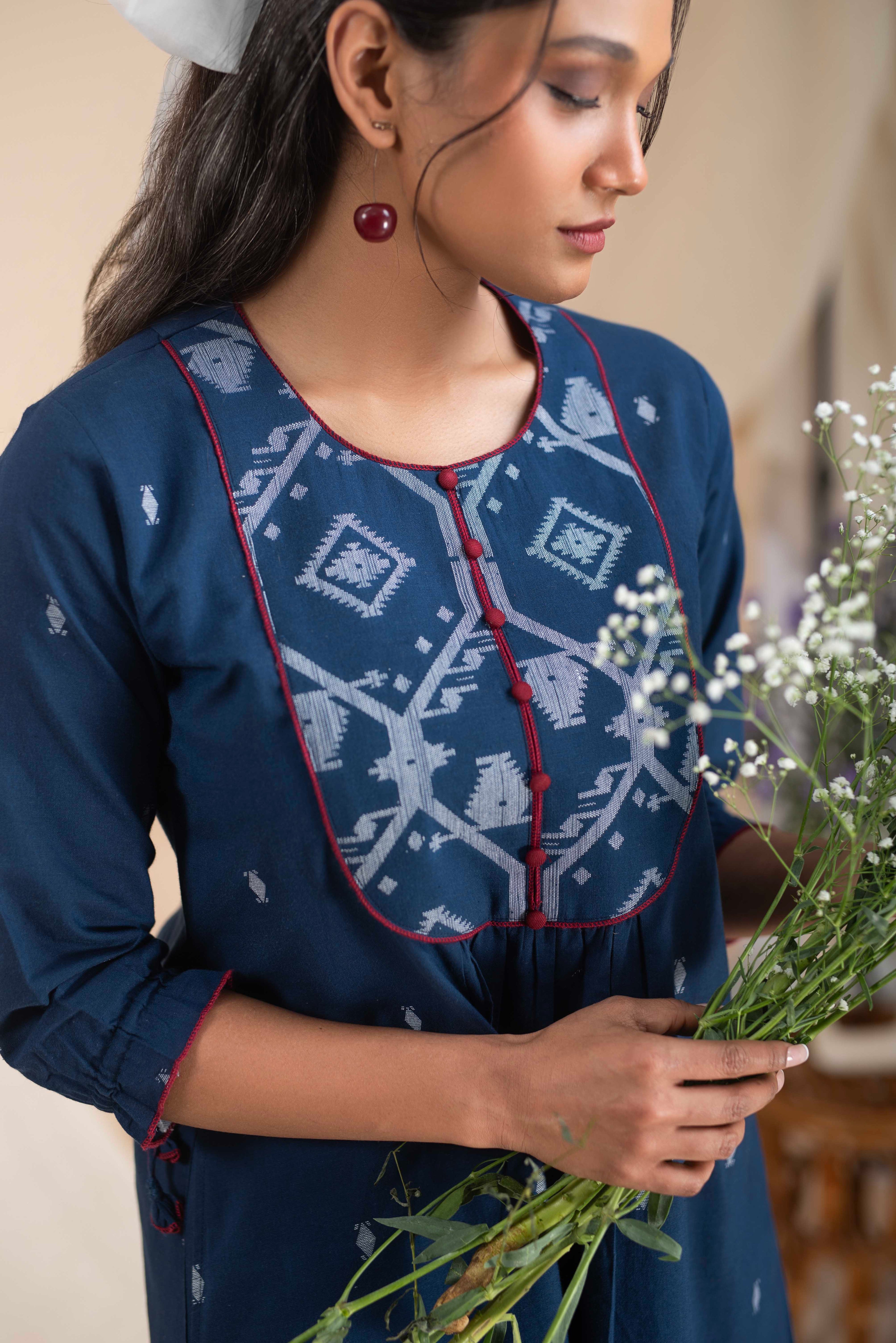 A-Line Kurta Pant Set - Embrace a feminine and flattering silhouette with our A-line kurta pant sets. The A-line cut of the kurta adds a touch of elegance, while the matching pants complete the ensemble for a stylish look.