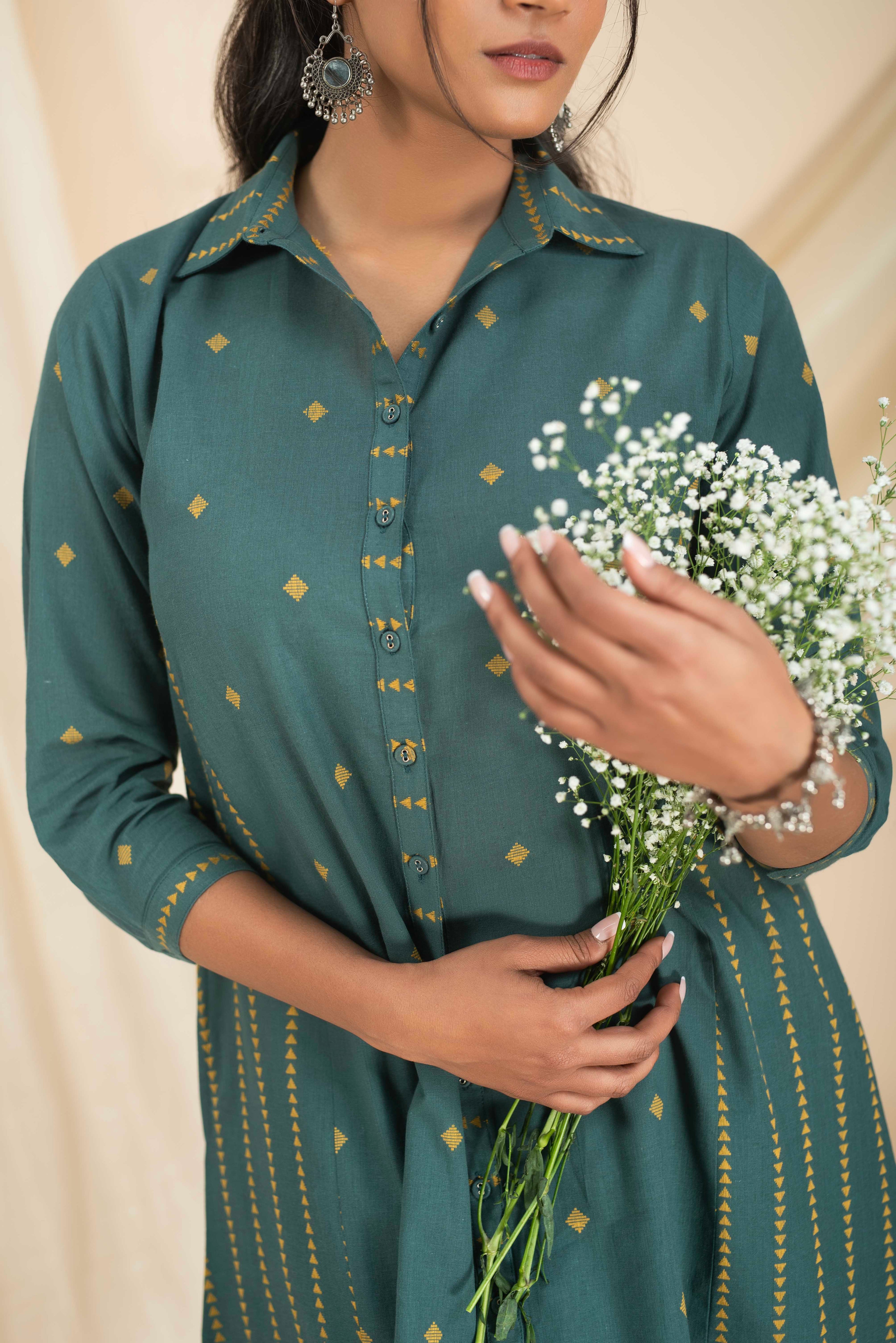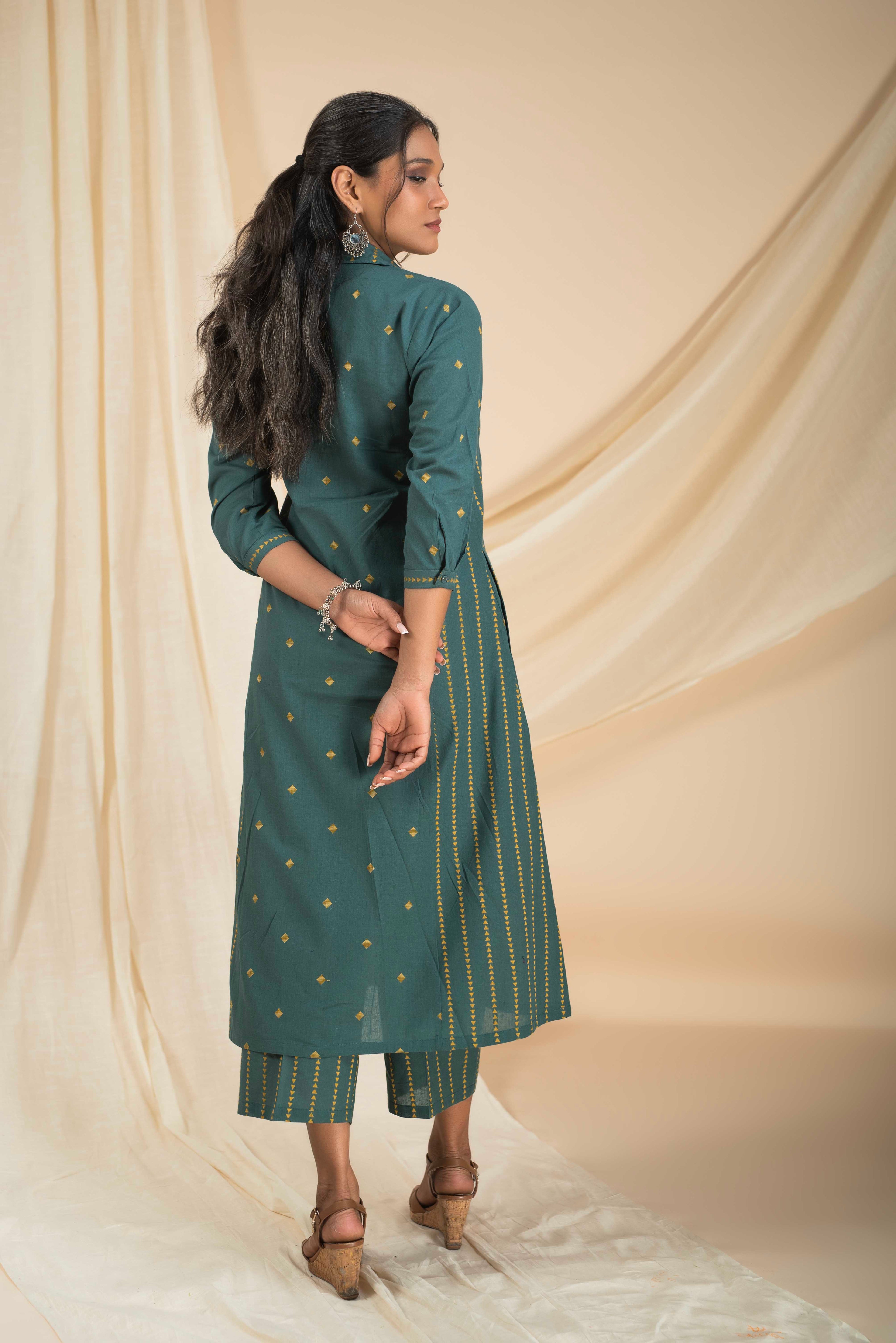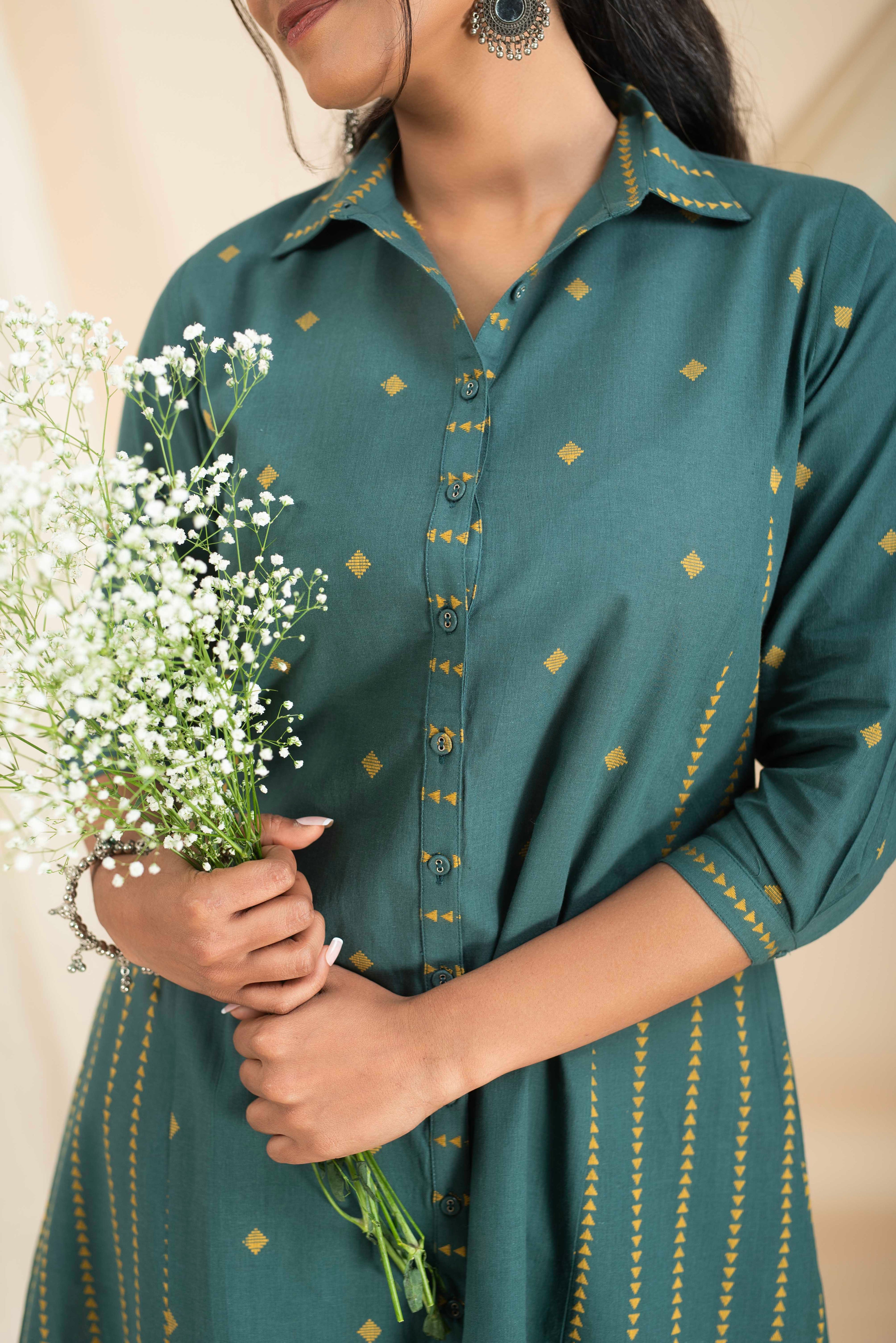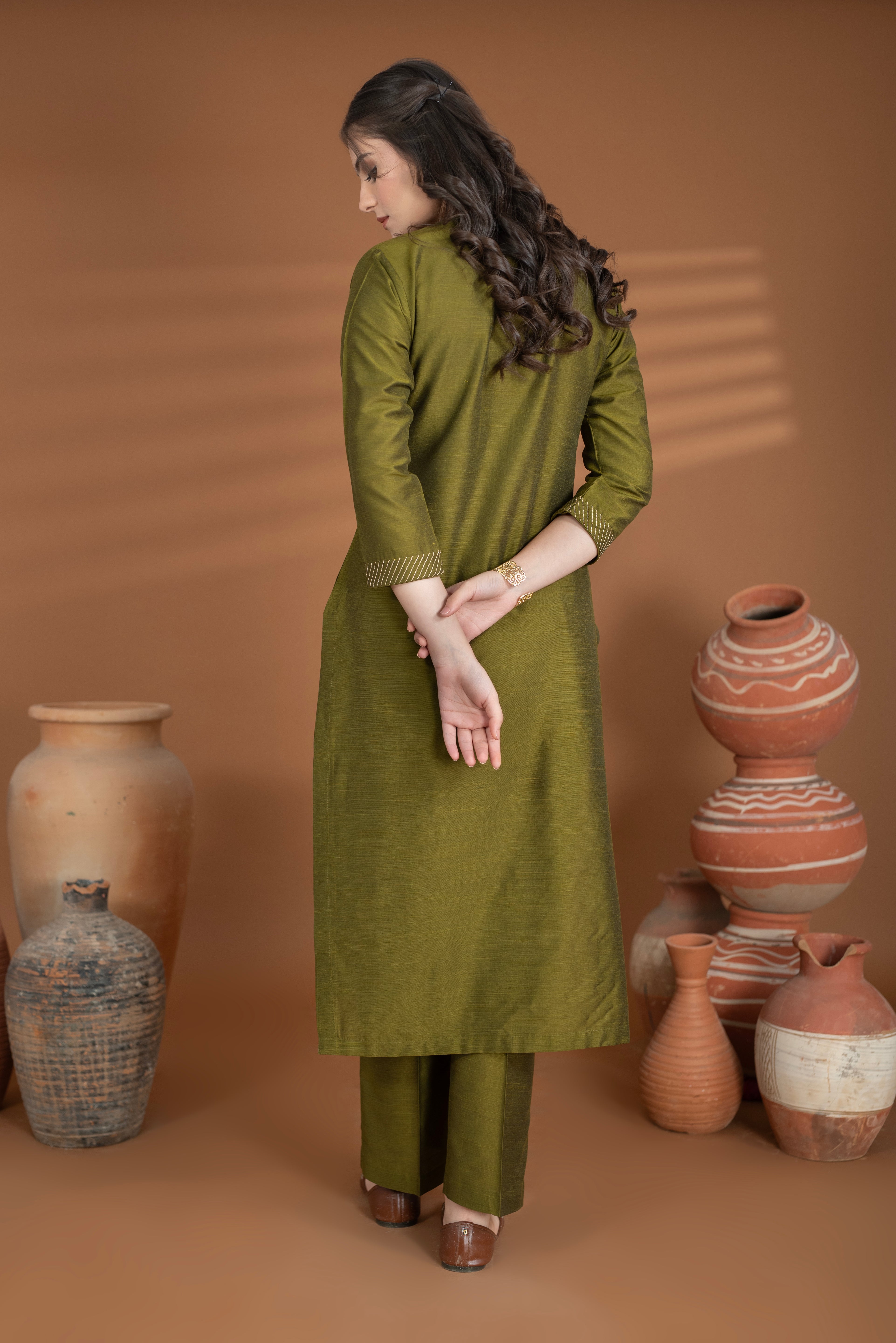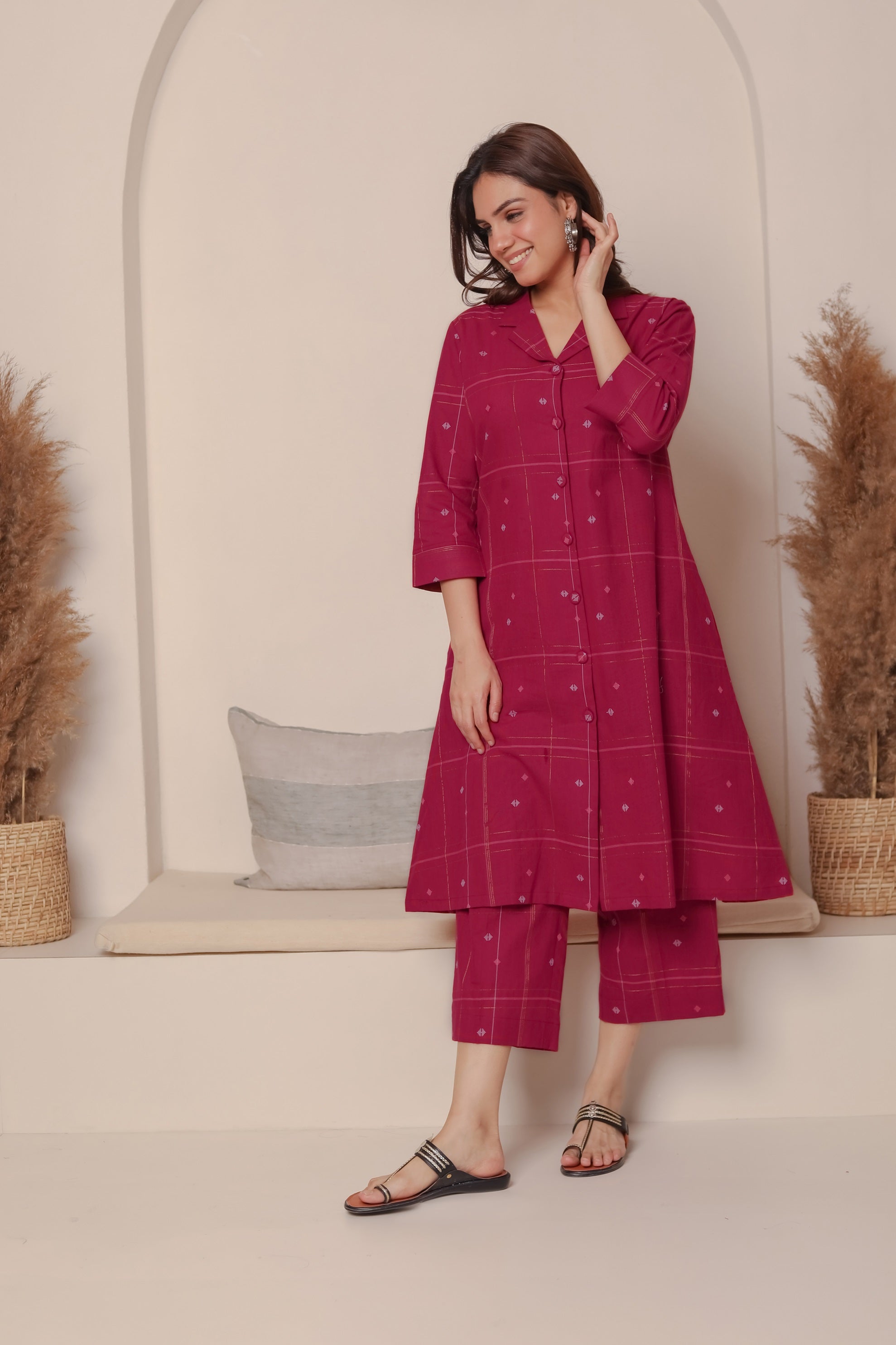 A-Line Kurta Pant Set - Embrace a feminine and flattering silhouette with our A-line kurta pant sets. The A-line cut of the kurta adds a touch of elegance, while the matching pants complete the ensemble for a stylish look.