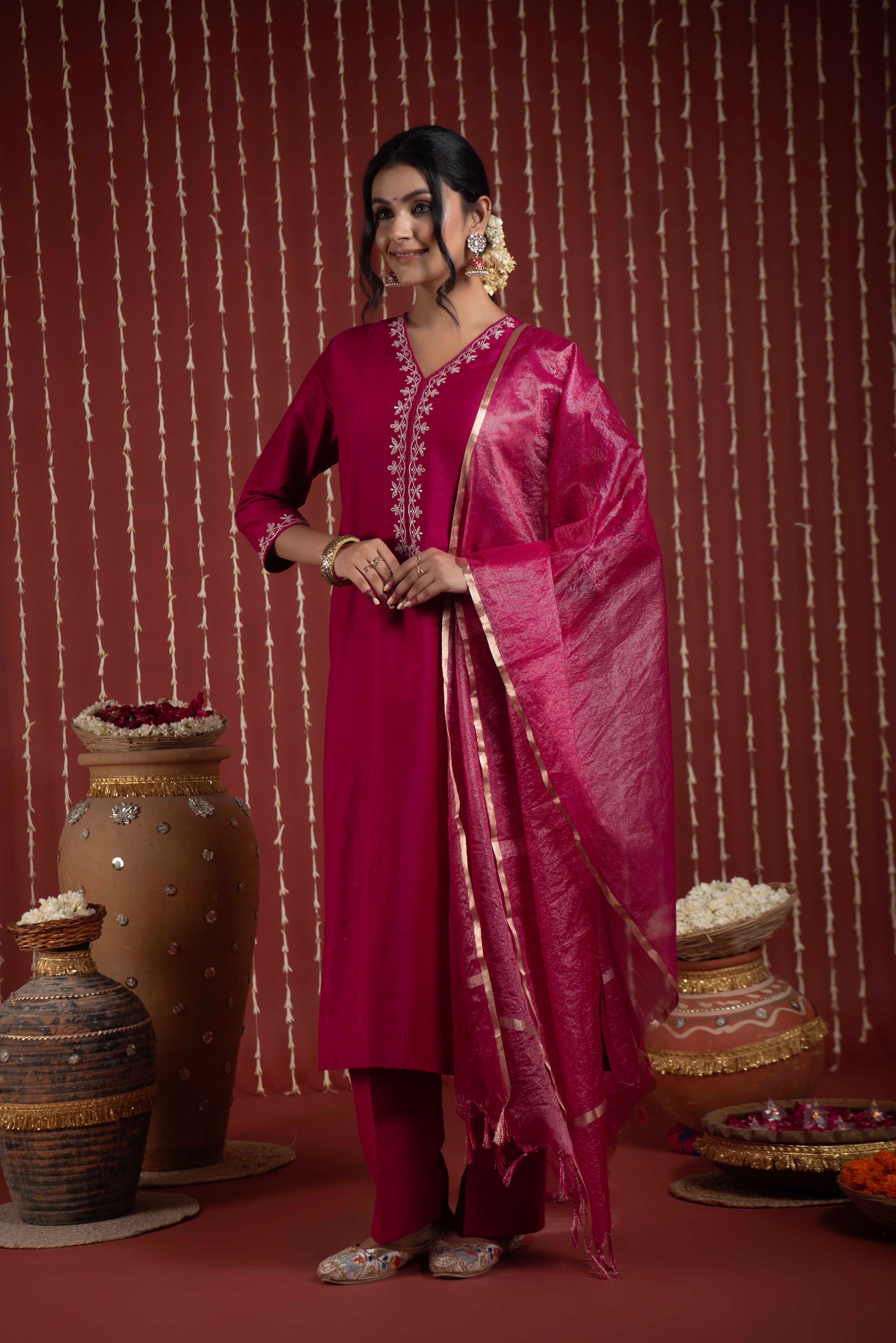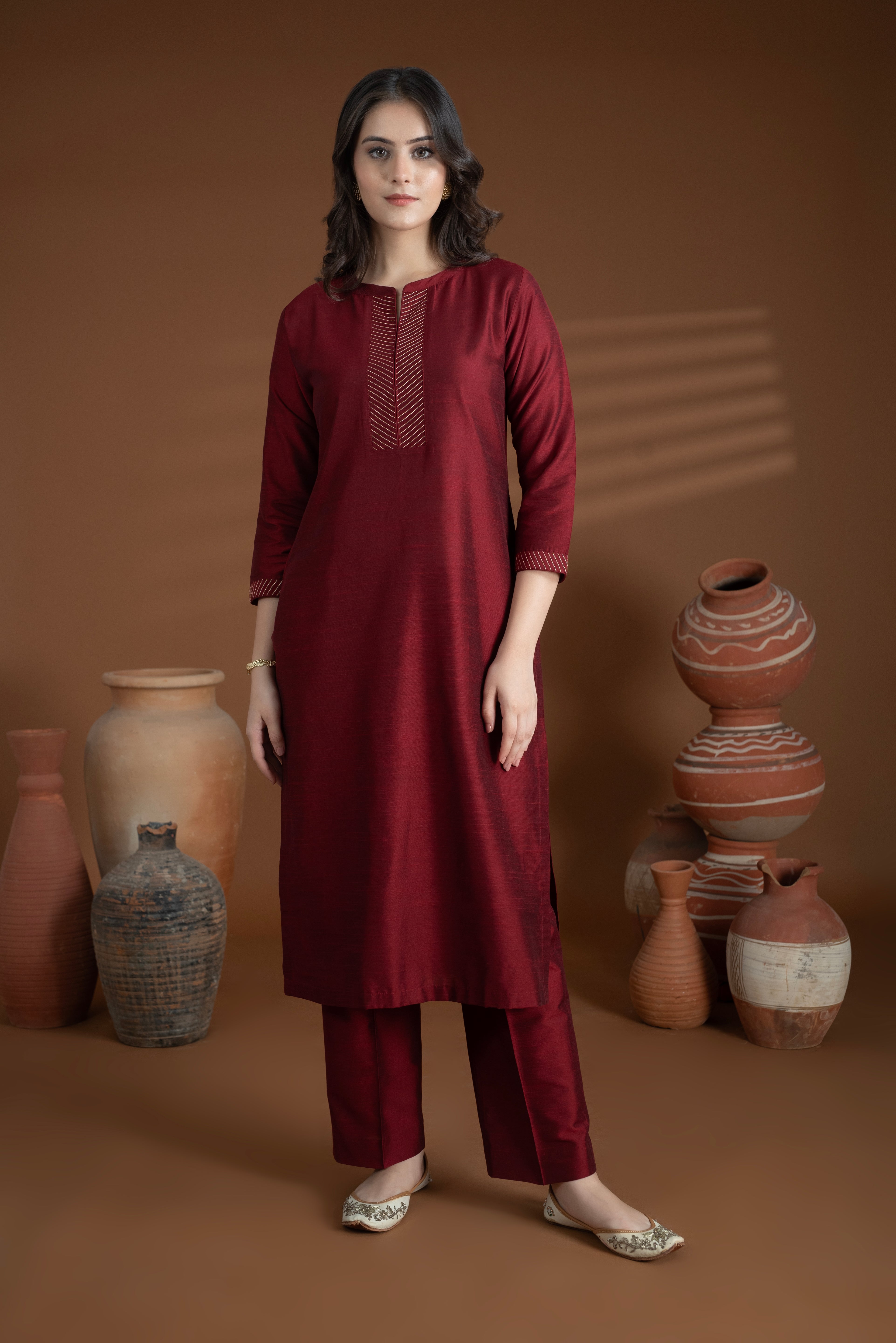 Straight Kurta Pant Set - Achieve a sleek and sophisticated look with our straight kurta pant sets. These ensembles feature a straight-cut kurta paired with matching pants, perfect for both casual and special occasions.