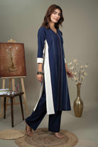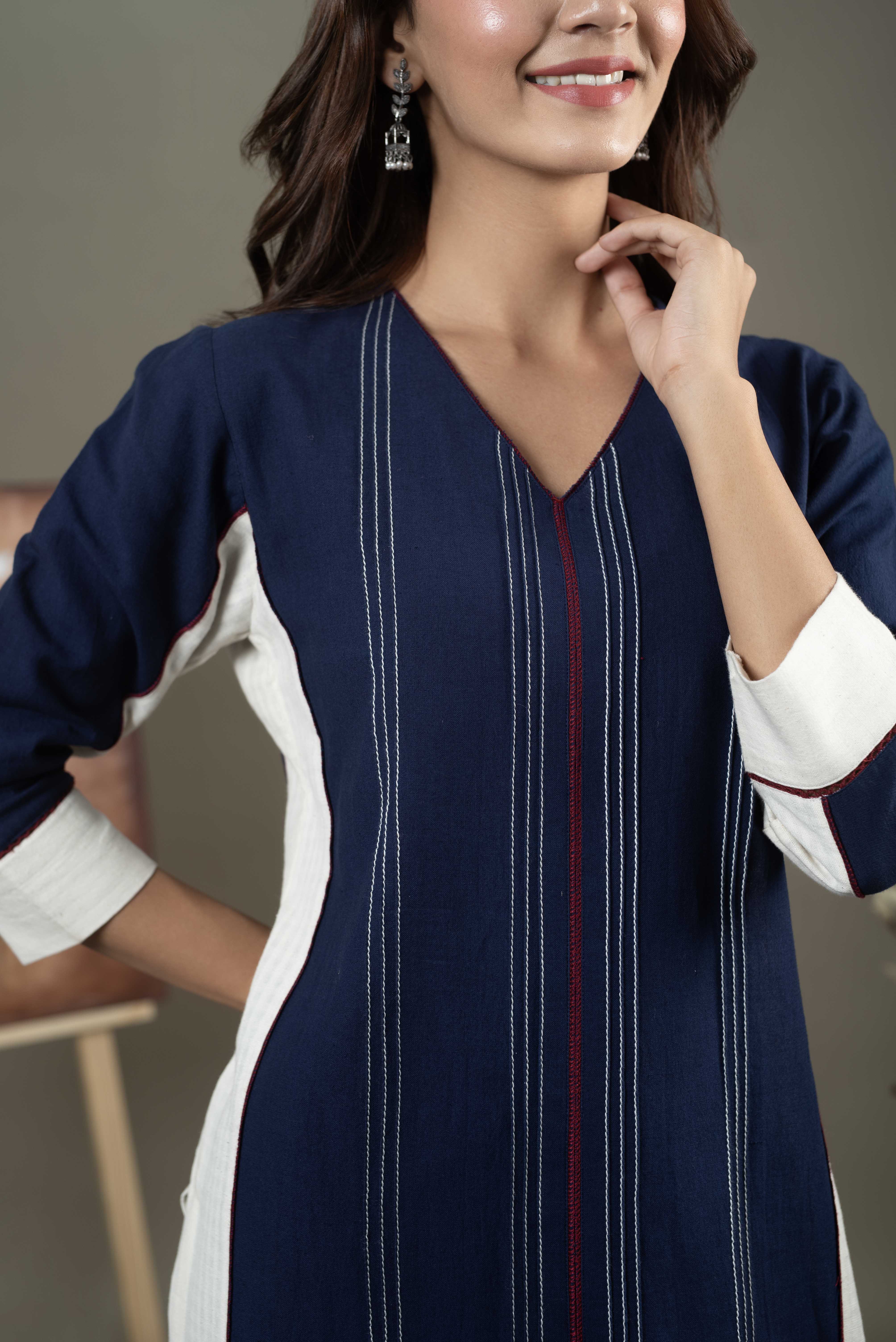 - Made from breathable pure handloom cotton, this thoughtfully designed set features a clean V-neckline and a straight silhouette for a comfortable yet polished look.