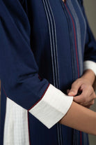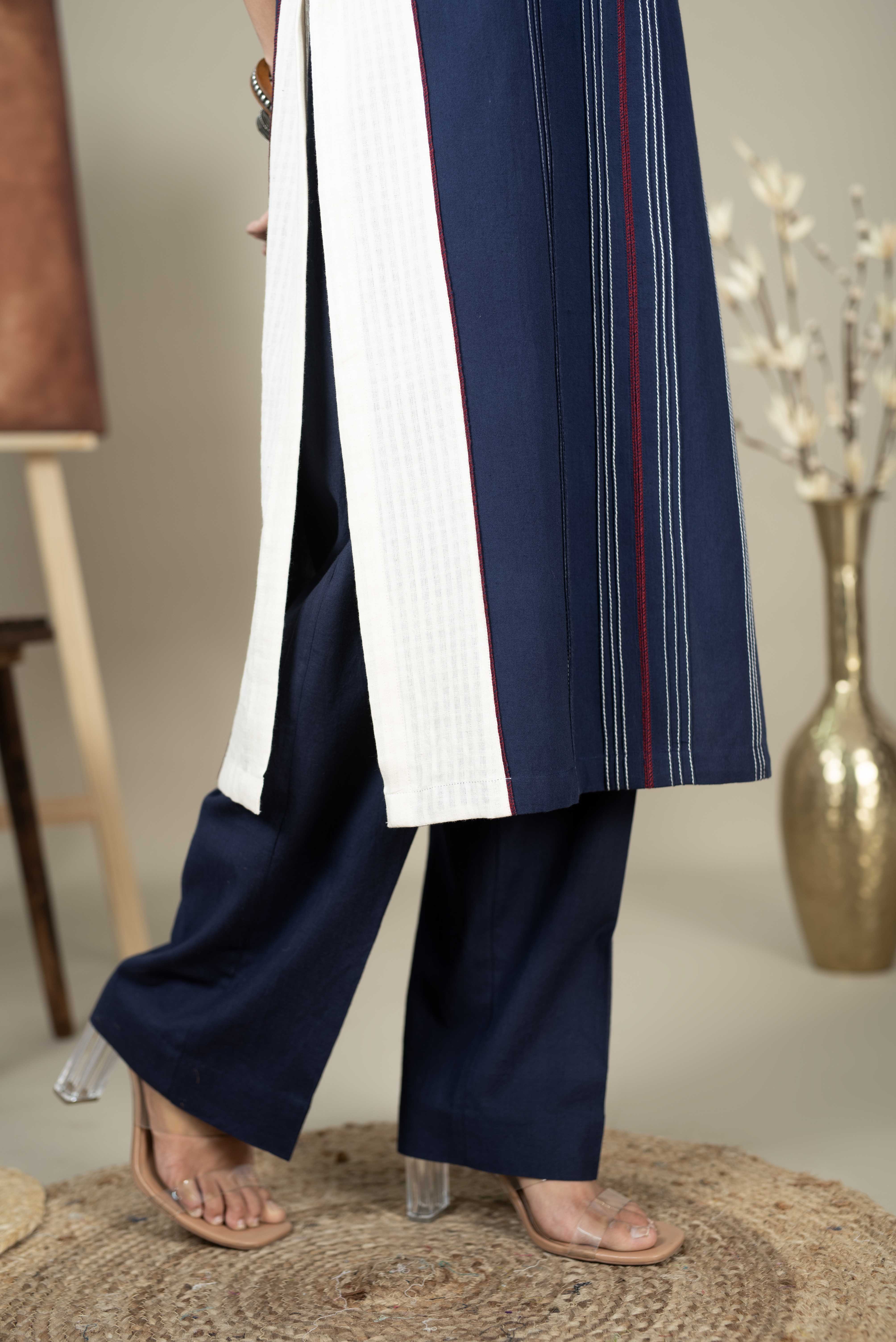 Blue with White Pure Handloom Cotton Straight Kurta Set with Pants – Regular Fit