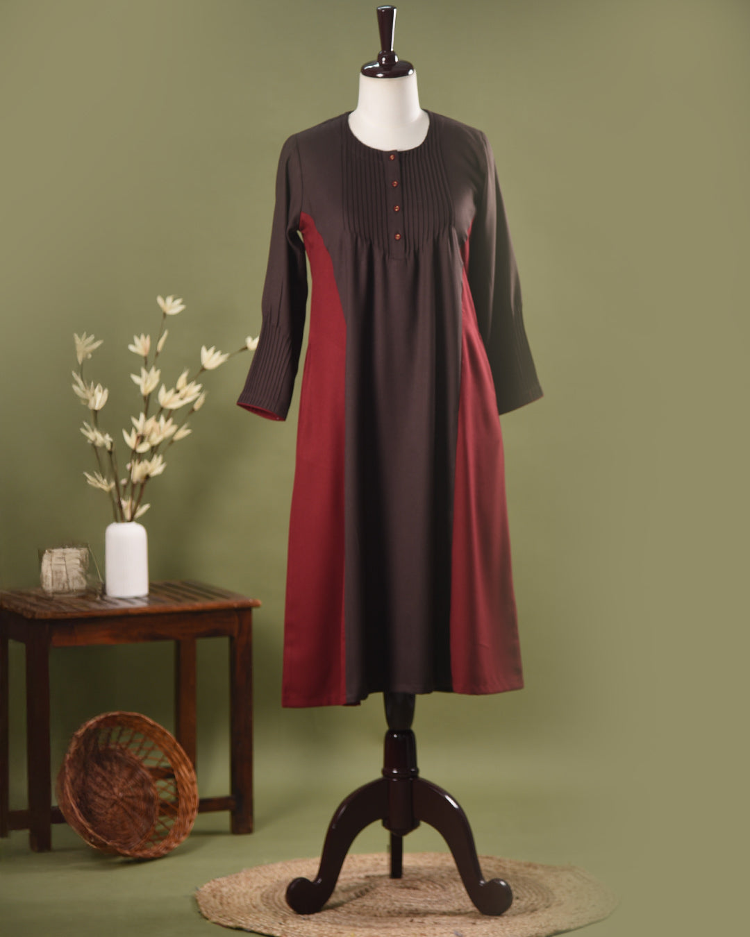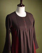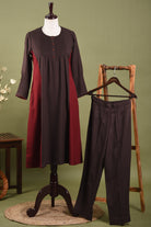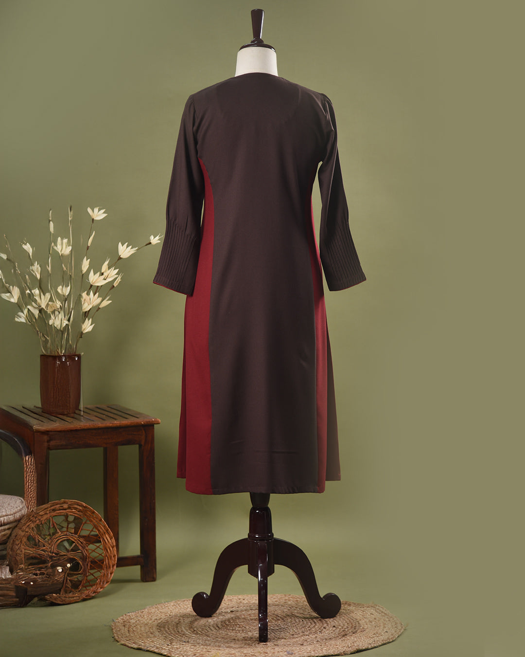 Discover the perfect combination of luxury and functionality with our Brown With Maroon Winter Wear Wool Spun Blend A - Line Ready To Wear Kurta With Pant.