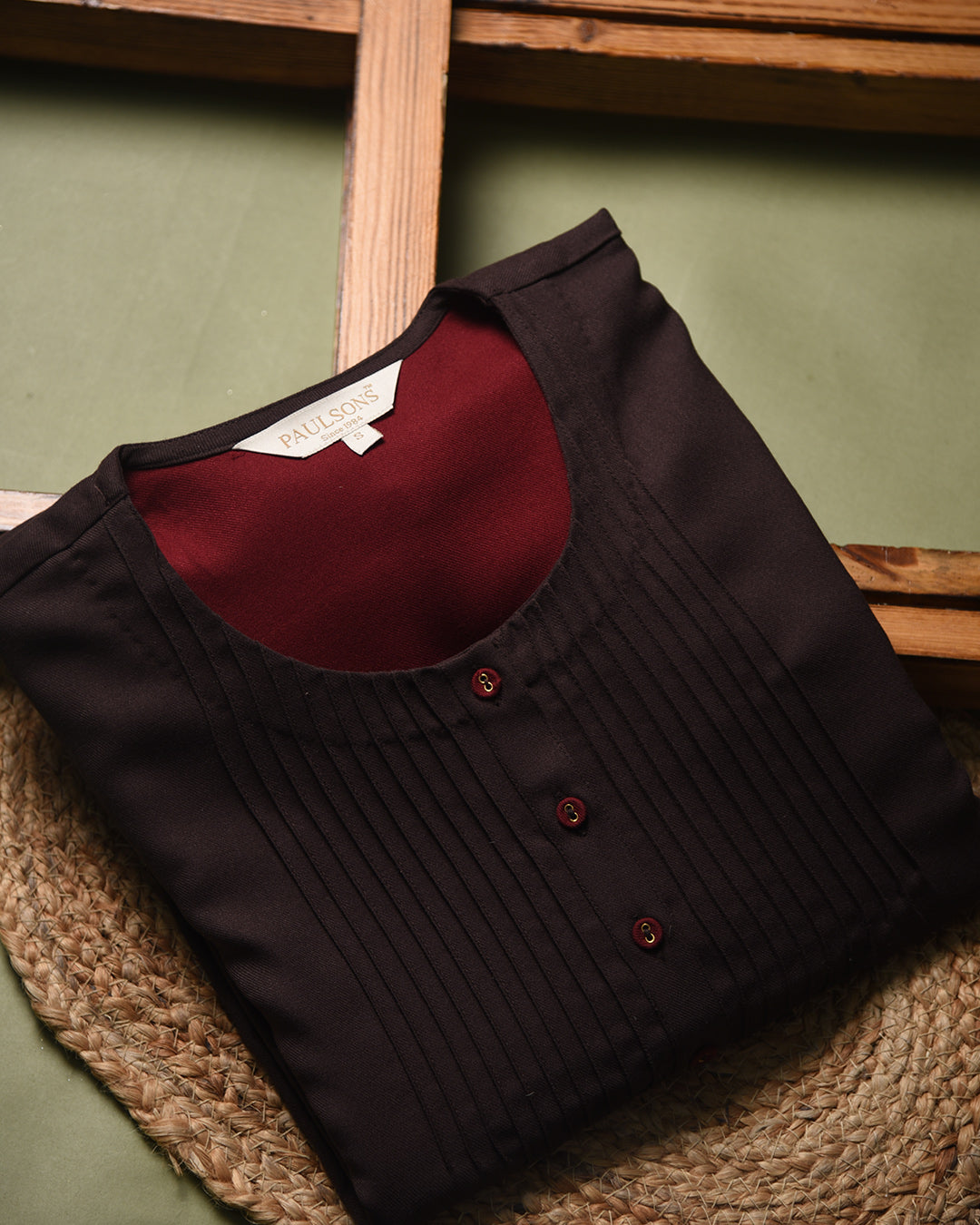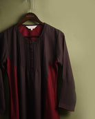 Featuring a round neck, elegant pintuck embroidery on neck and sleeves, maroon side panels ,it's perfect for transitioning from office to dinner.