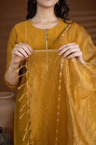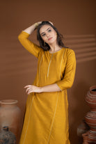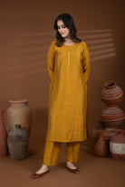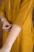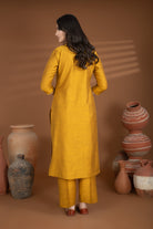 Mustard Cotton Silk Lace Work Kurta Set – Regular Fit