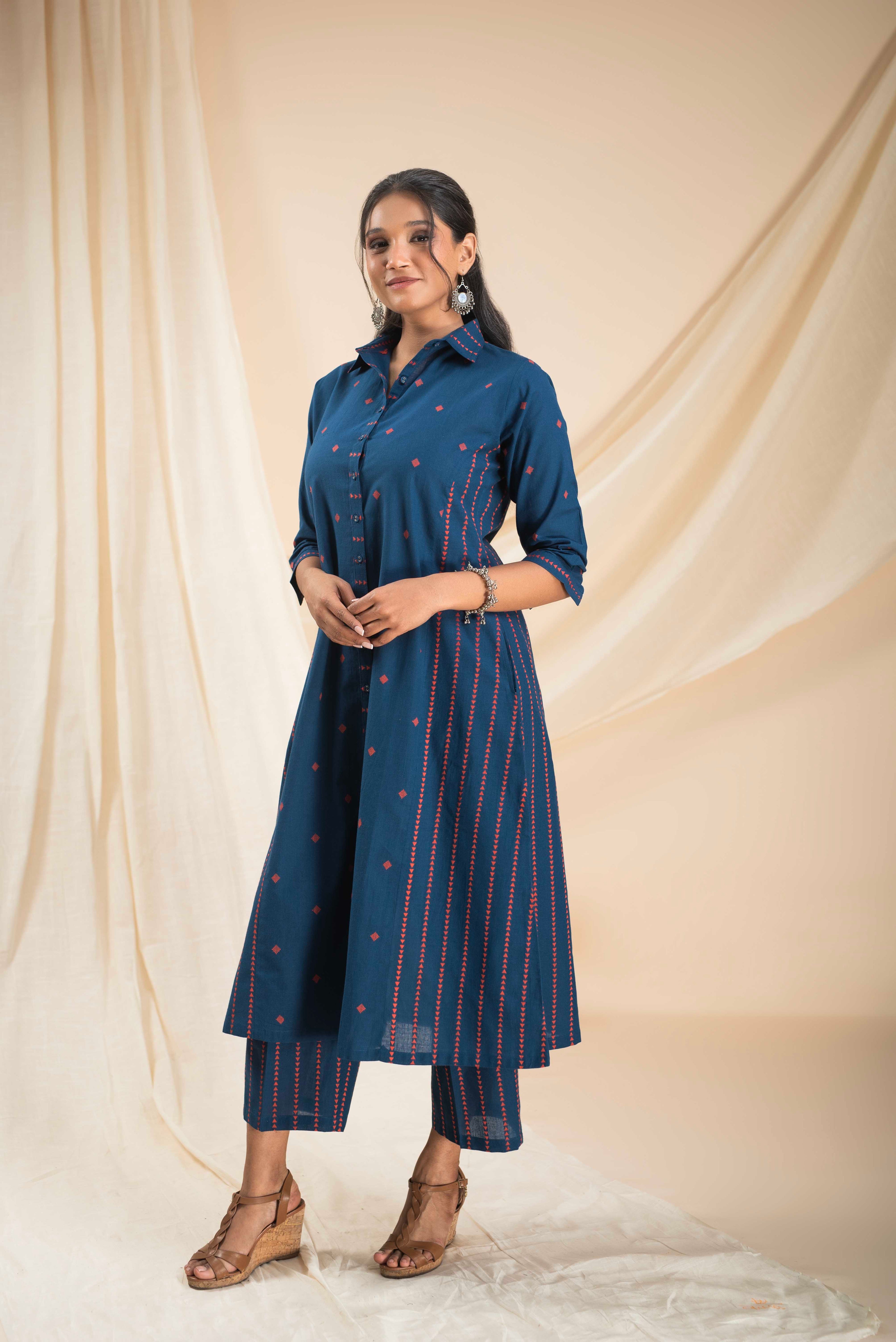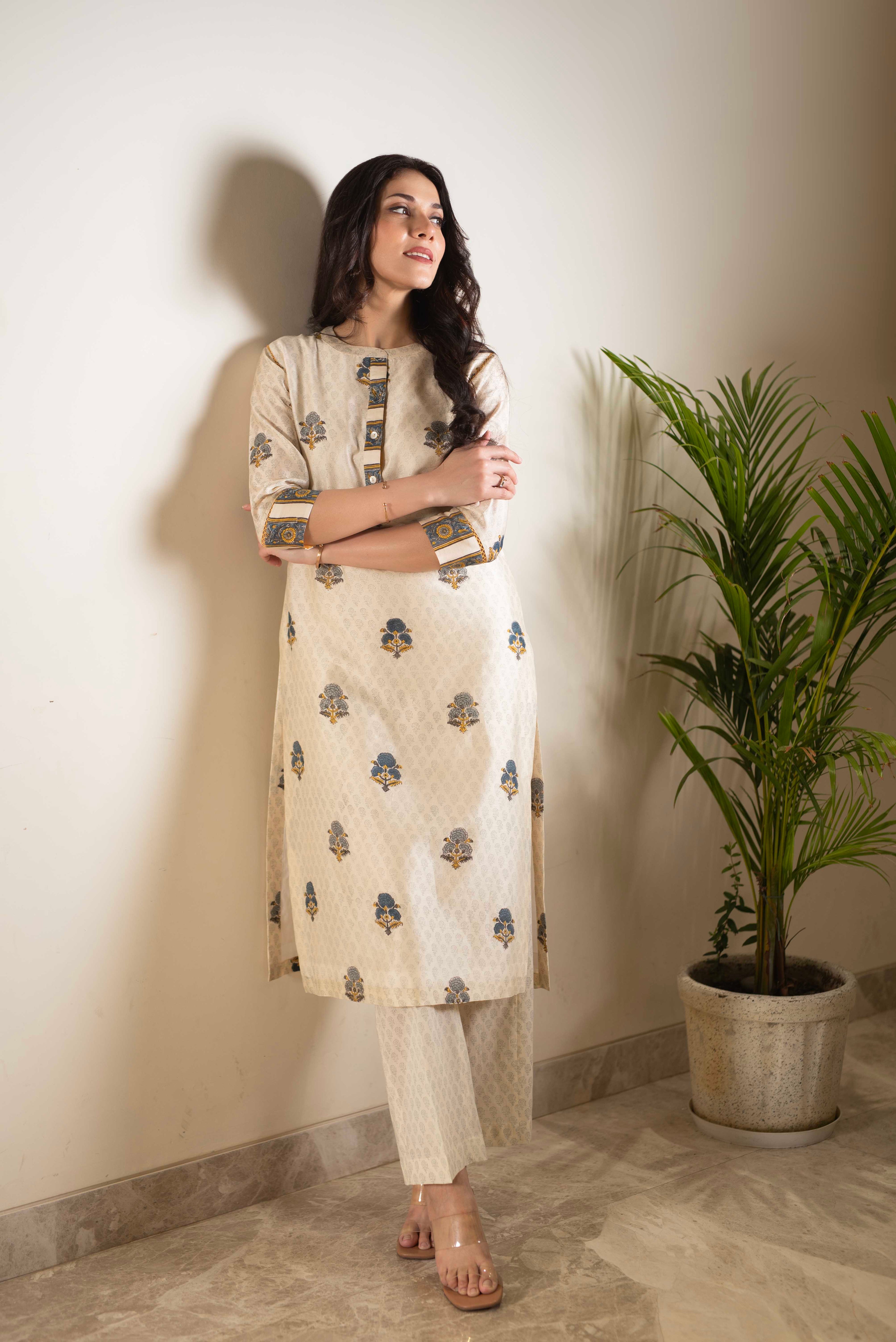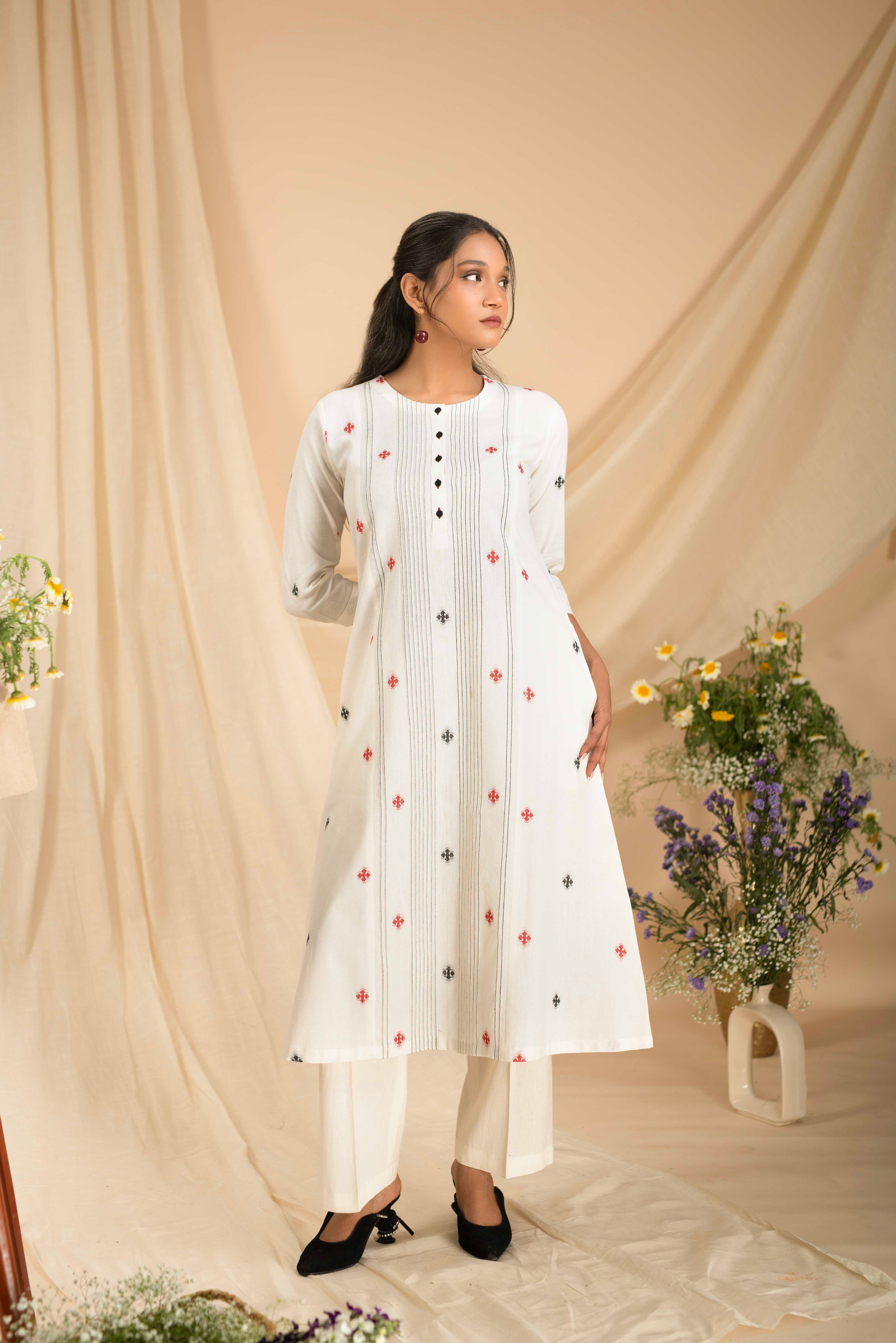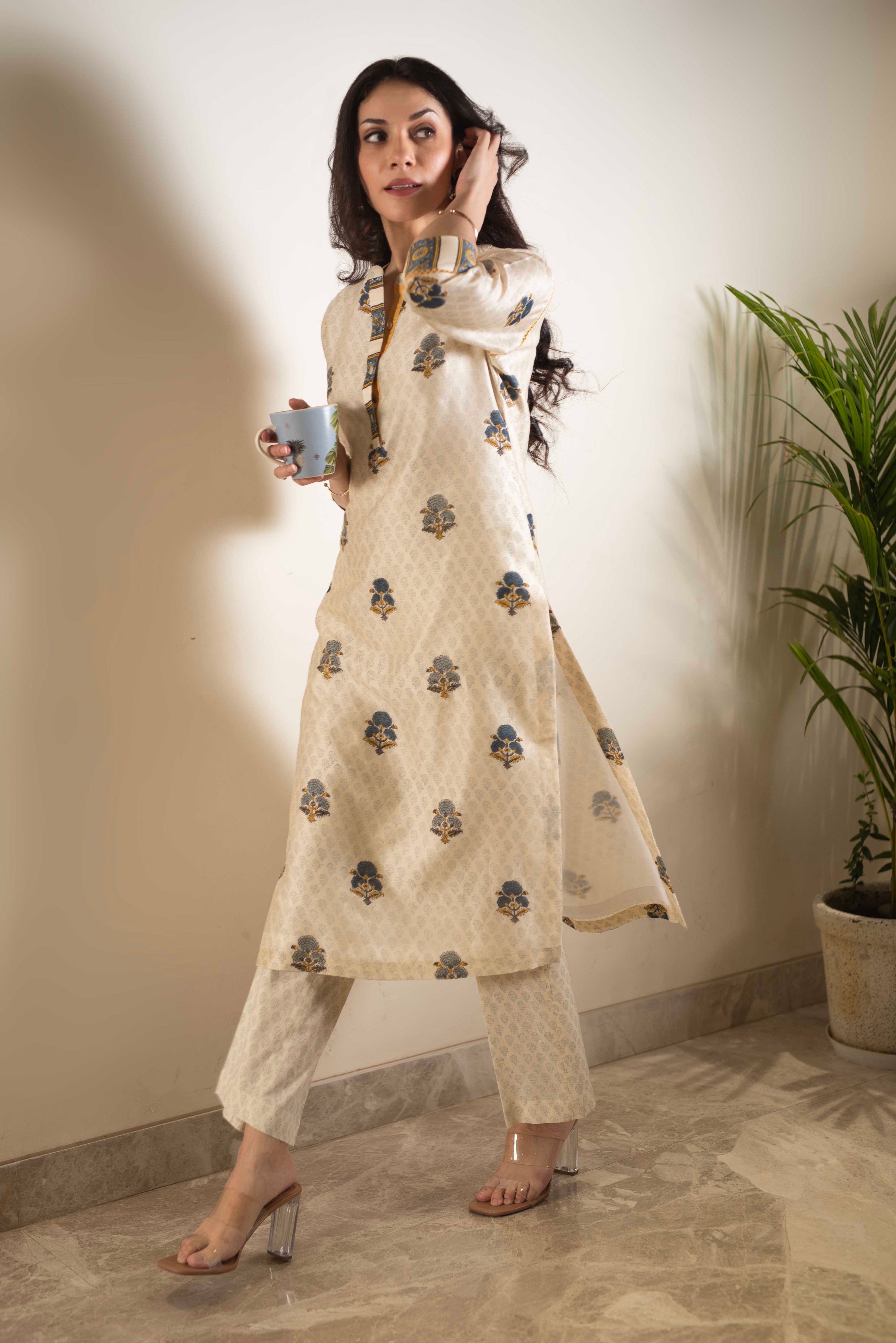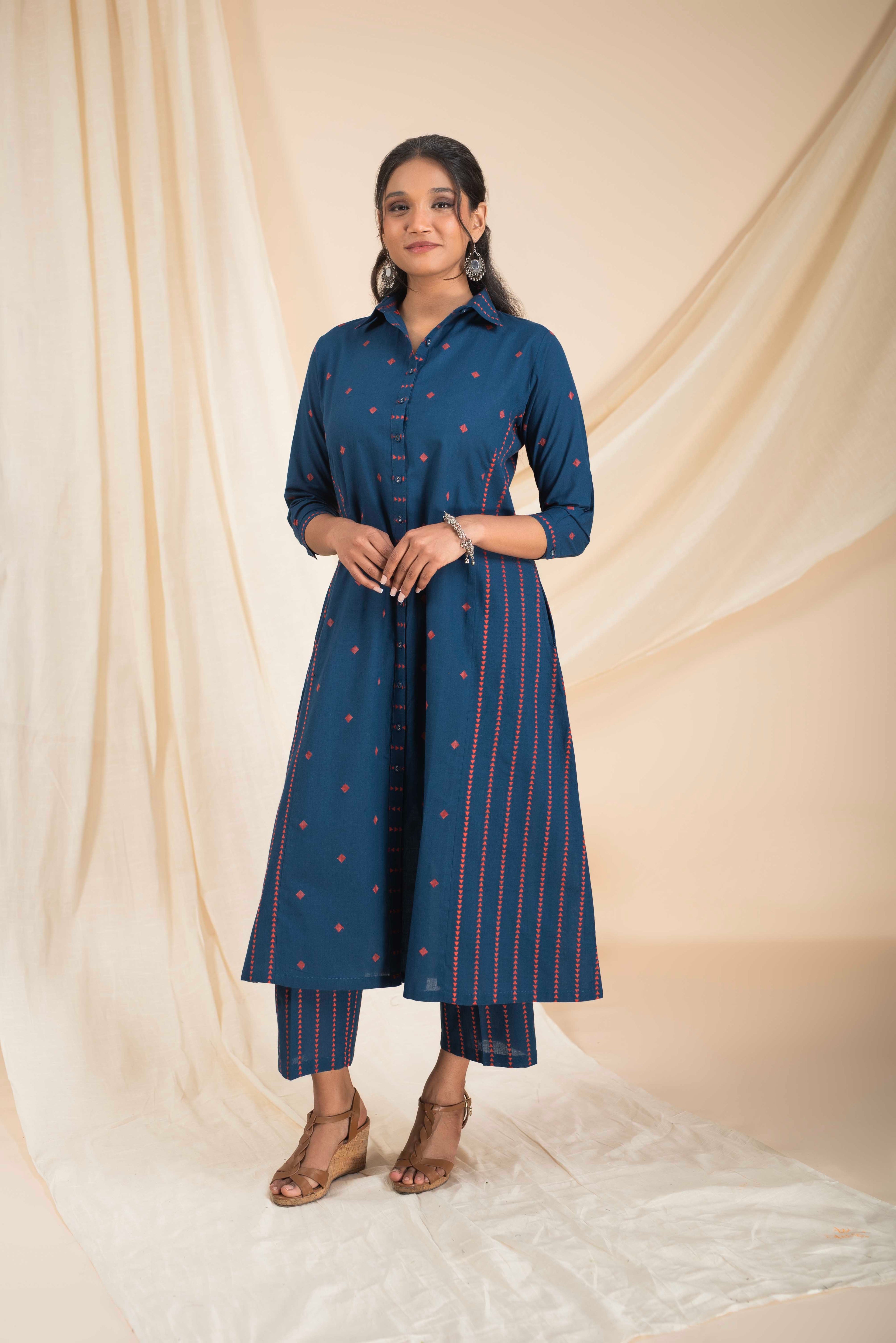 A-Line Kurta Pant Set - Embrace a feminine and flattering silhouette with our A-line kurta pant sets. The A-line cut of the kurta adds a touch of elegance, while the matching pants complete the ensemble for a stylish look.