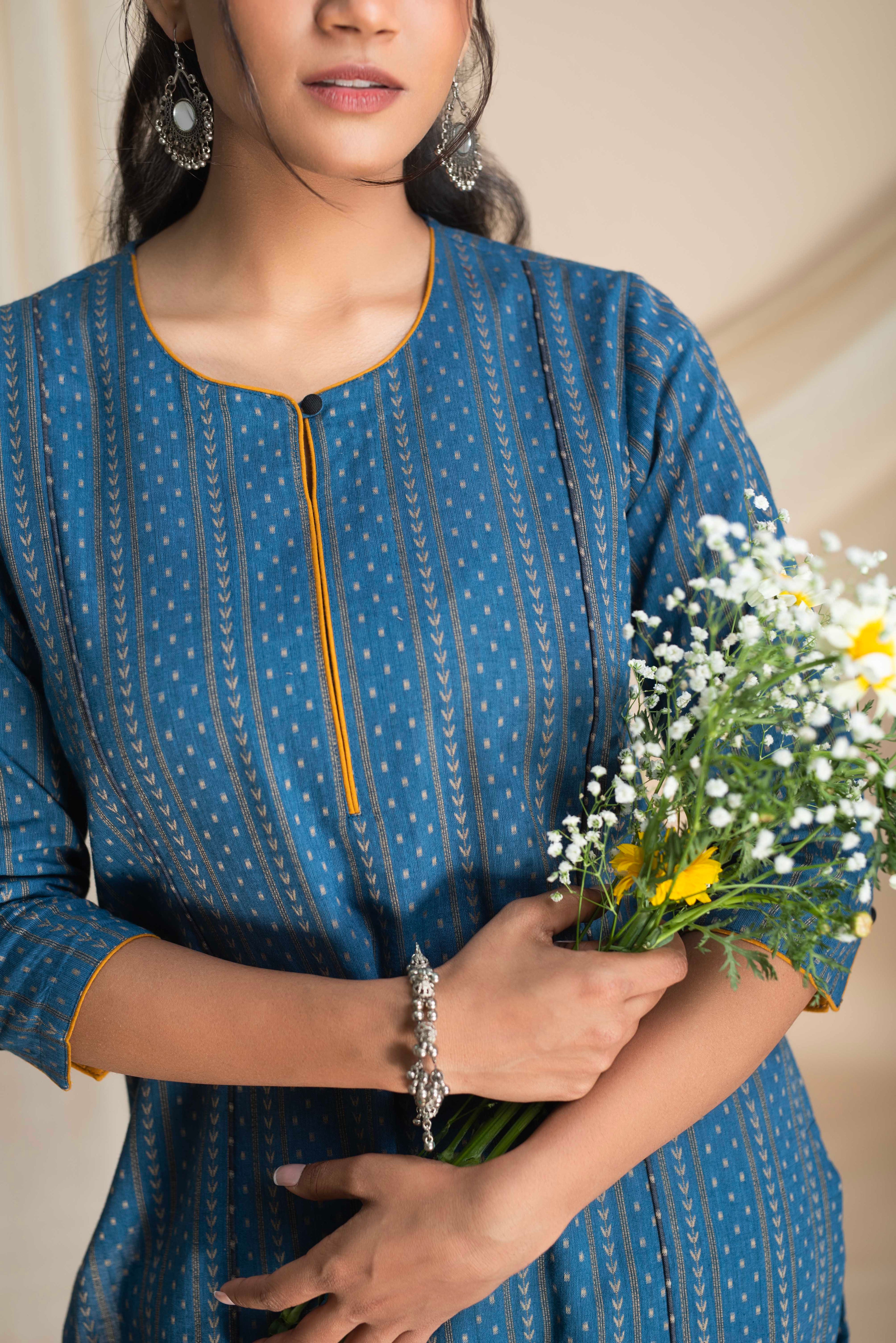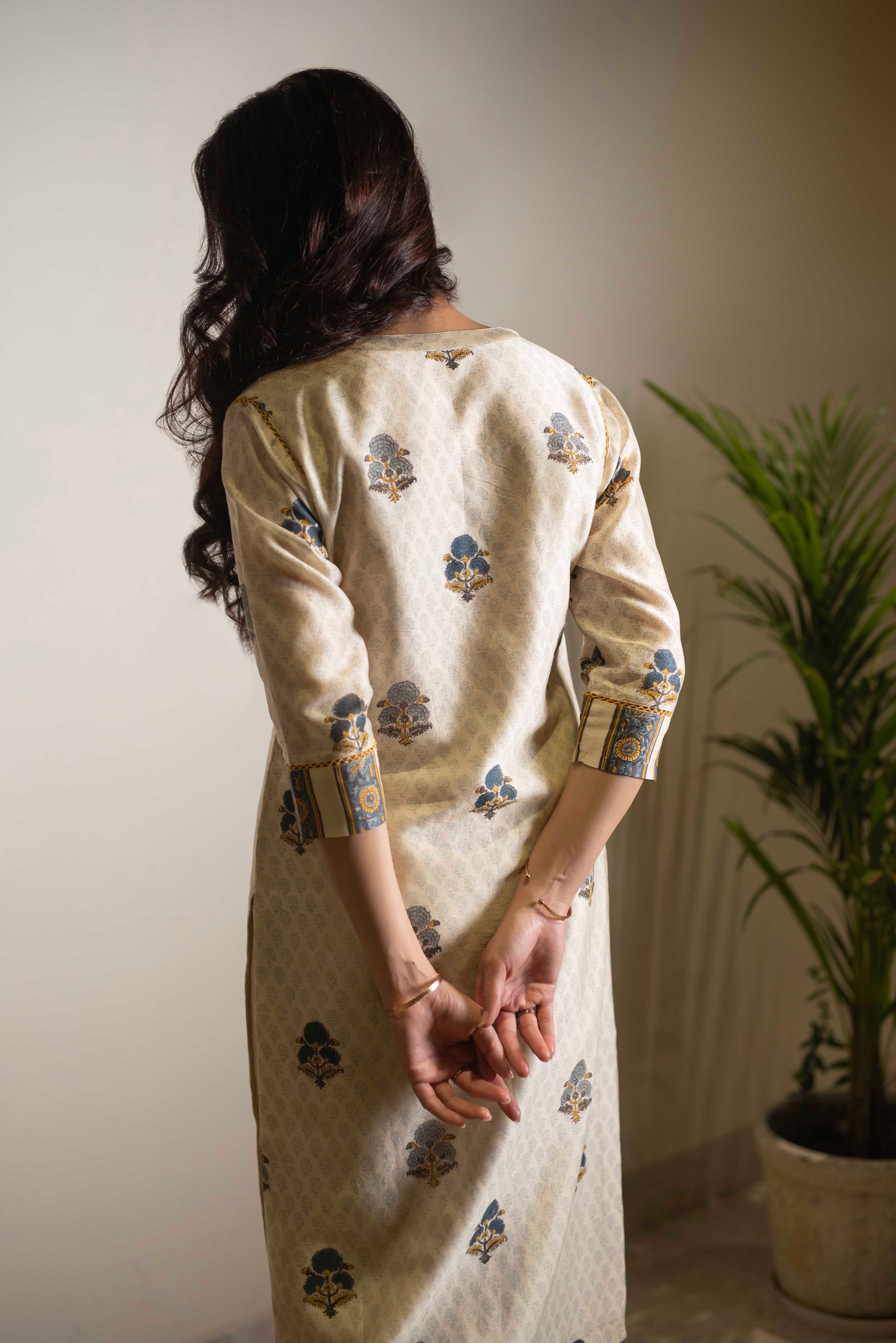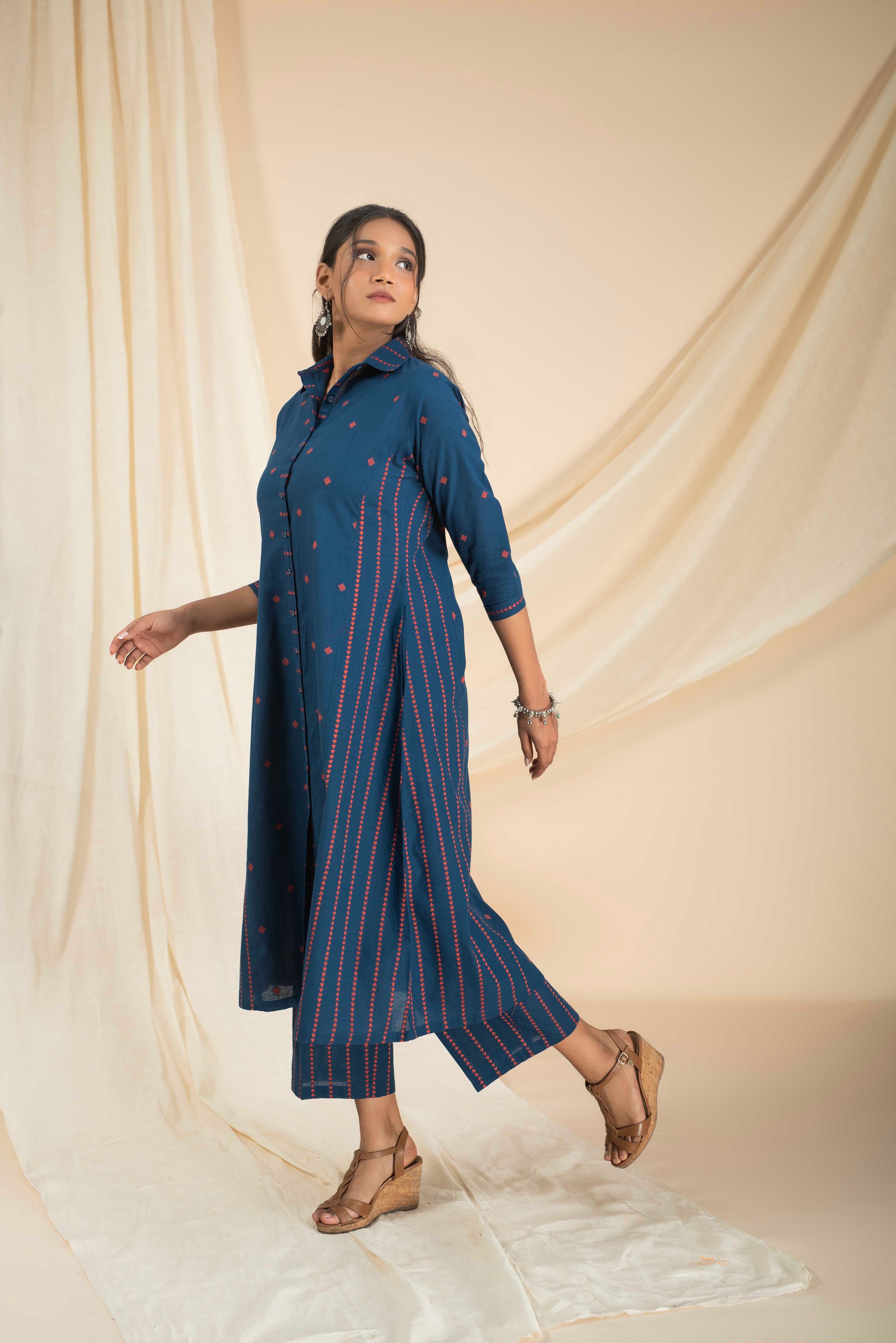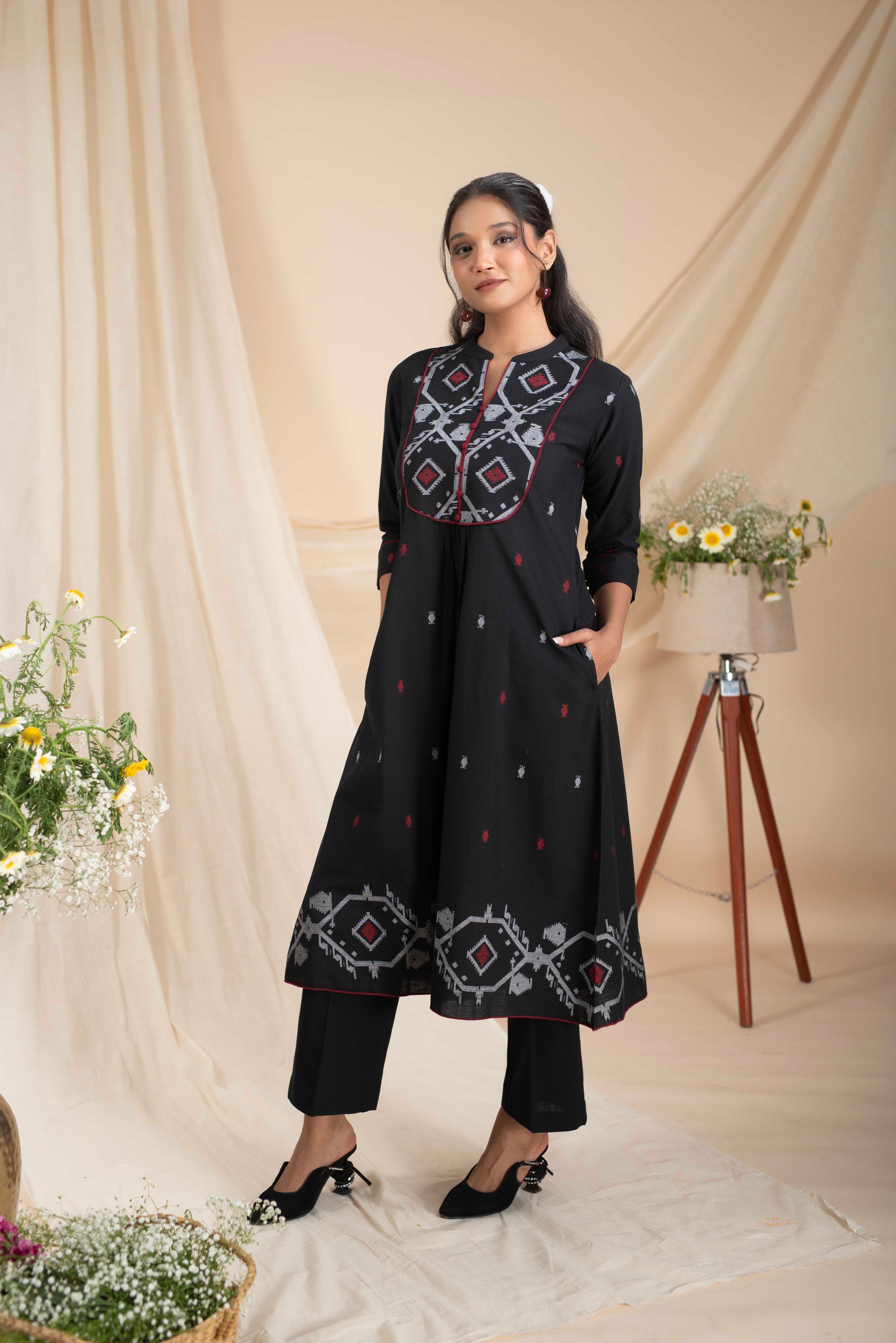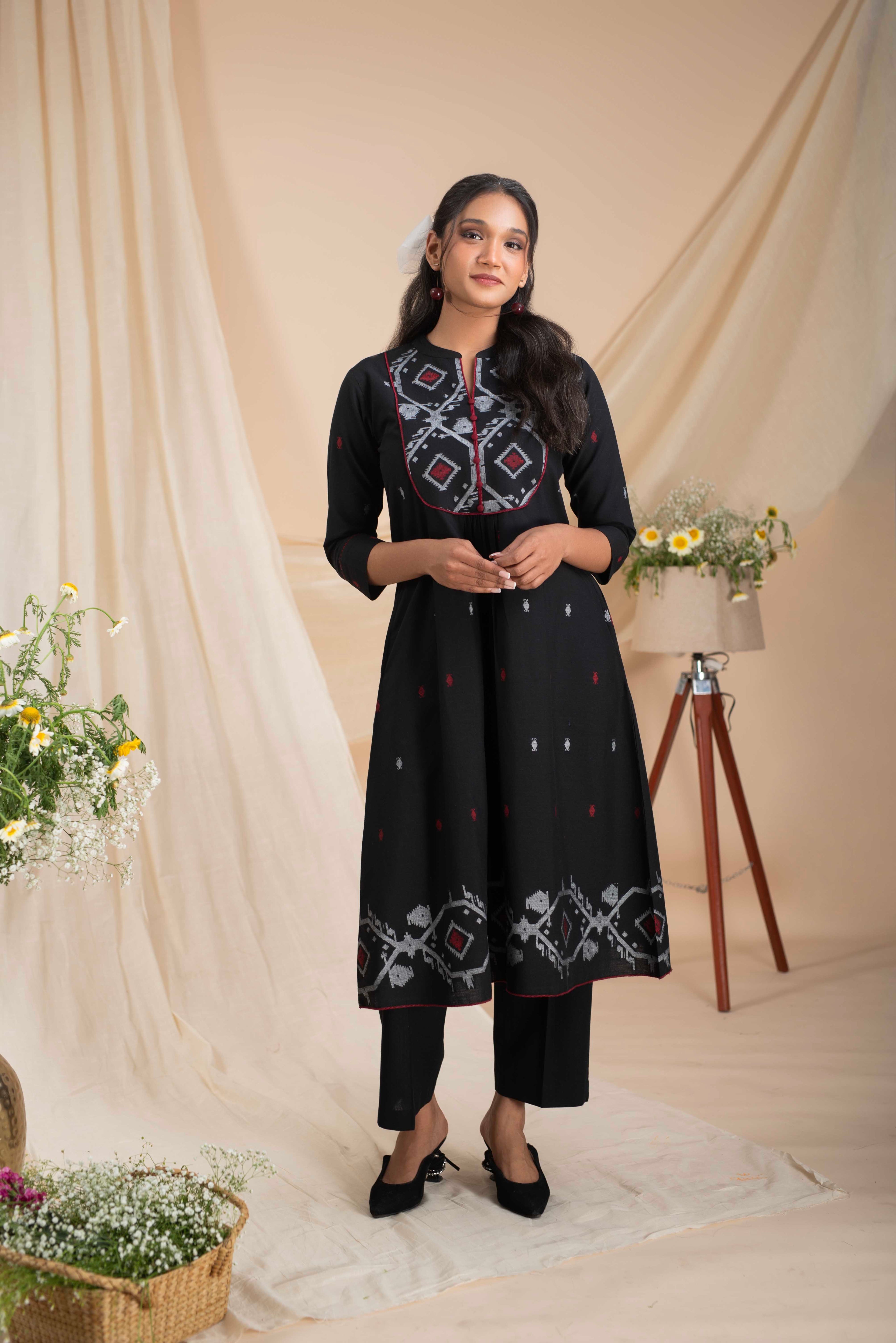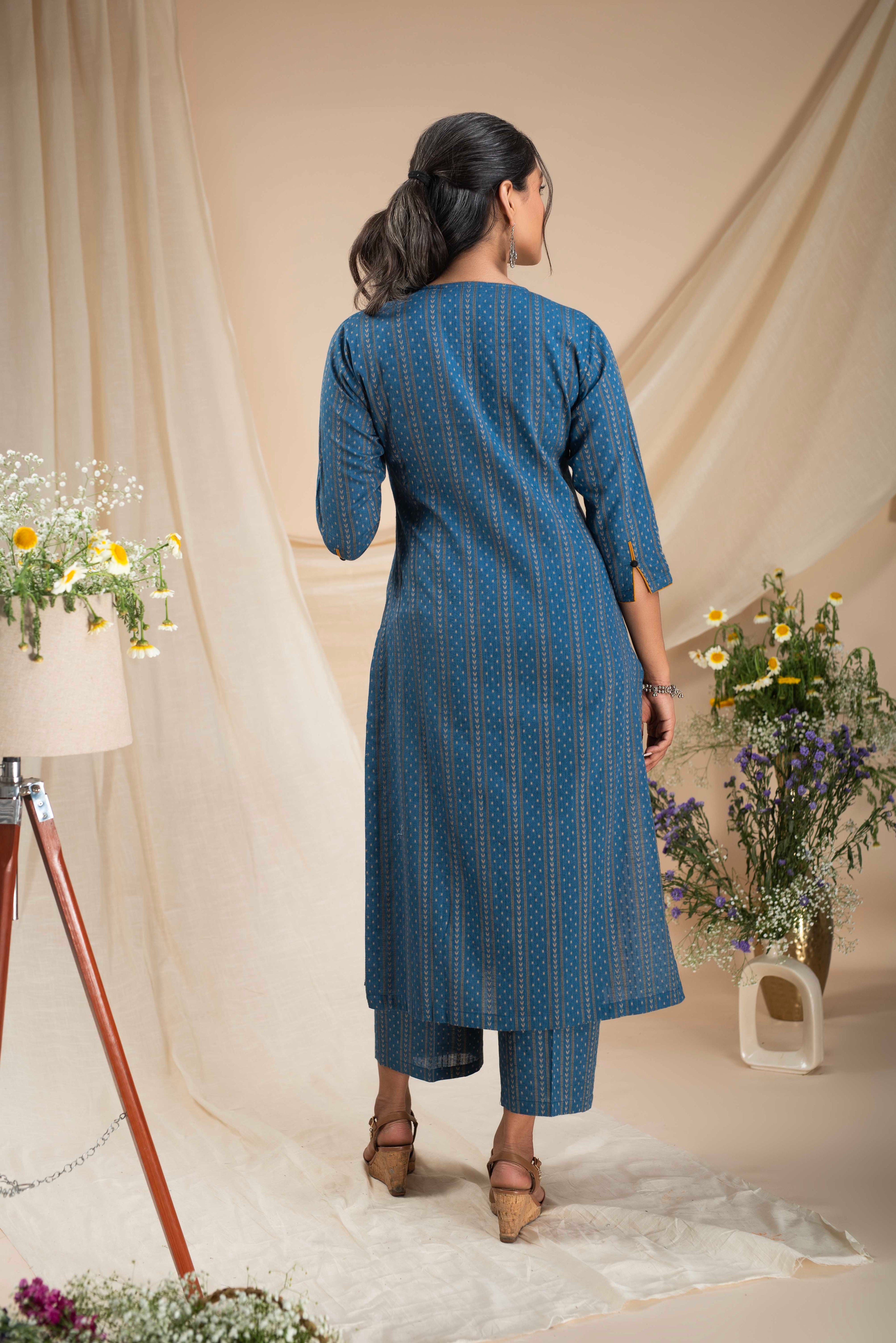 A-Line Kurta Pant Set - Embrace a feminine and flattering silhouette with our A-line kurta pant sets. The A-line cut of the kurta adds a touch of elegance, while the matching pants complete the ensemble for a stylish look.