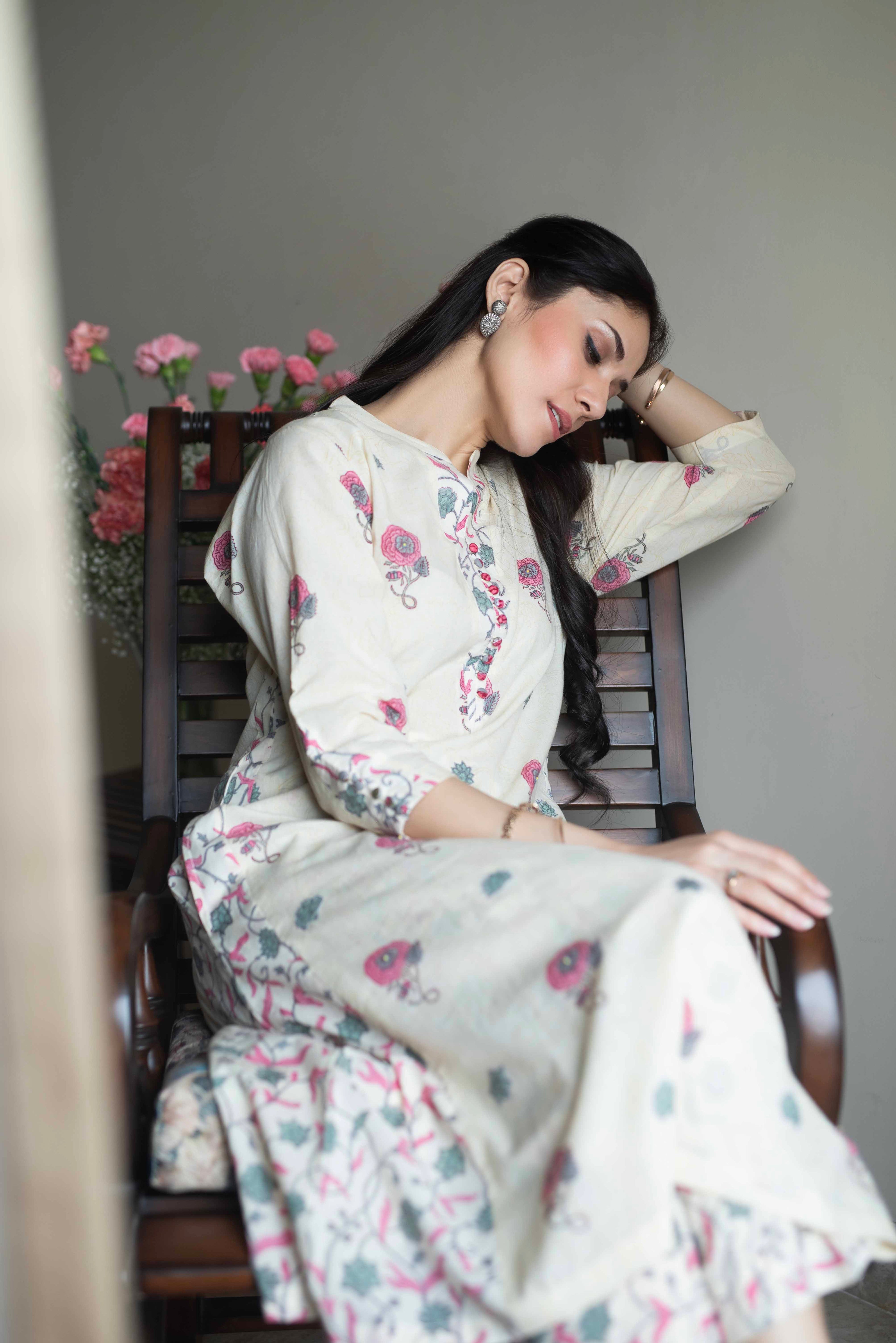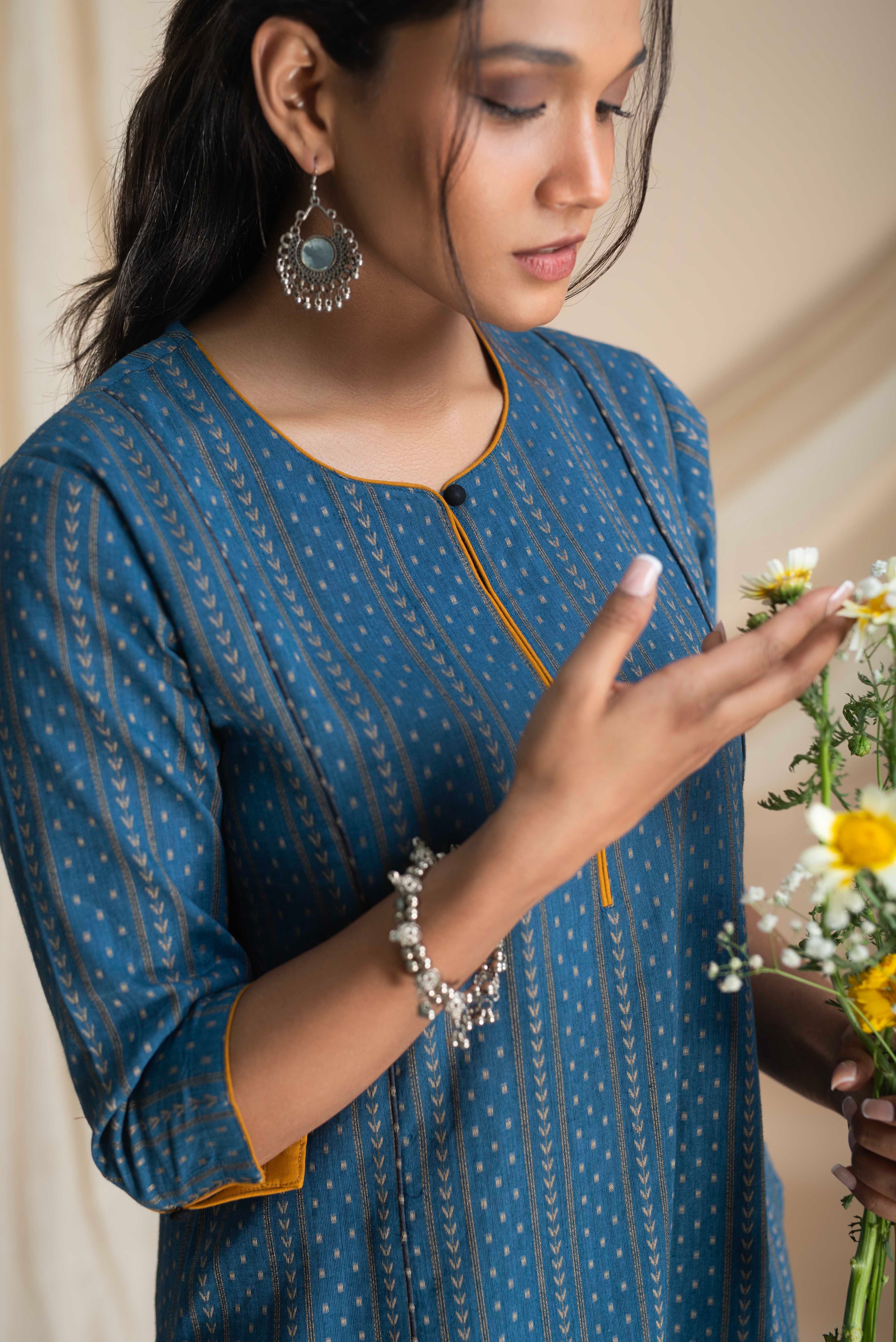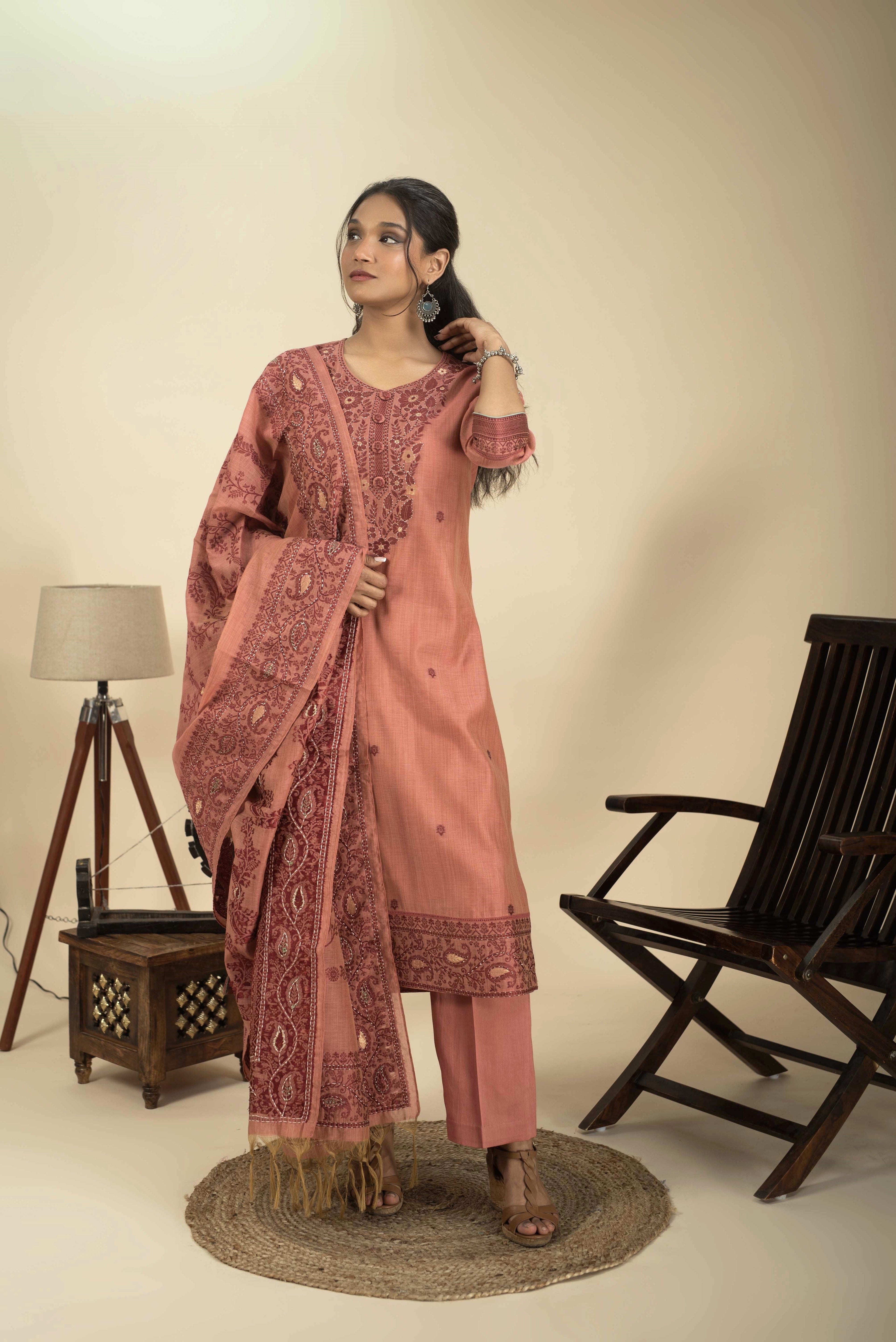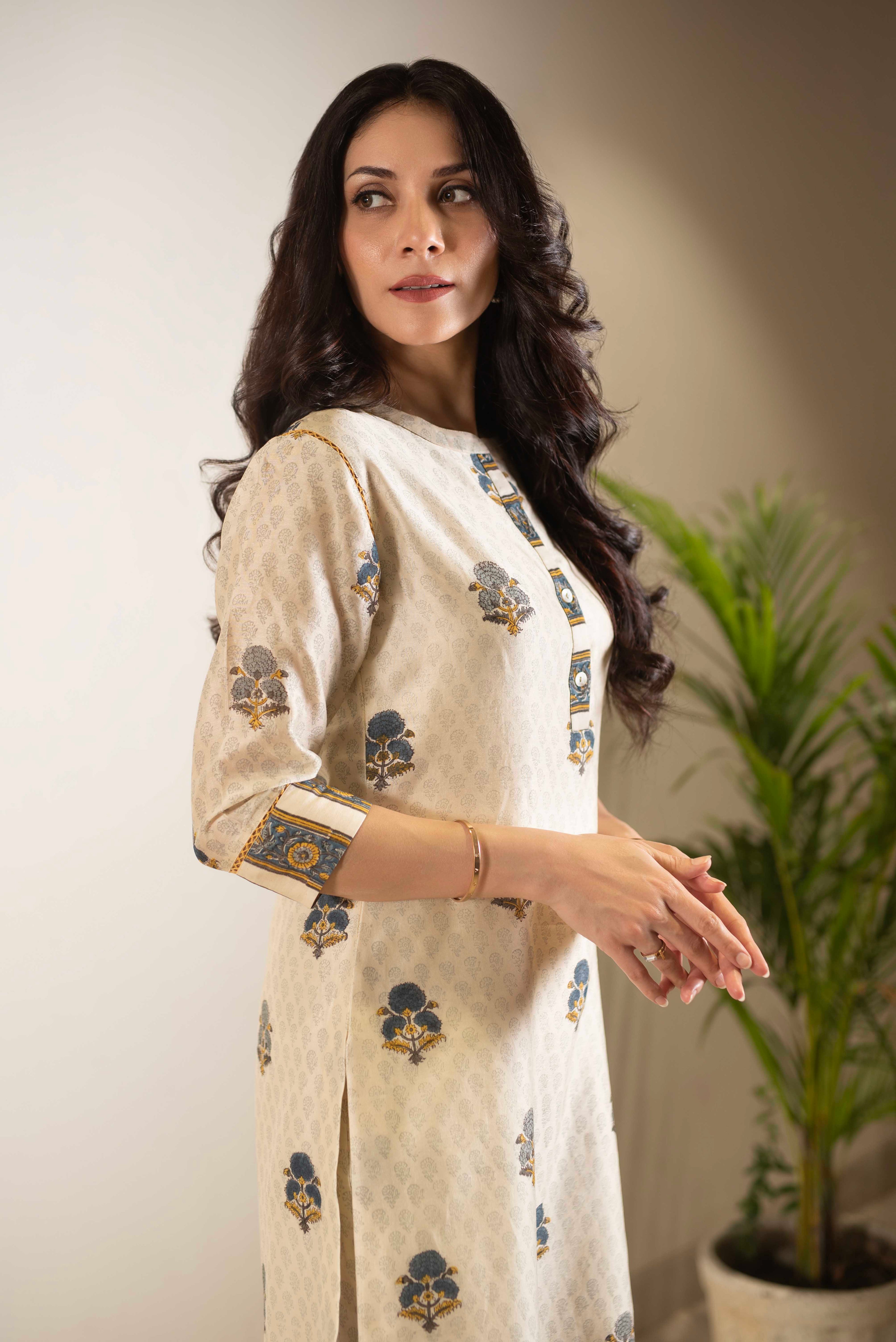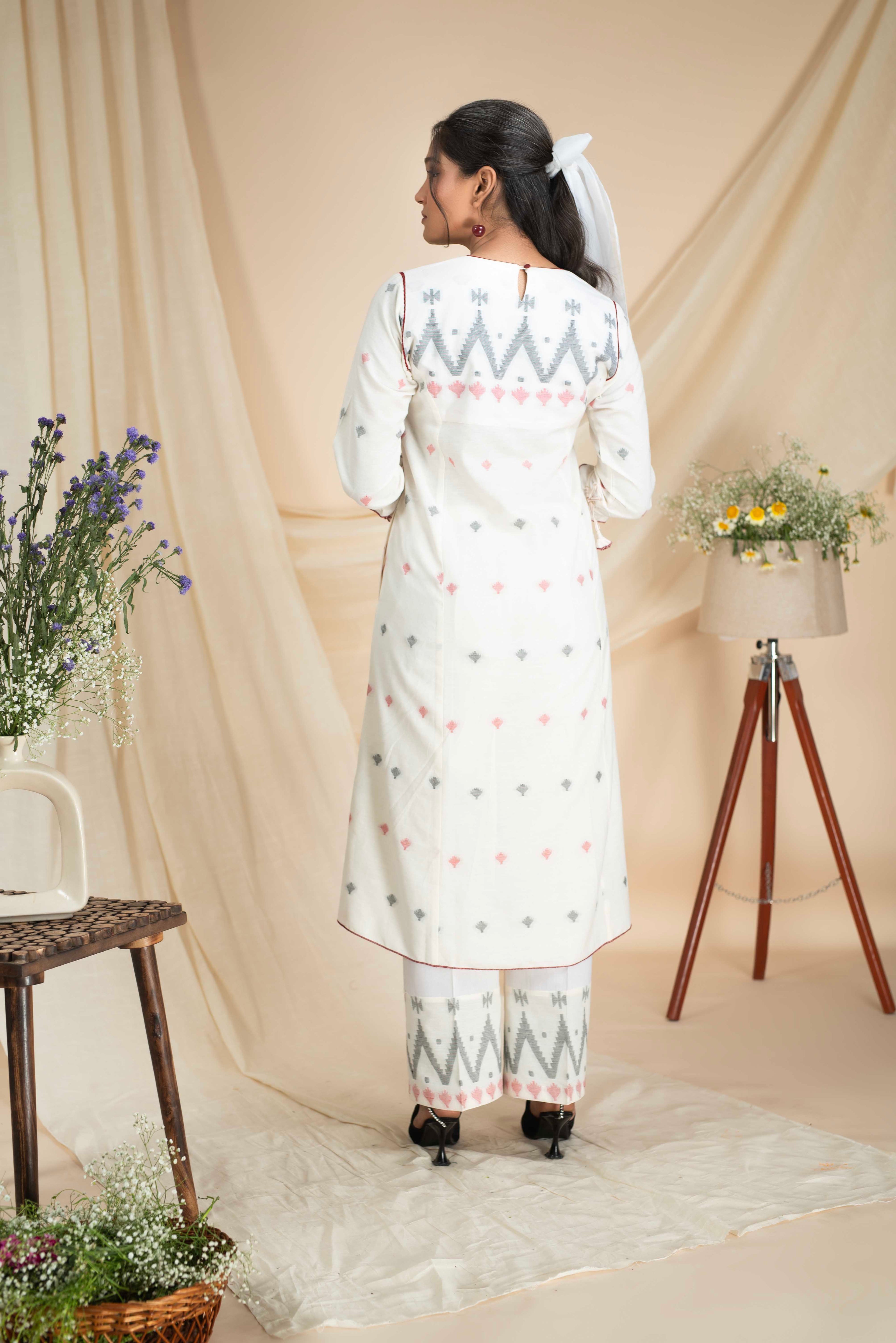A-Line Kurta Pant Set - Embrace a feminine and flattering silhouette with our A-line kurta pant sets. The A-line cut of the kurta adds a touch of elegance, while the matching pants complete the ensemble for a stylish look.