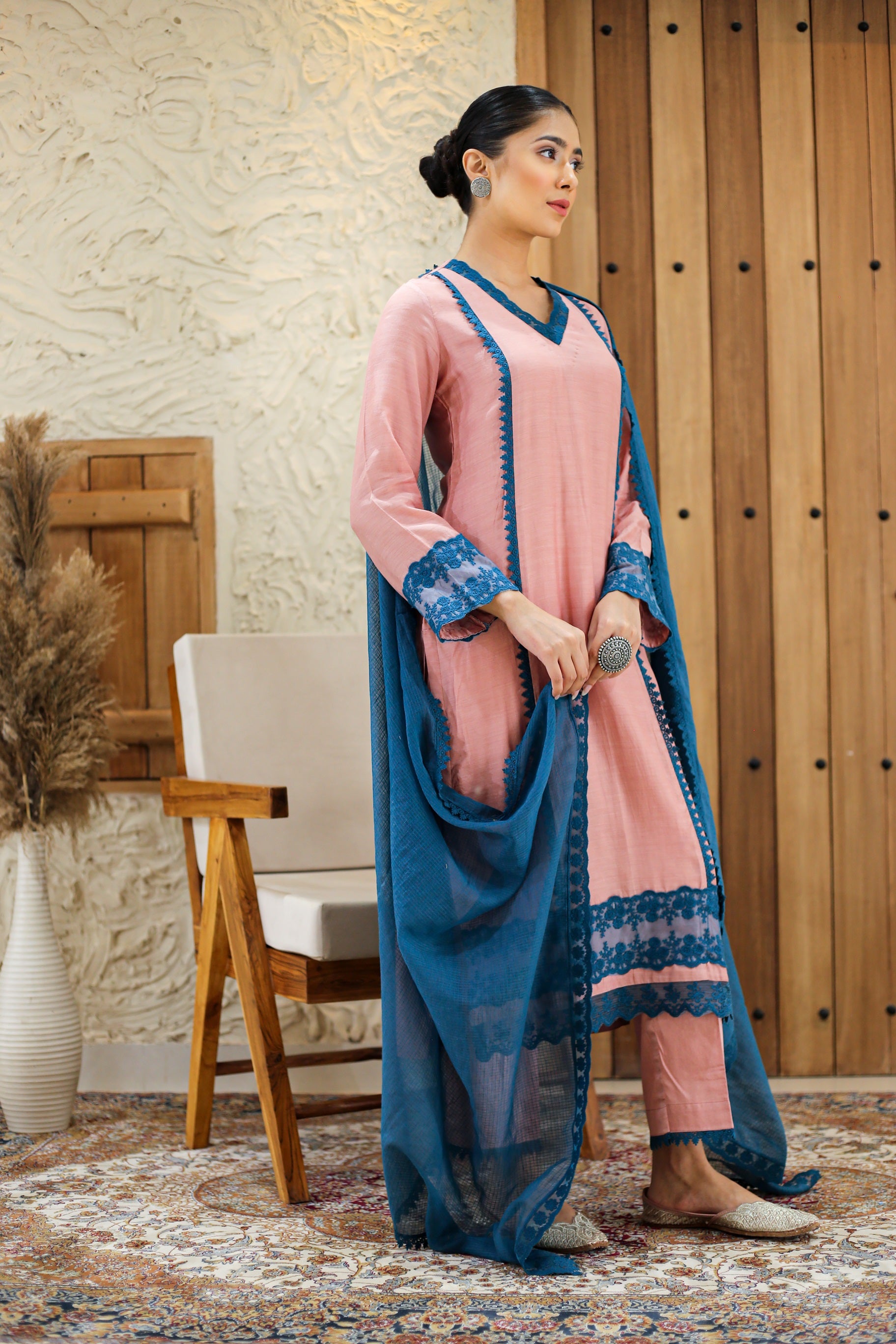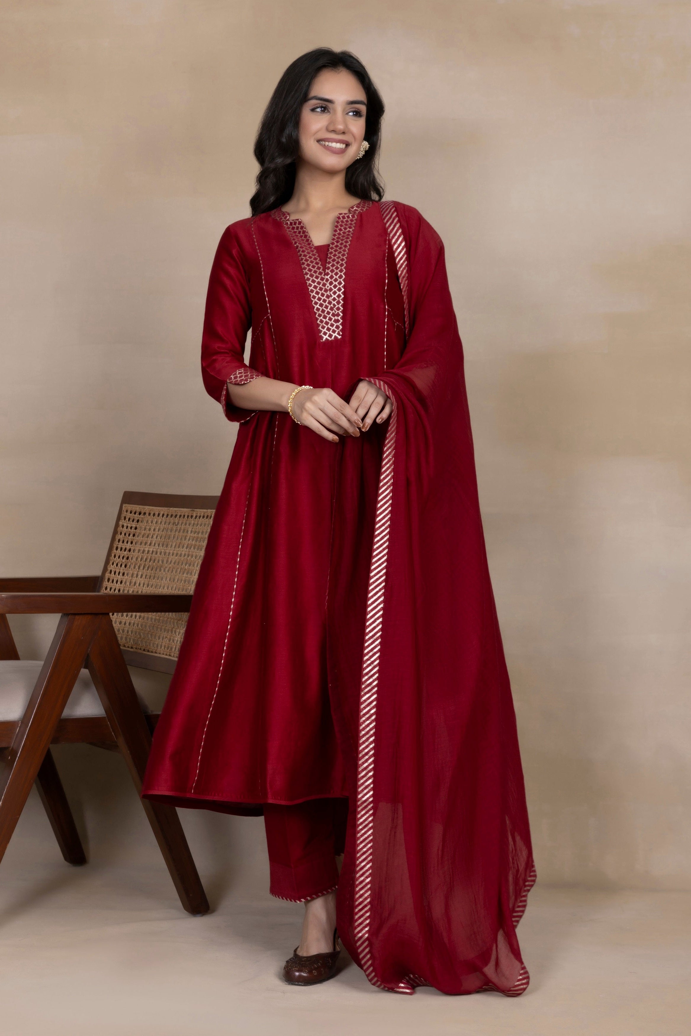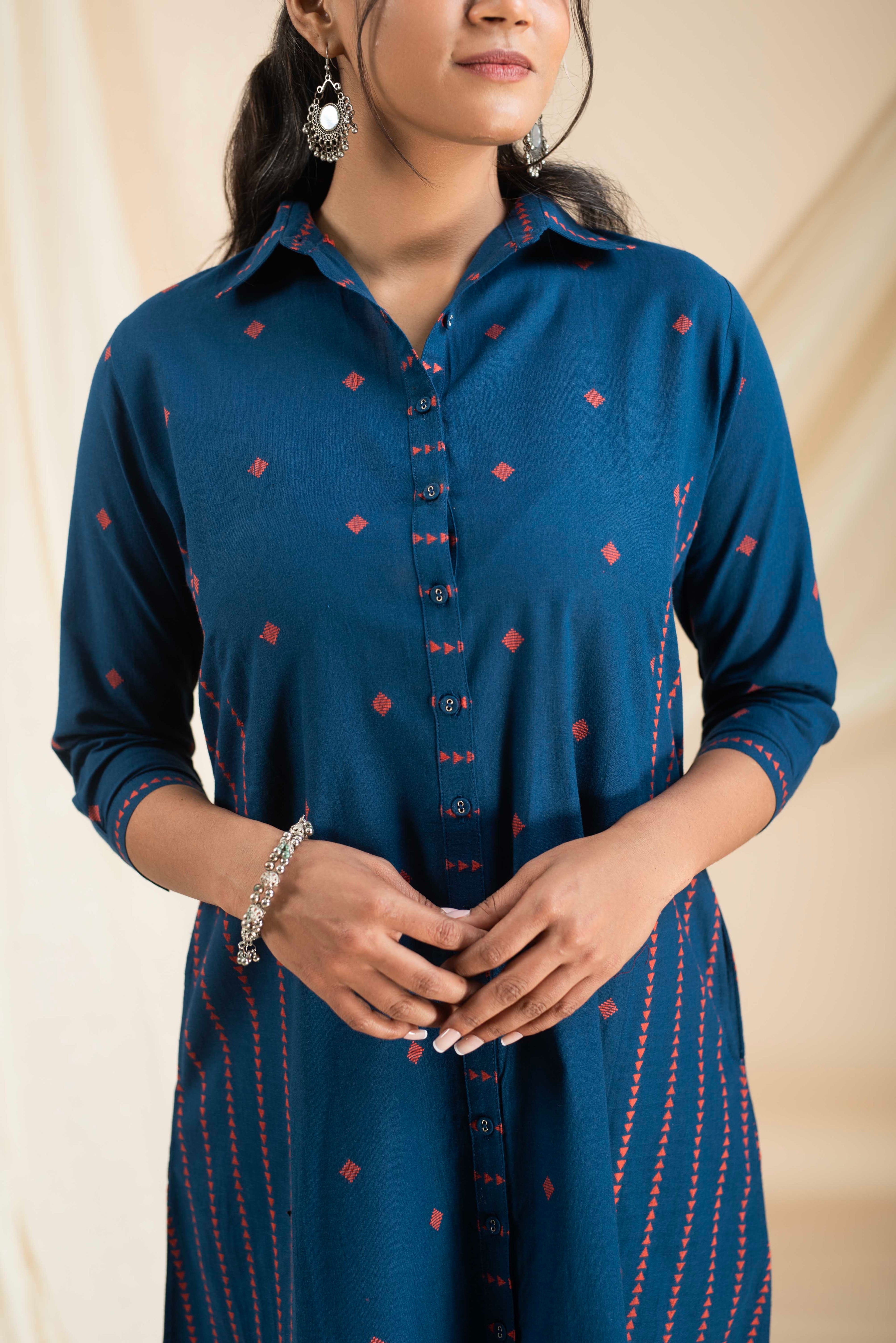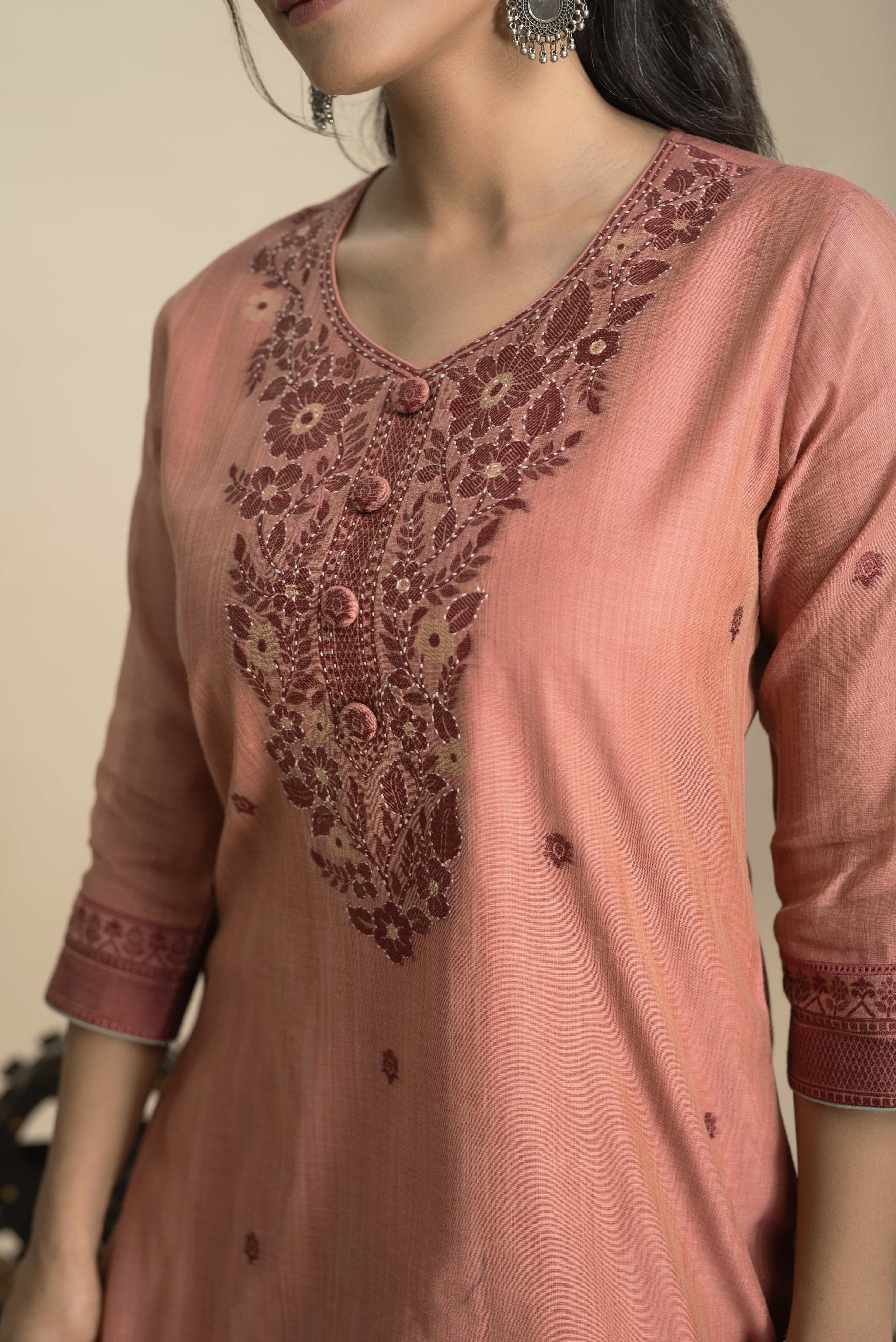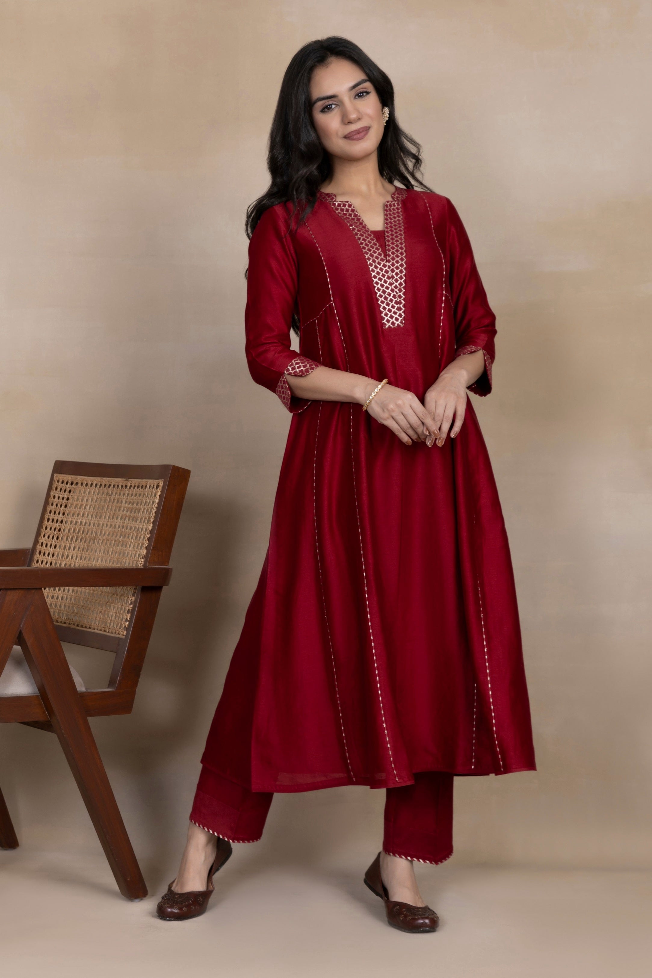 A-Line Kurta Pant Set - Embrace a feminine and flattering silhouette with our A-line kurta pant sets. The A-line cut of the kurta adds a touch of elegance, while the matching pants complete the ensemble for a stylish look.