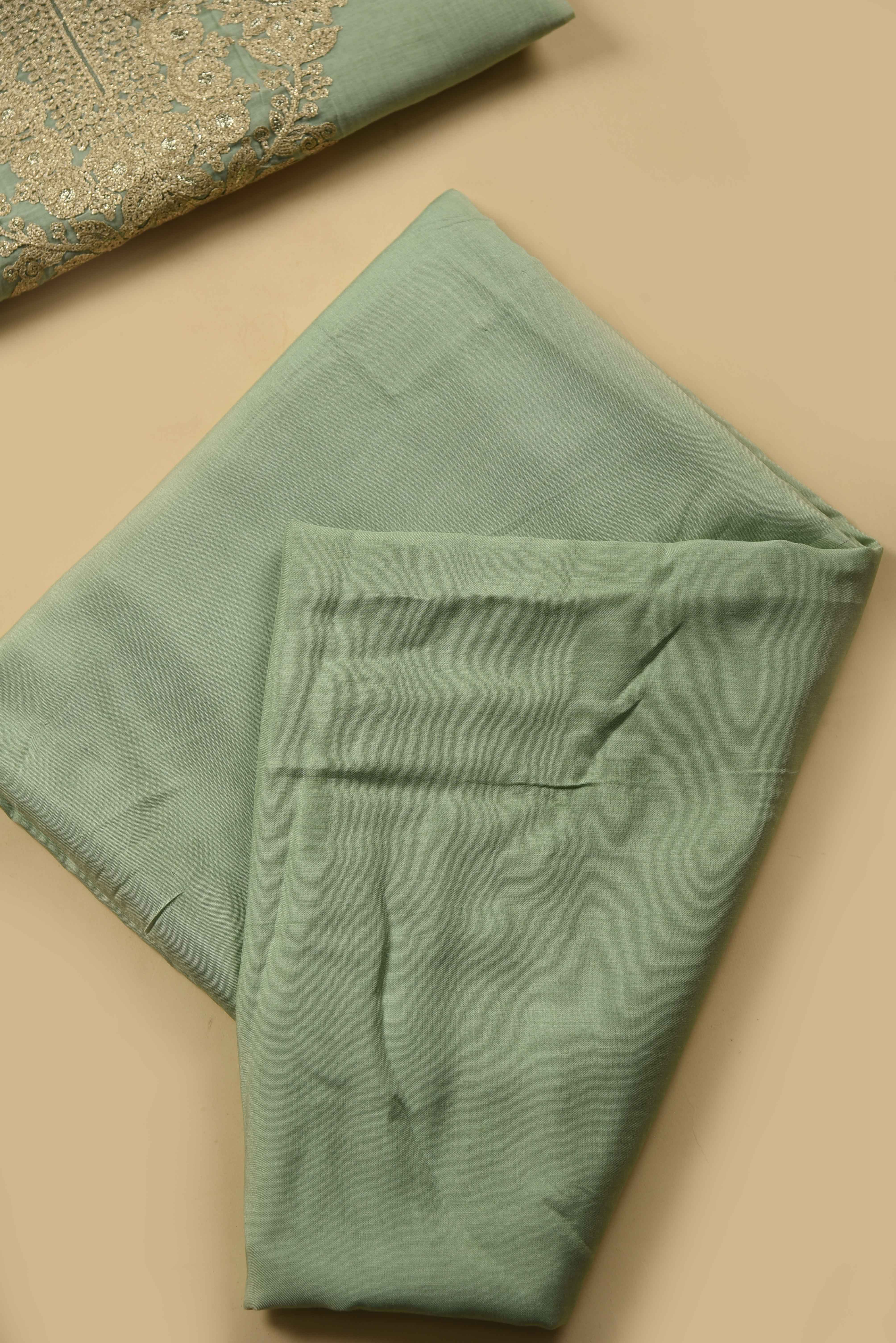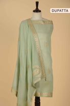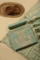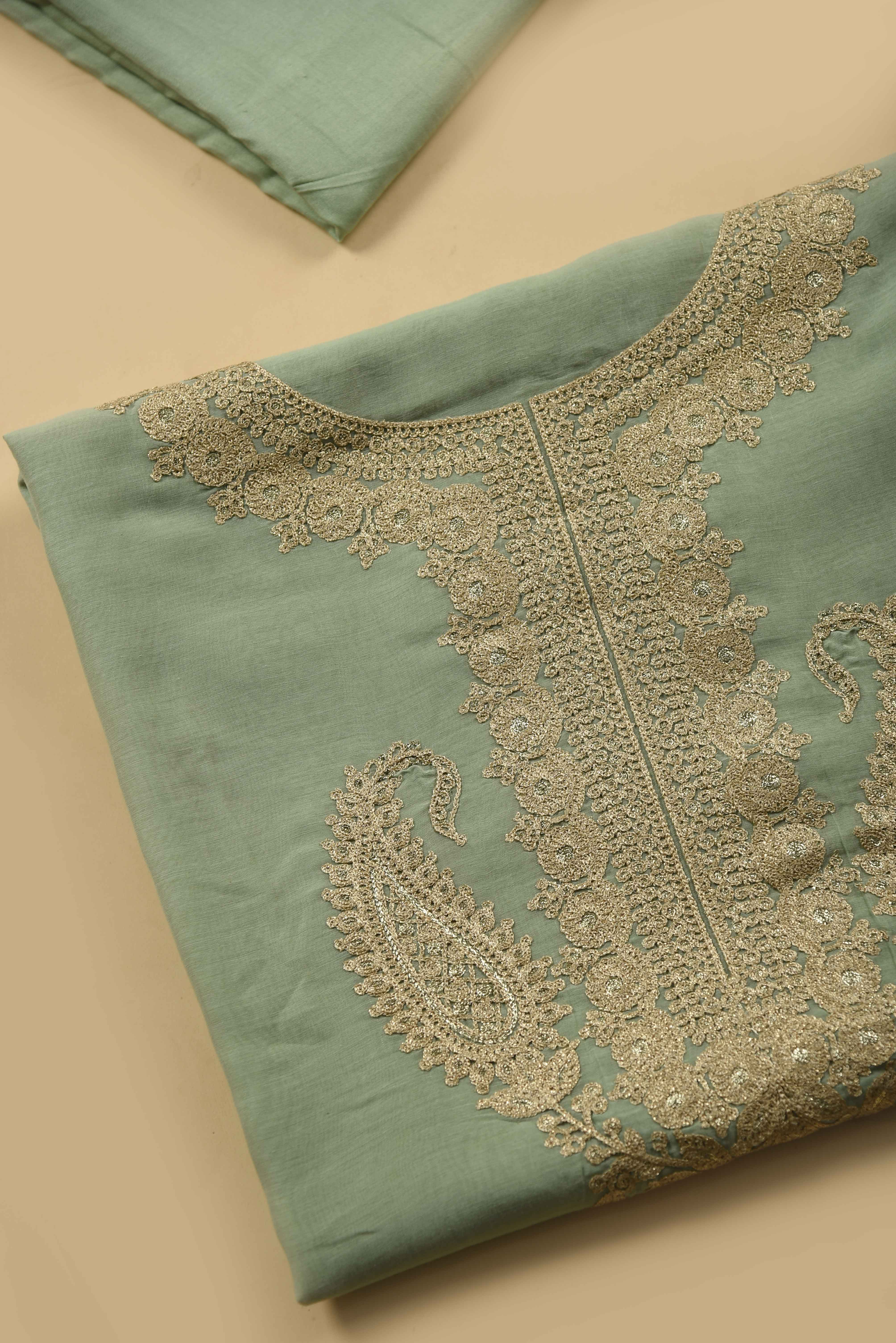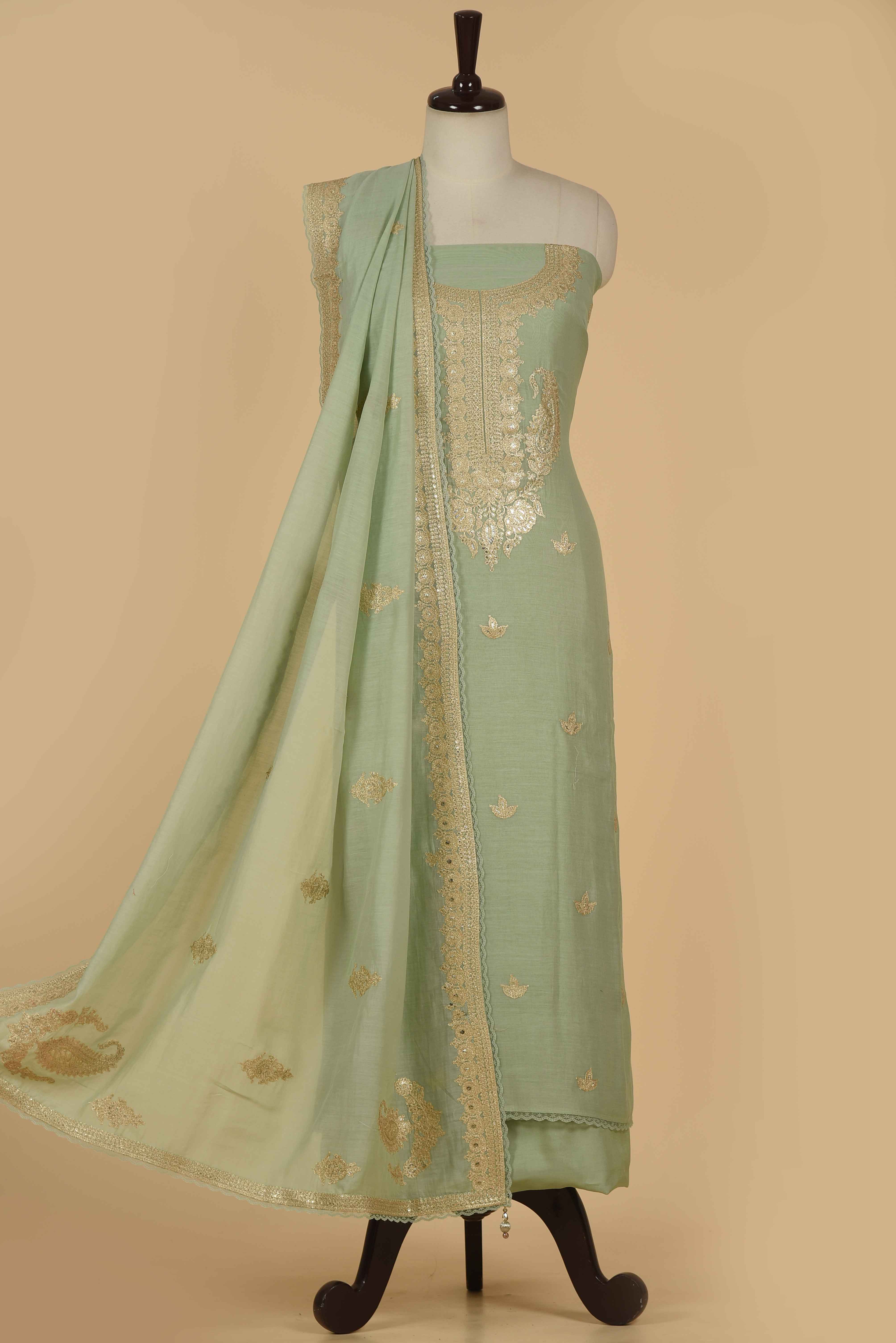 Green Mul Chanderi Embroidered Unstitched Suit Fabric Set With Mul Chanderi Embroidered Dupatta
