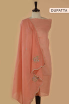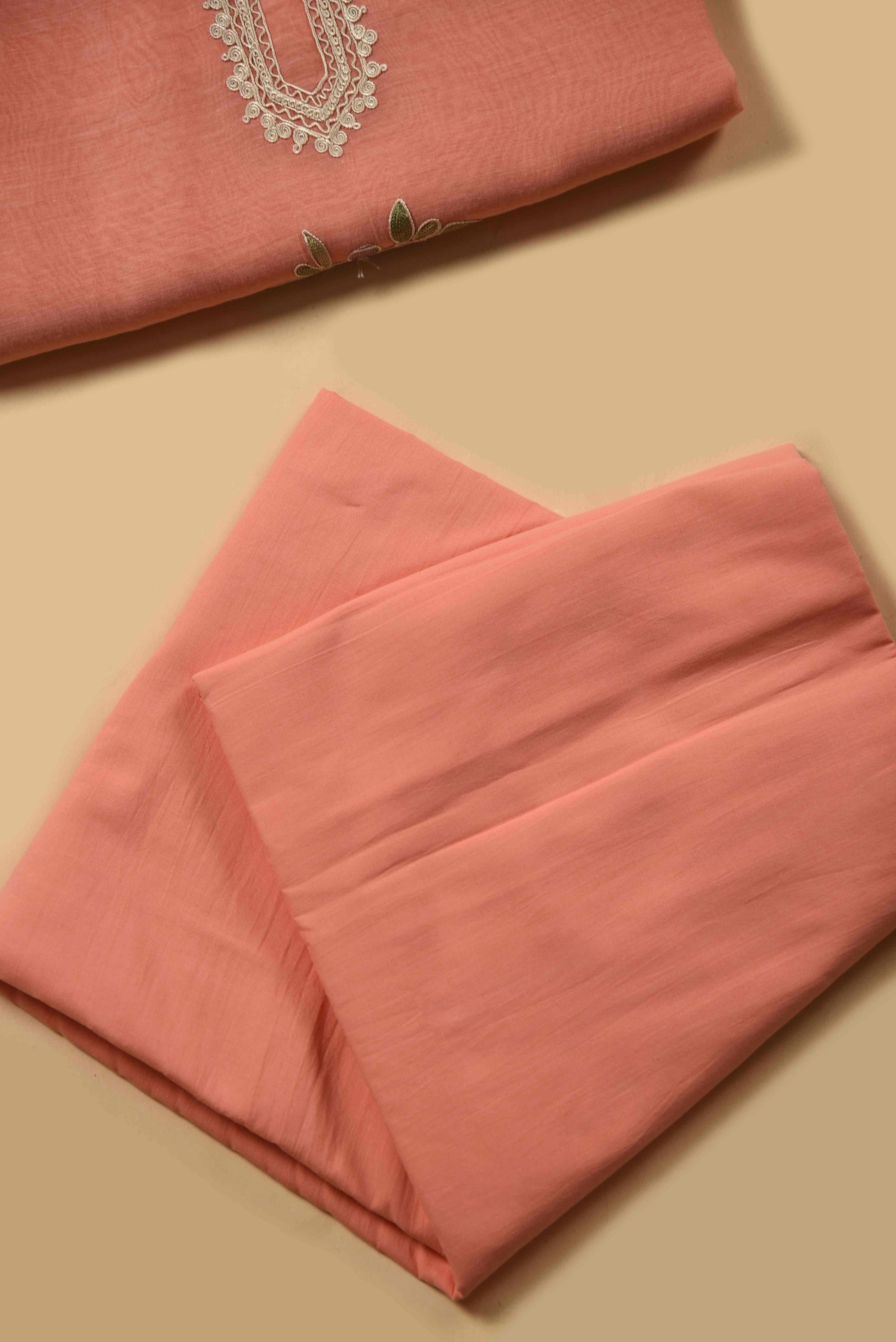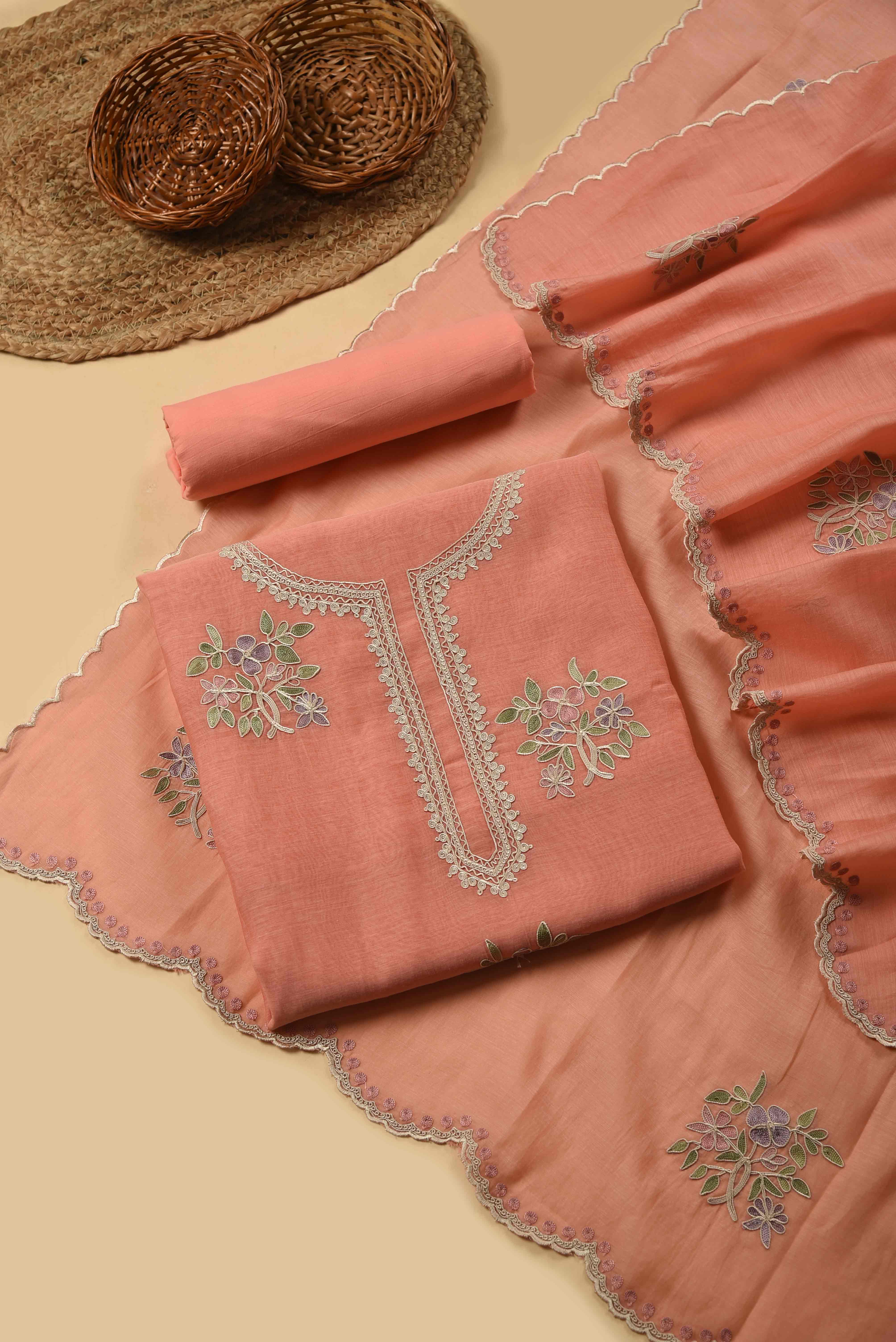 Peach Mul Chanderi Embroidered Unstitched Suit Fabric Set With Mul Chanderi Embroidered Dupatta