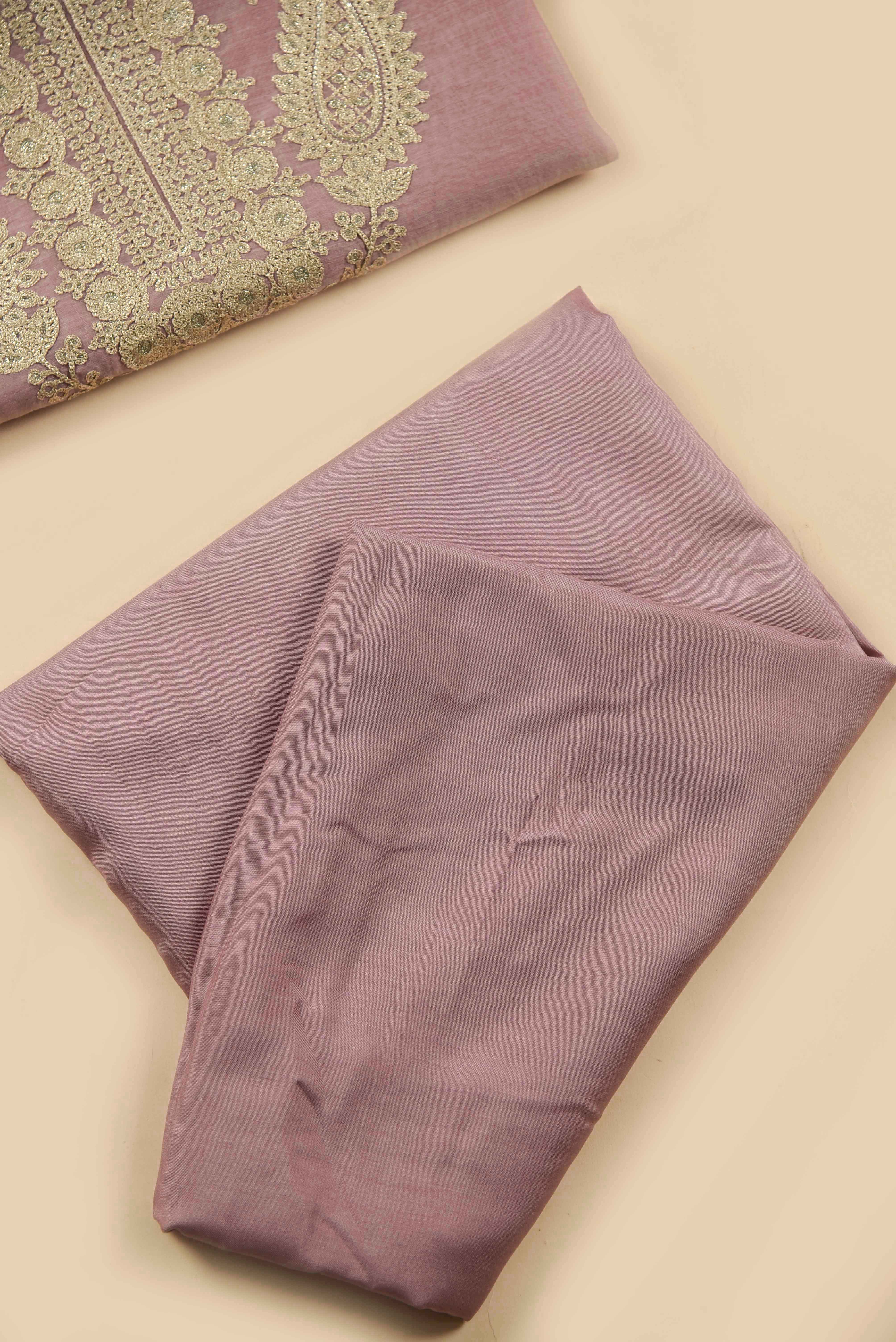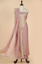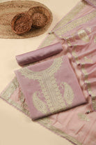 Pink Mul Chanderi Embroidered Unstitched Suit Fabric Set With Mul Chanderi Embroidered Dupatta