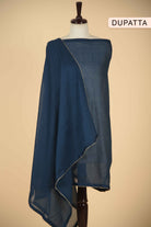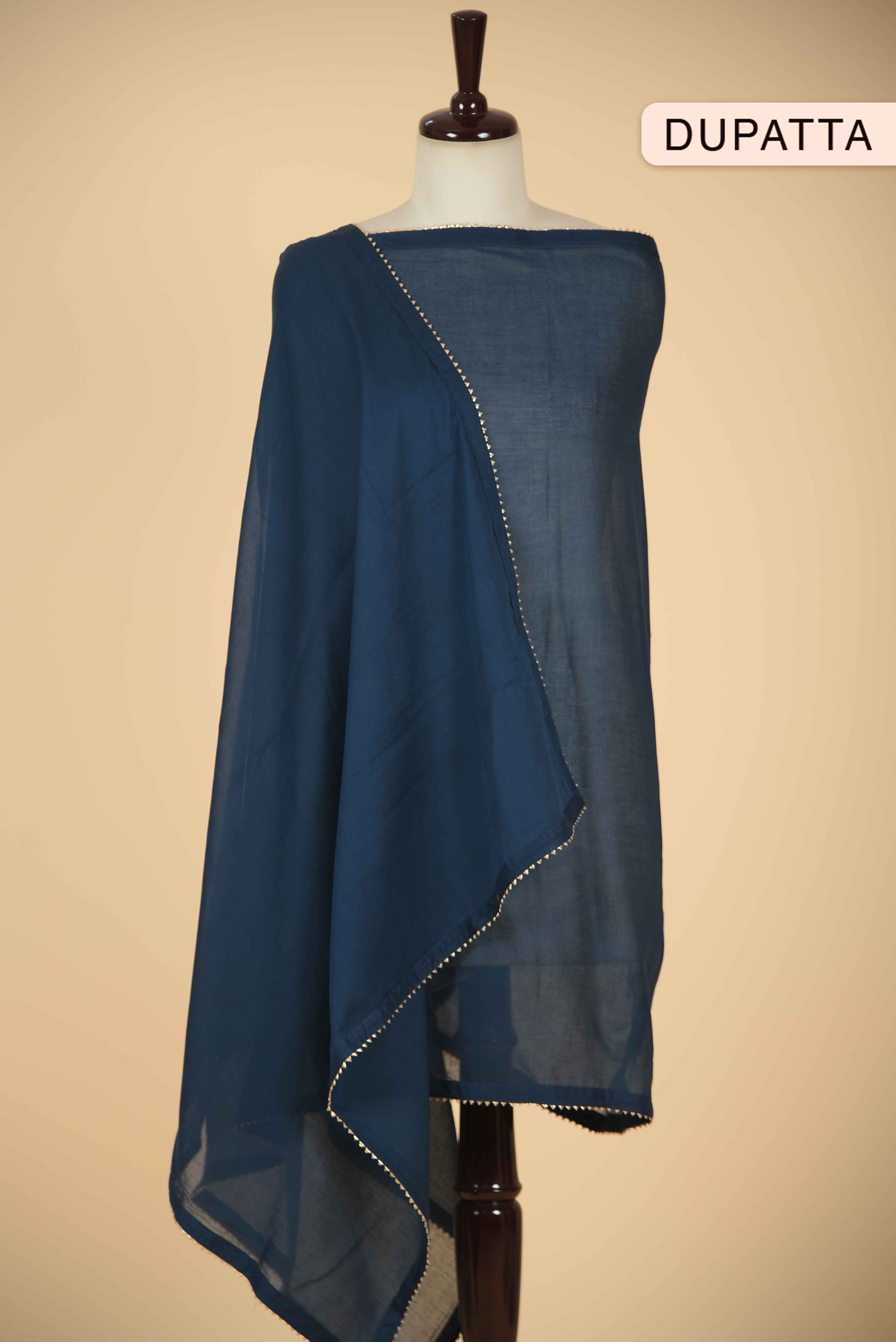 • The elegant blue hue enhances its versatility, while the coordinated cotton printed dupatta completes the look with effortless grace.