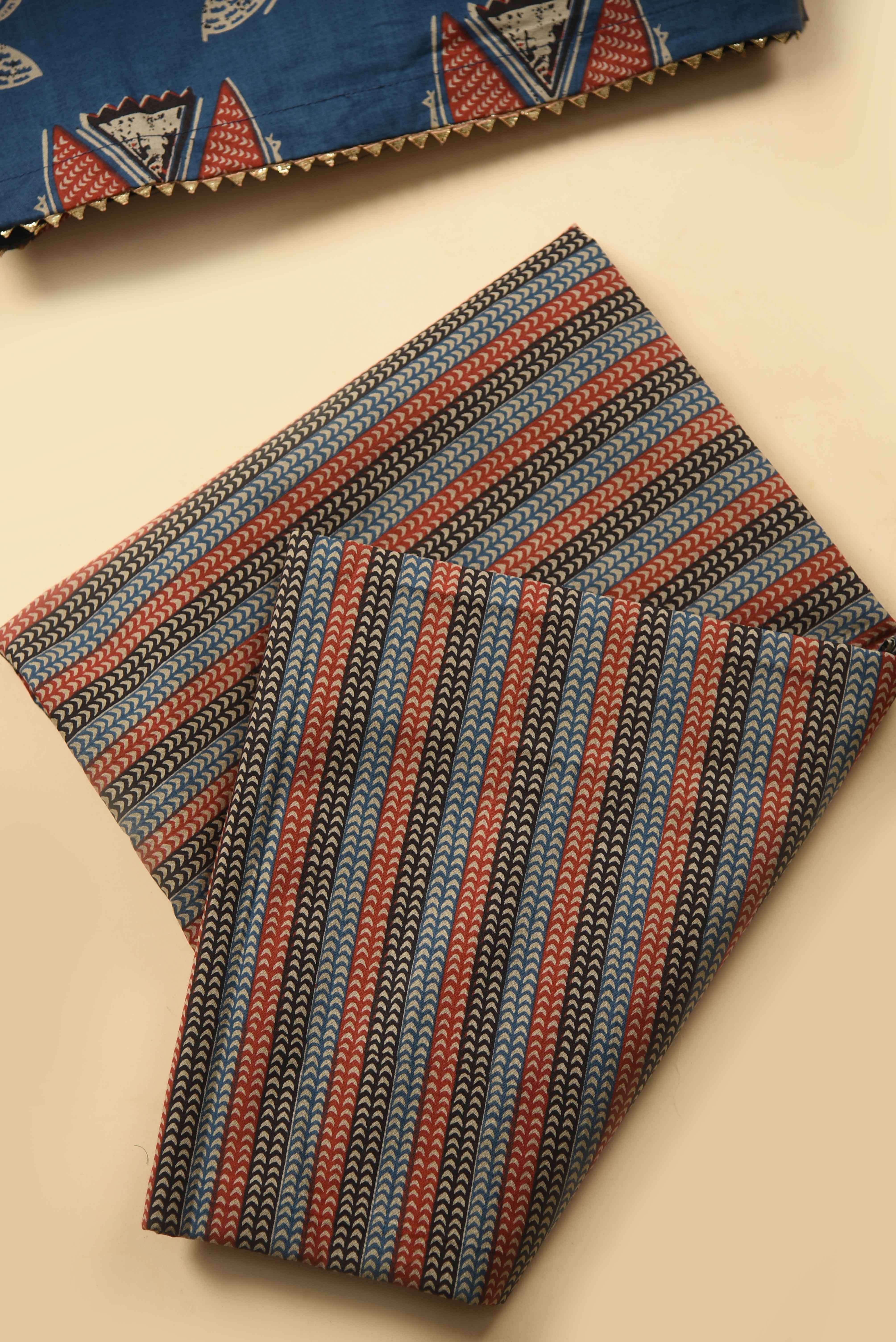• Add a touch of artisanal charm to your everyday wardrobe with this Blue Pure Cotton Hand Block Printed Unstitched Suit Fabric Set.