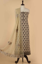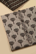 Brown Pure Cotton Hand Block Printed Unstitched Suit Fabric Set With Kota Embroidered Dupatta - III