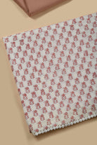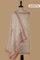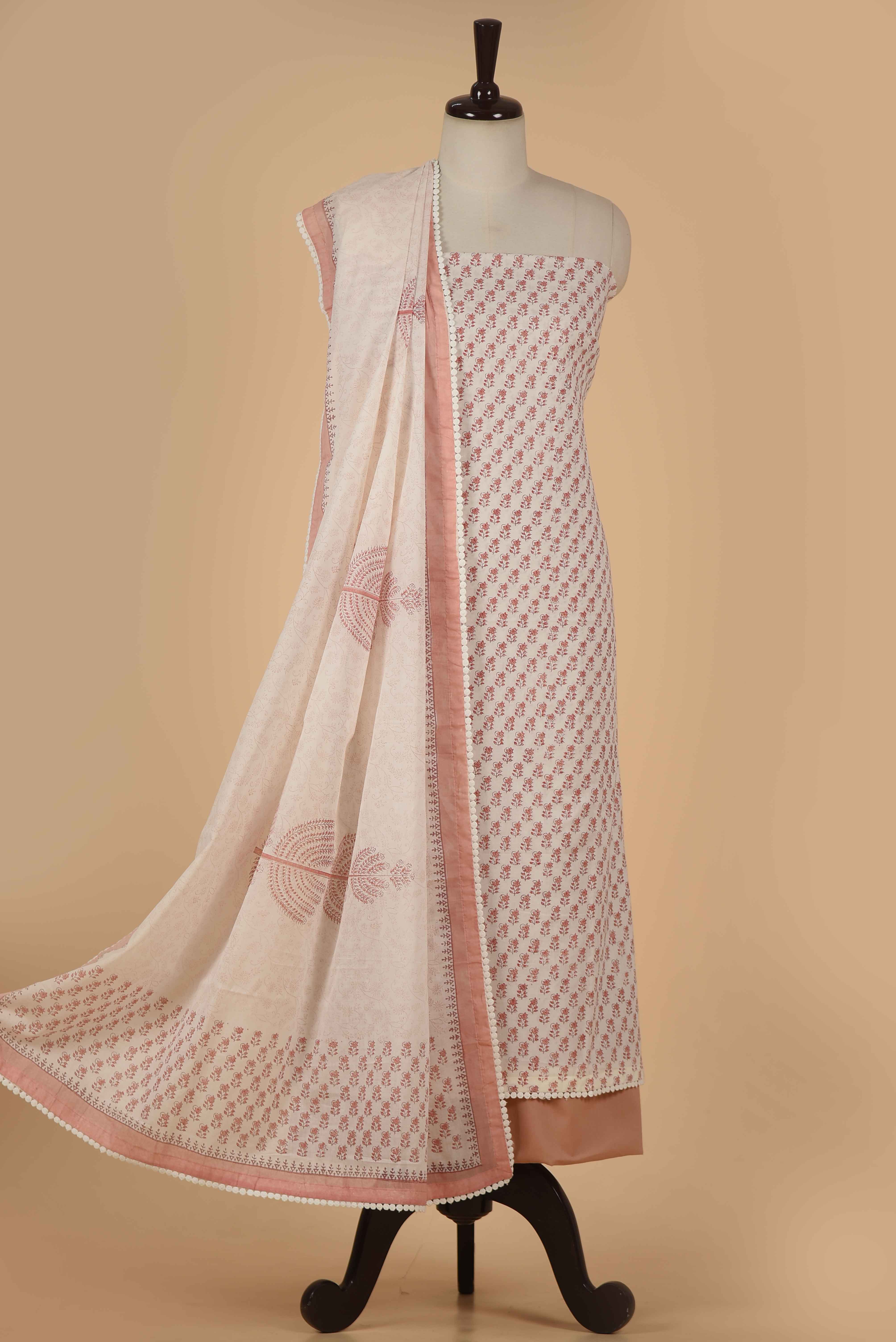 Off White With Peach Pure Cotton Hand Block Printed Unstitched Suit Fabric Set With Cotton Hand Block Printed Dupatta