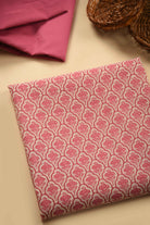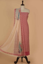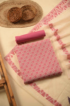Beige With Pink Chanderi Blend Printed Unstitched Suit Fabric Set With Chanderi Printed Dupatta