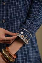 Blue Check Cotton Woven Embroidered A-Line Kurta Set With Culotte Pants - Regular Fit