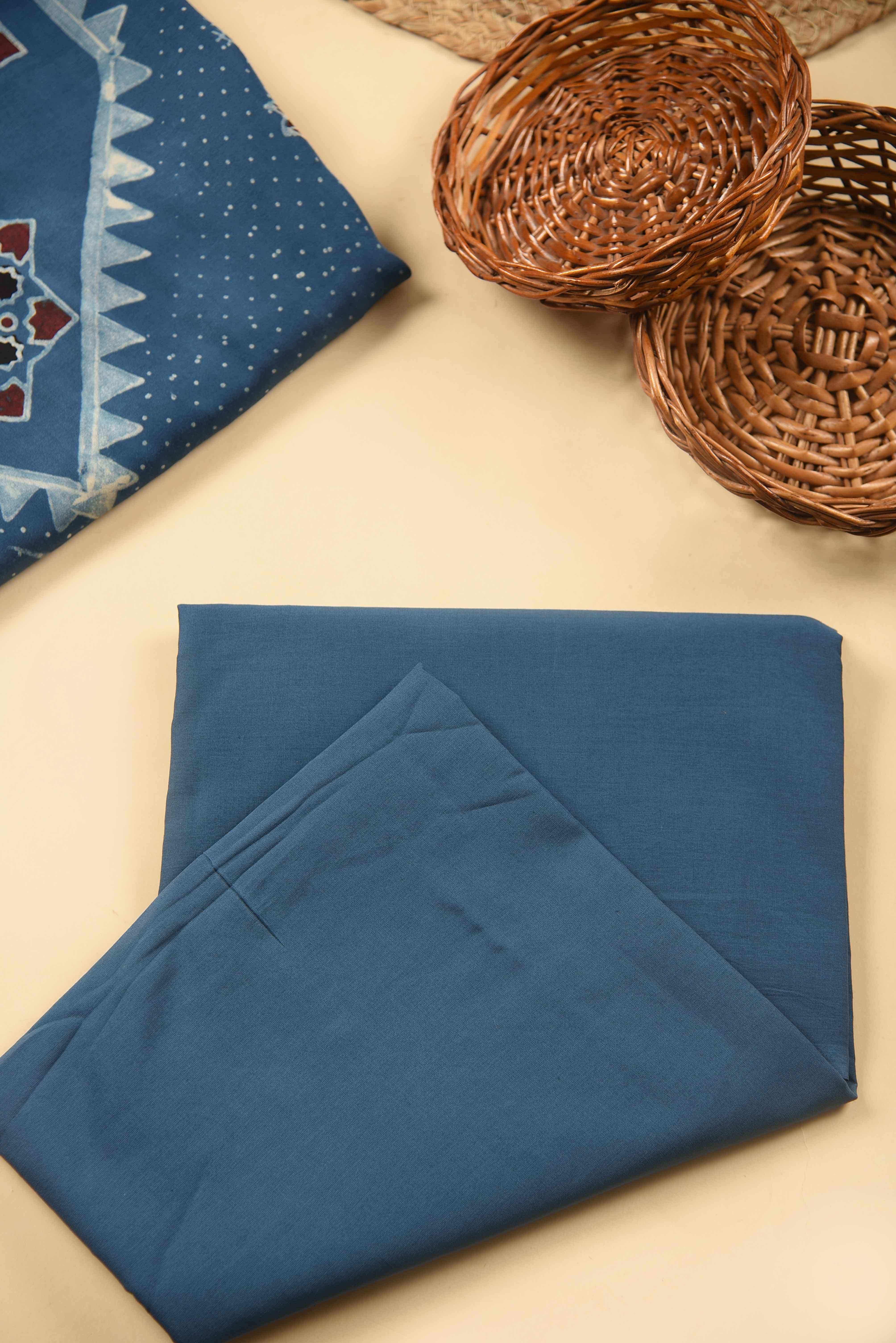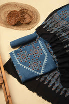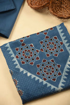 - The rich blue base is beautifully adorned with traditional Ajrak prints, reflecting heritage craftsmanship with a contemporary appeal.
