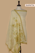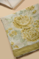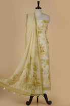 Cream With Yellow Mul Chanderi Printed Unstitched Suit Fabric Set With Mul Chanderi Printed Dupatta