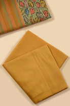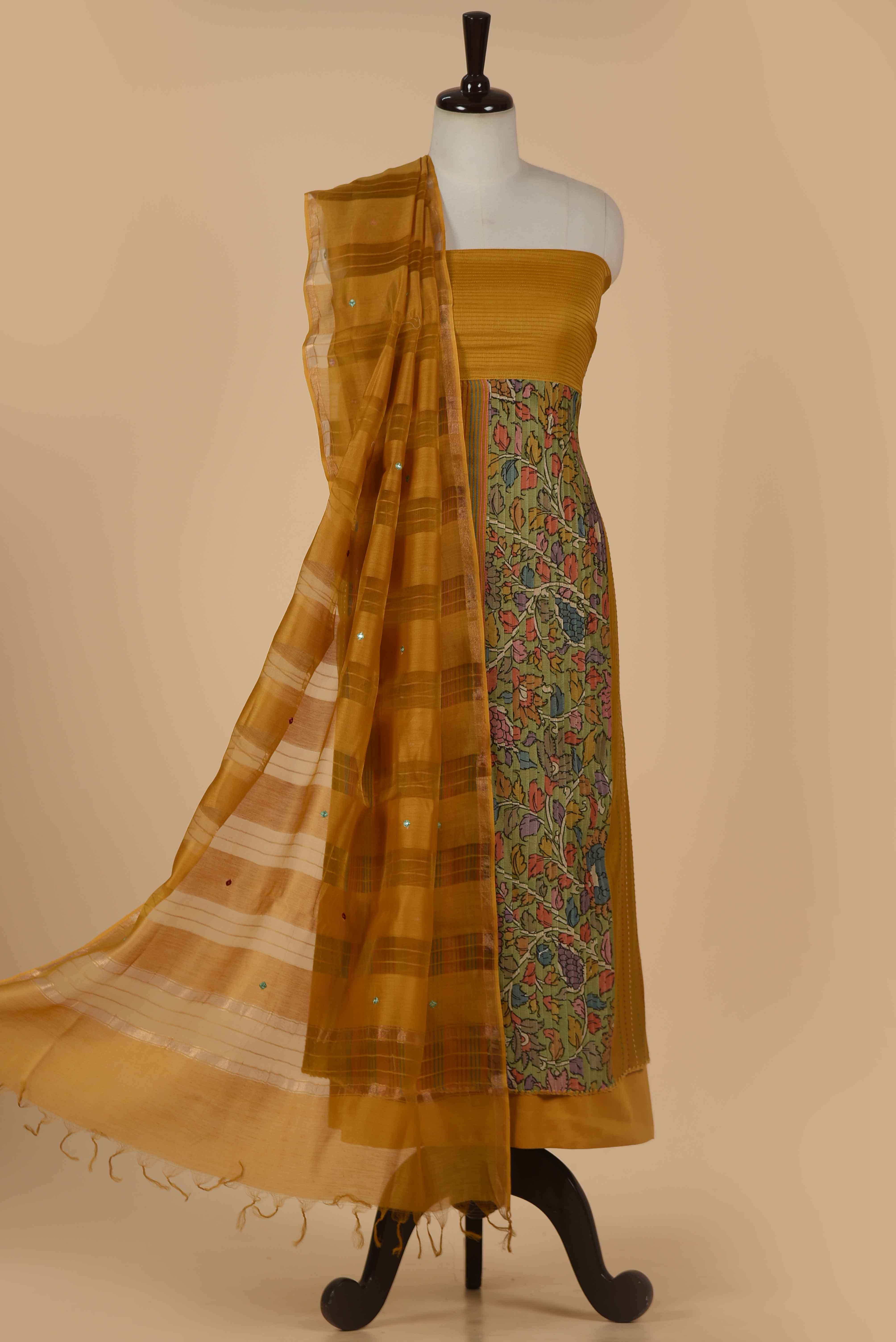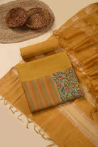 Yellow Chanderi Silk Printed With Embroidered Unstitched Suit Fabric Set With Chanderi Silk Embroidered Dupatta