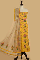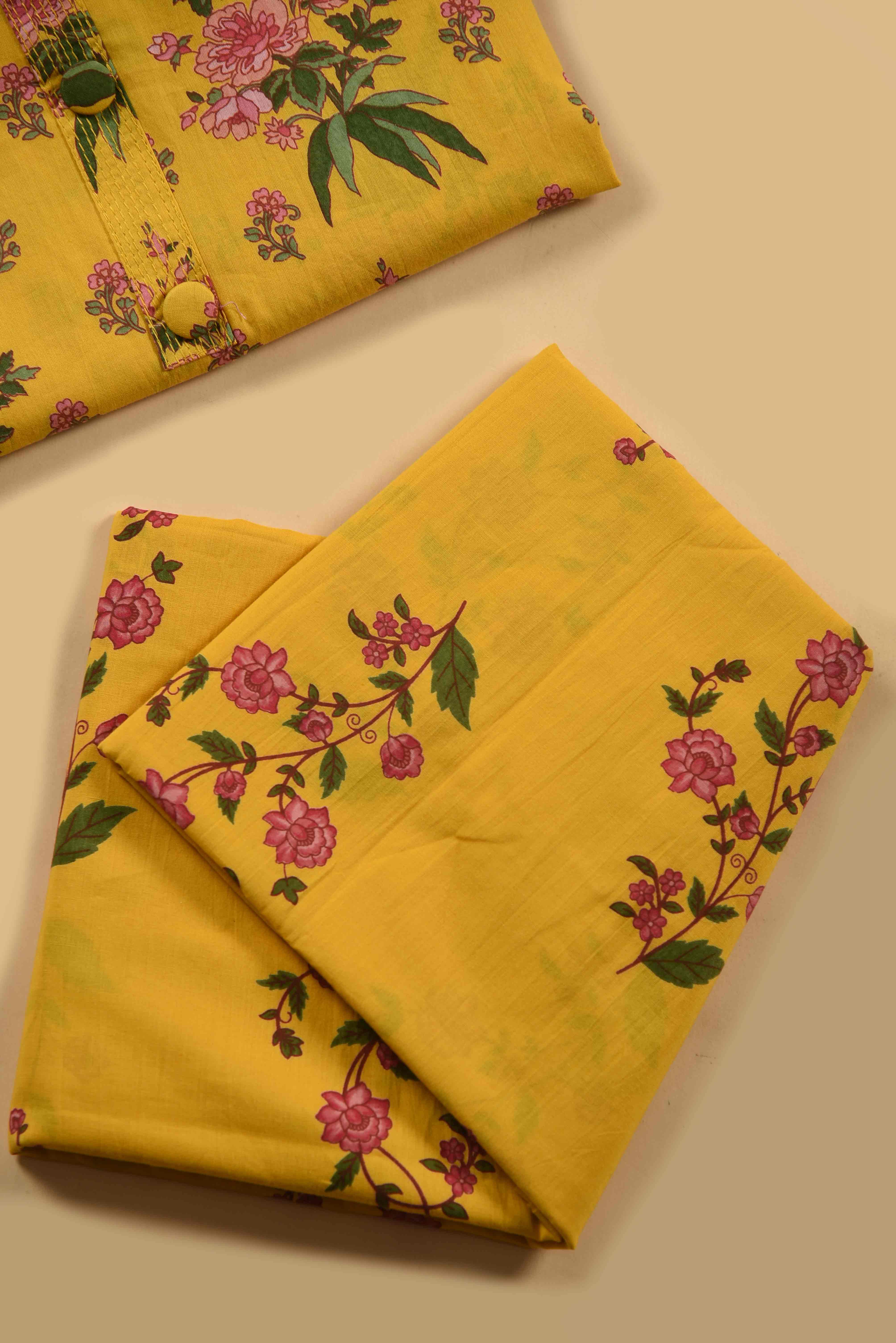 - Crafted for effortless everyday elegance, this Yellow Pure Cotton Floral Printed Unstitched Suit Fabric Set brings together comfort and subtle charm.