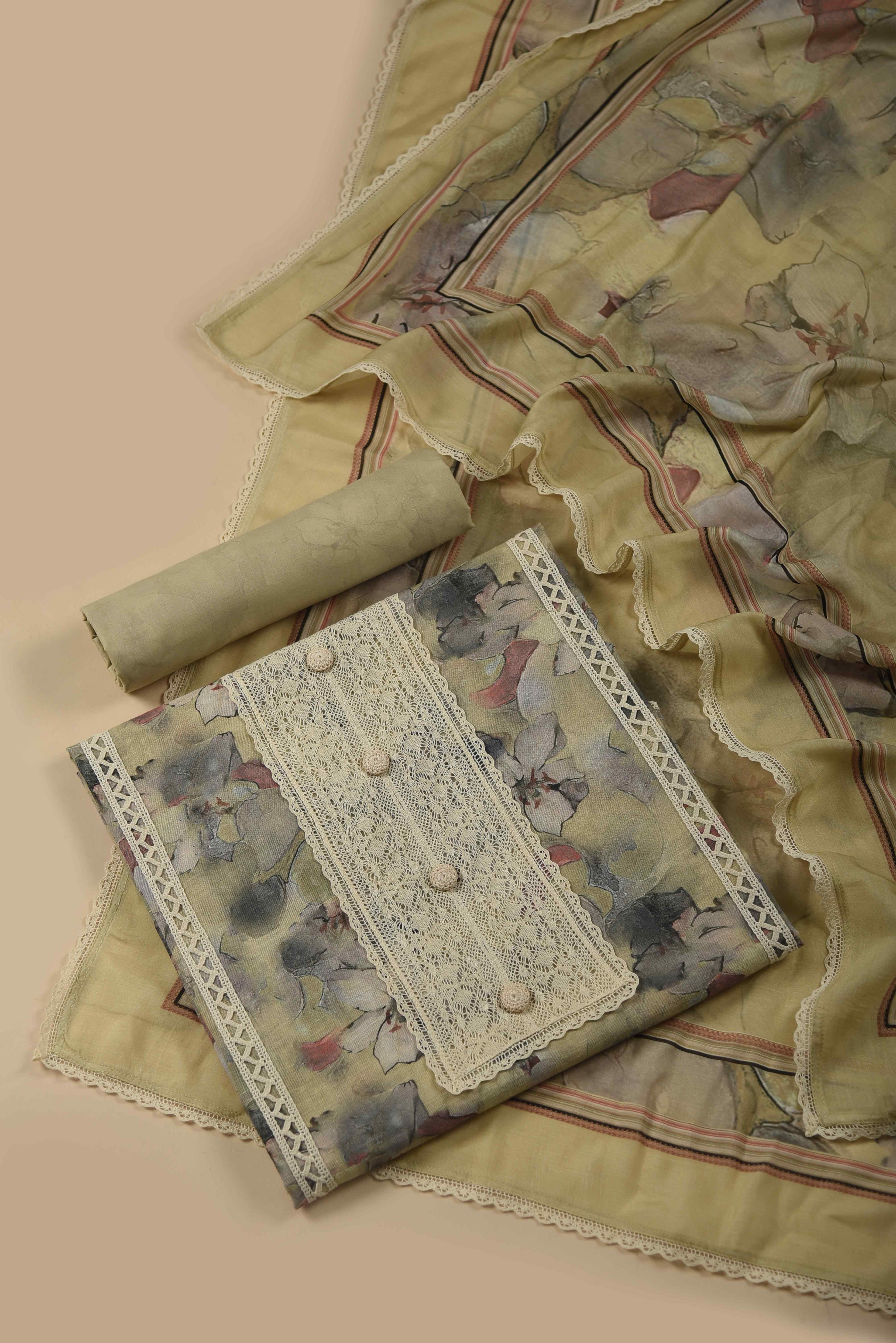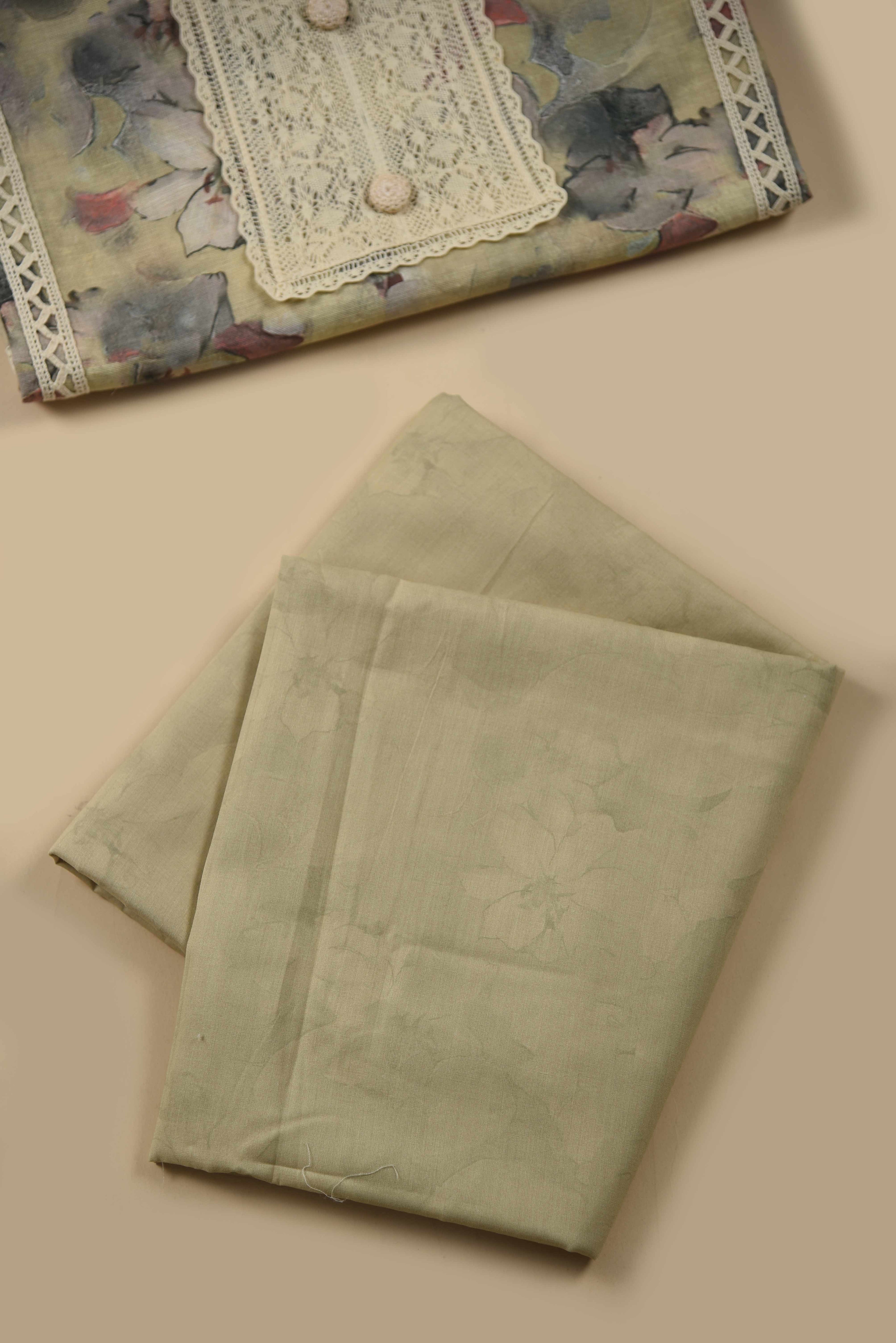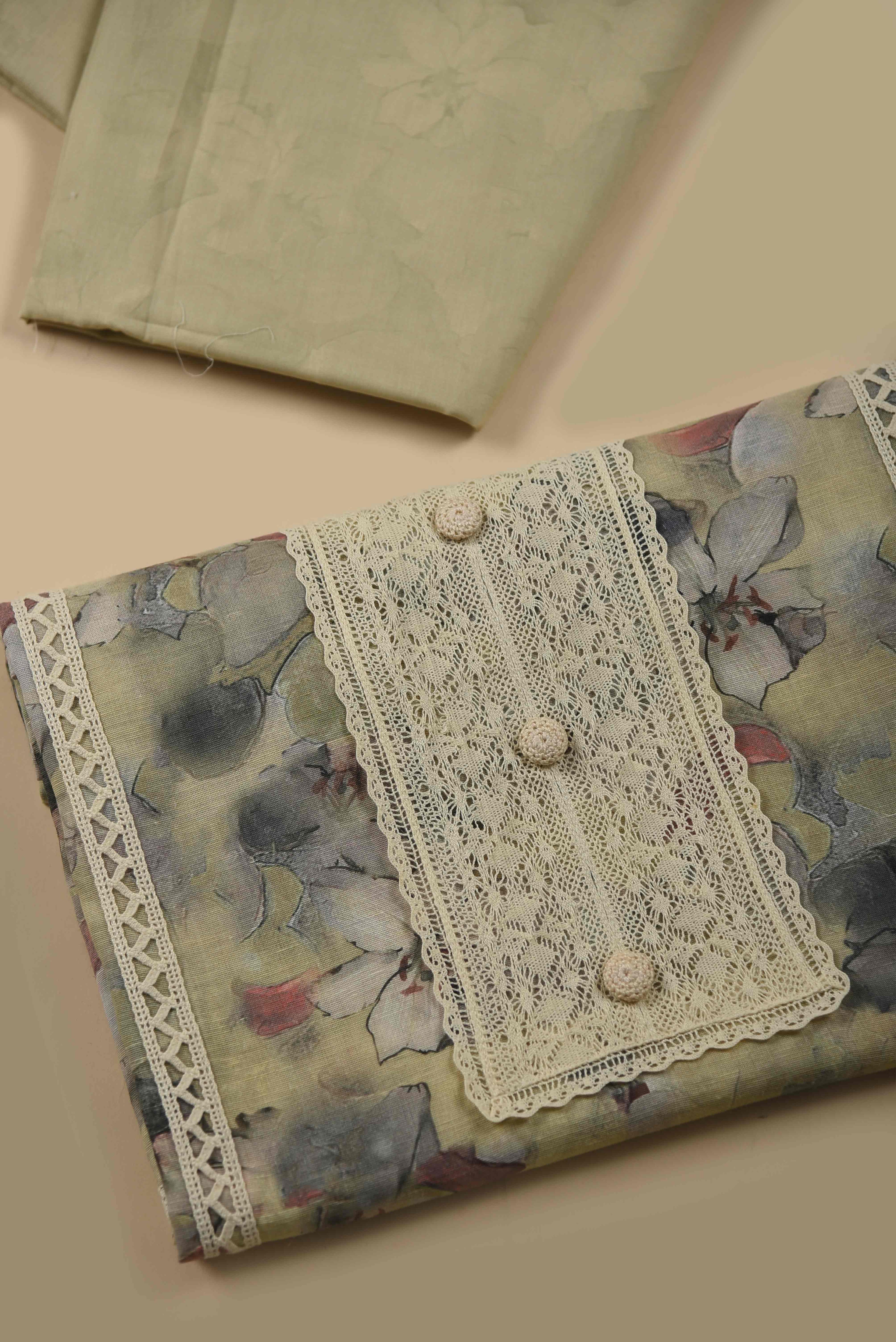 - Step into timeless elegance with this Green Glazed Cotton Printed & Embroidered Unstitched Suit Set, crafted to bring together comfort, style, and sophistication.