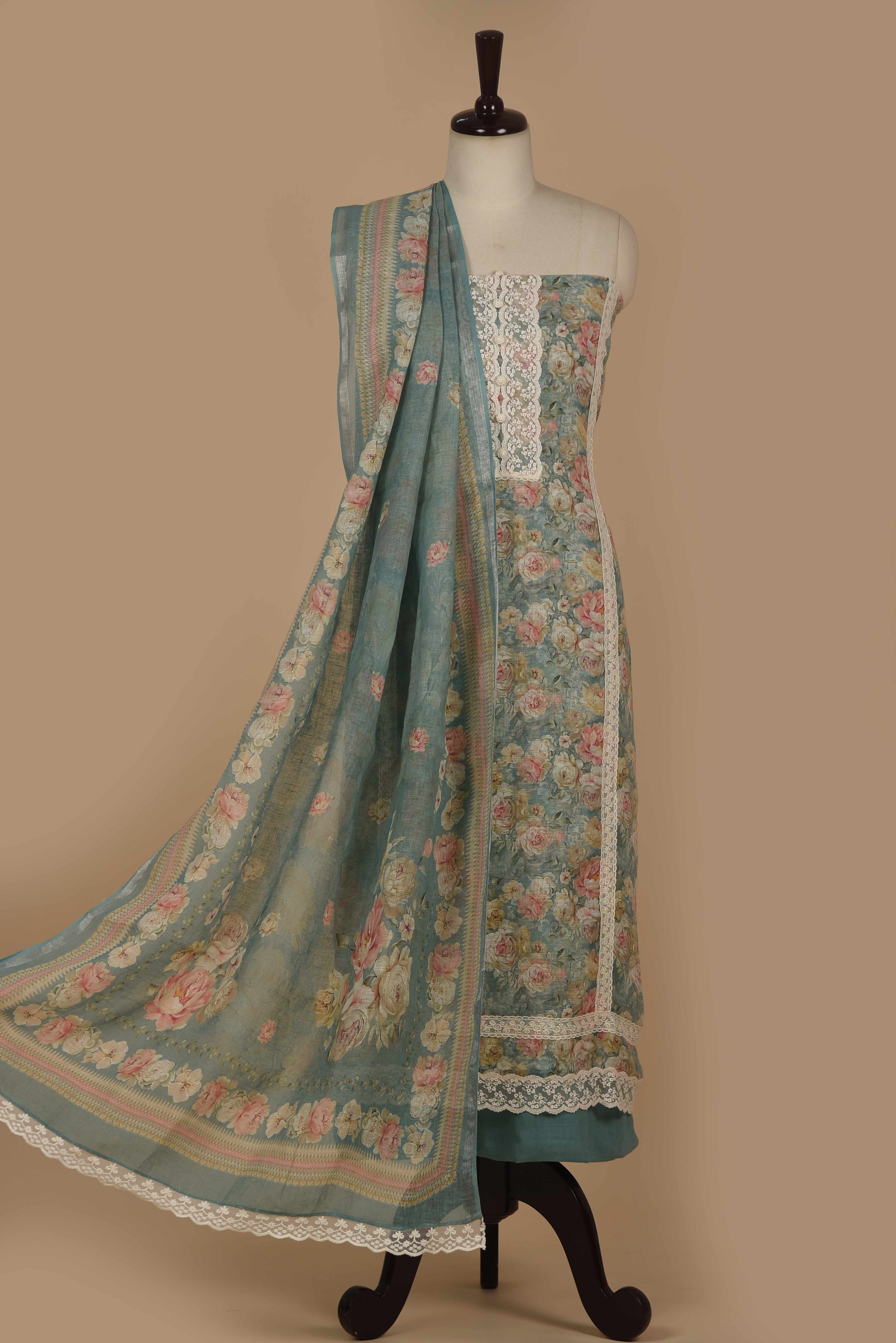 - Embrace soft sophistication with this Green Linen Unstitched Suit Fabric Set, designed to bring effortless elegance to your wardrobe.