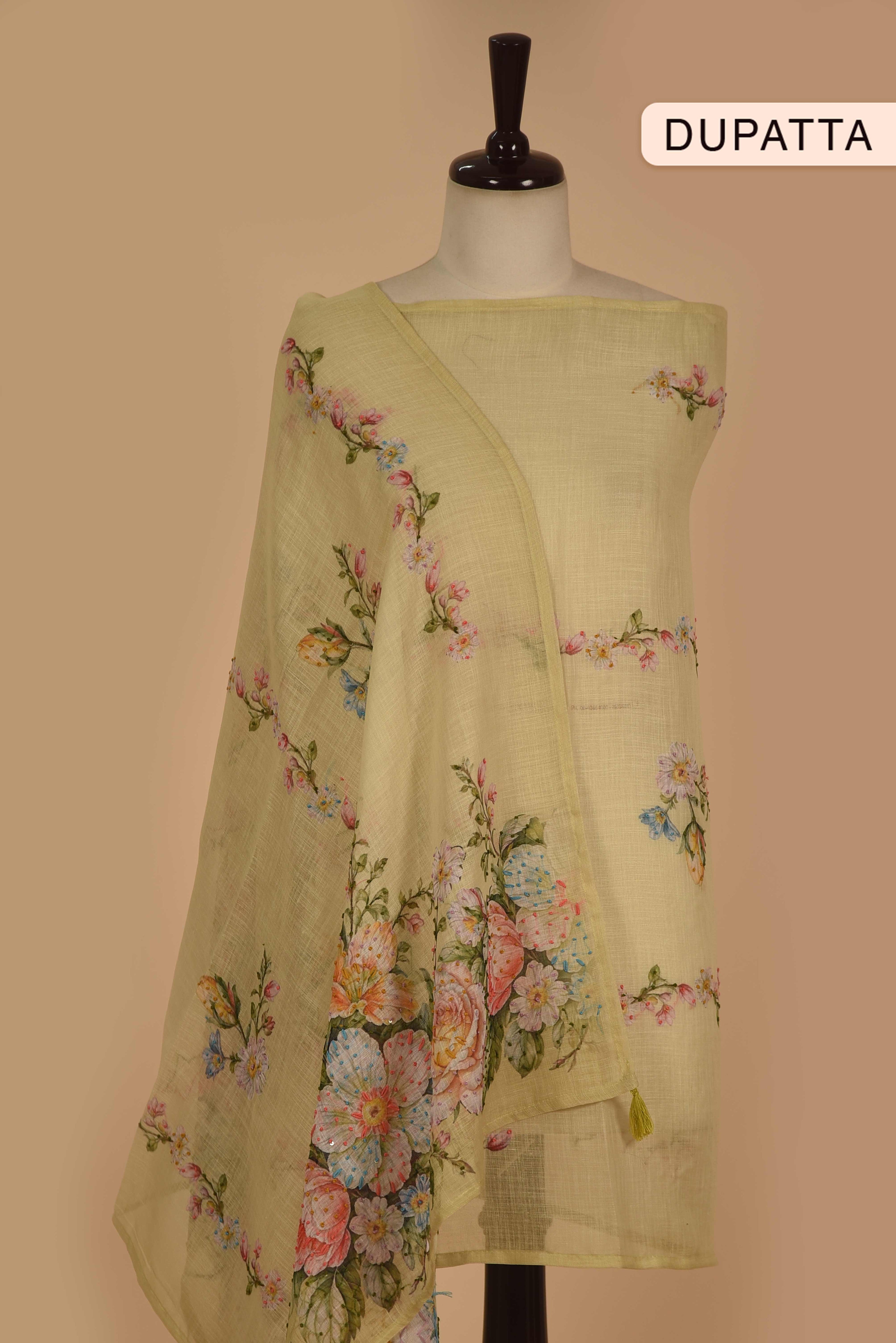 Shirt - Linen Blend, Bottom - Cotton, Dupatta - Linen Blend |