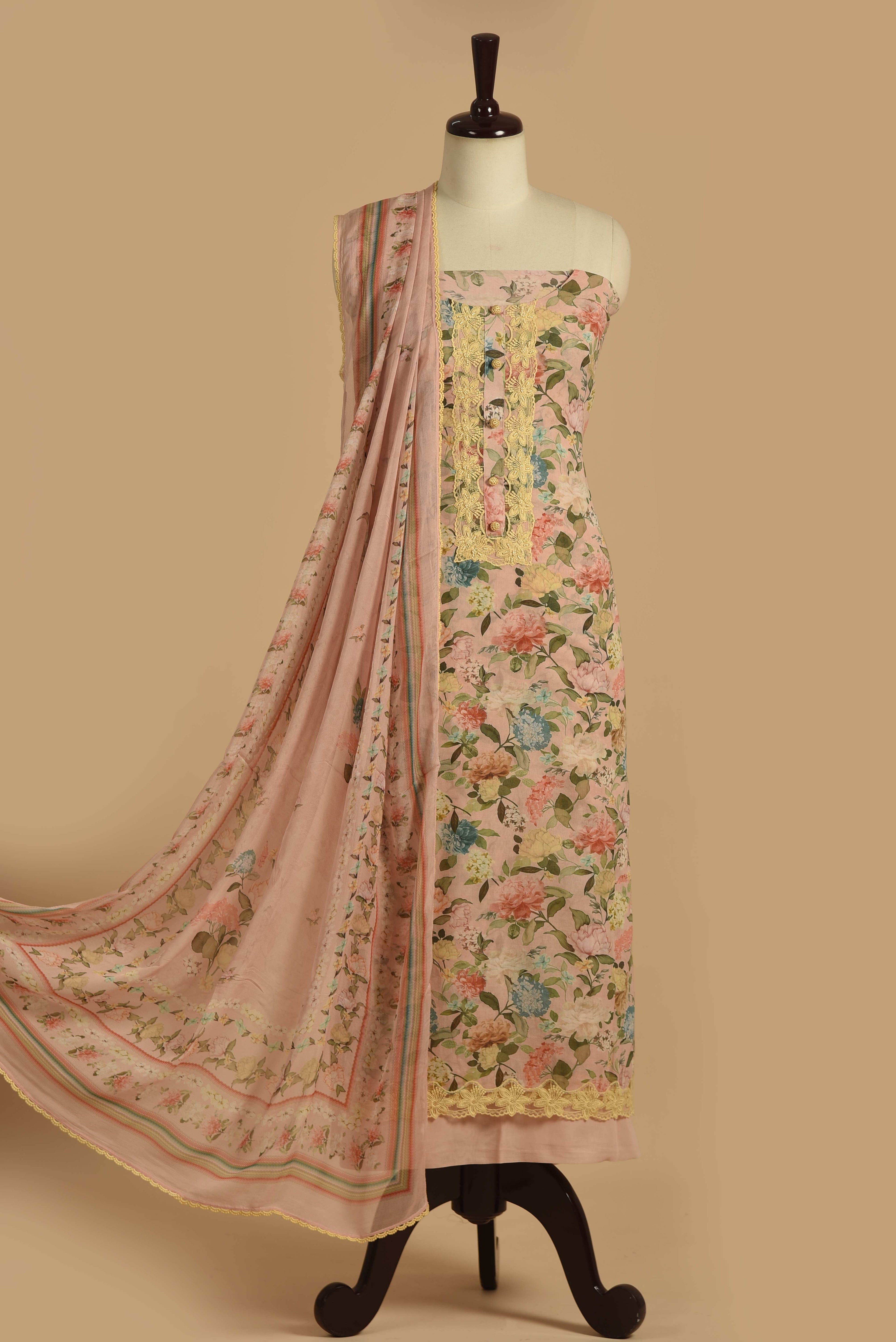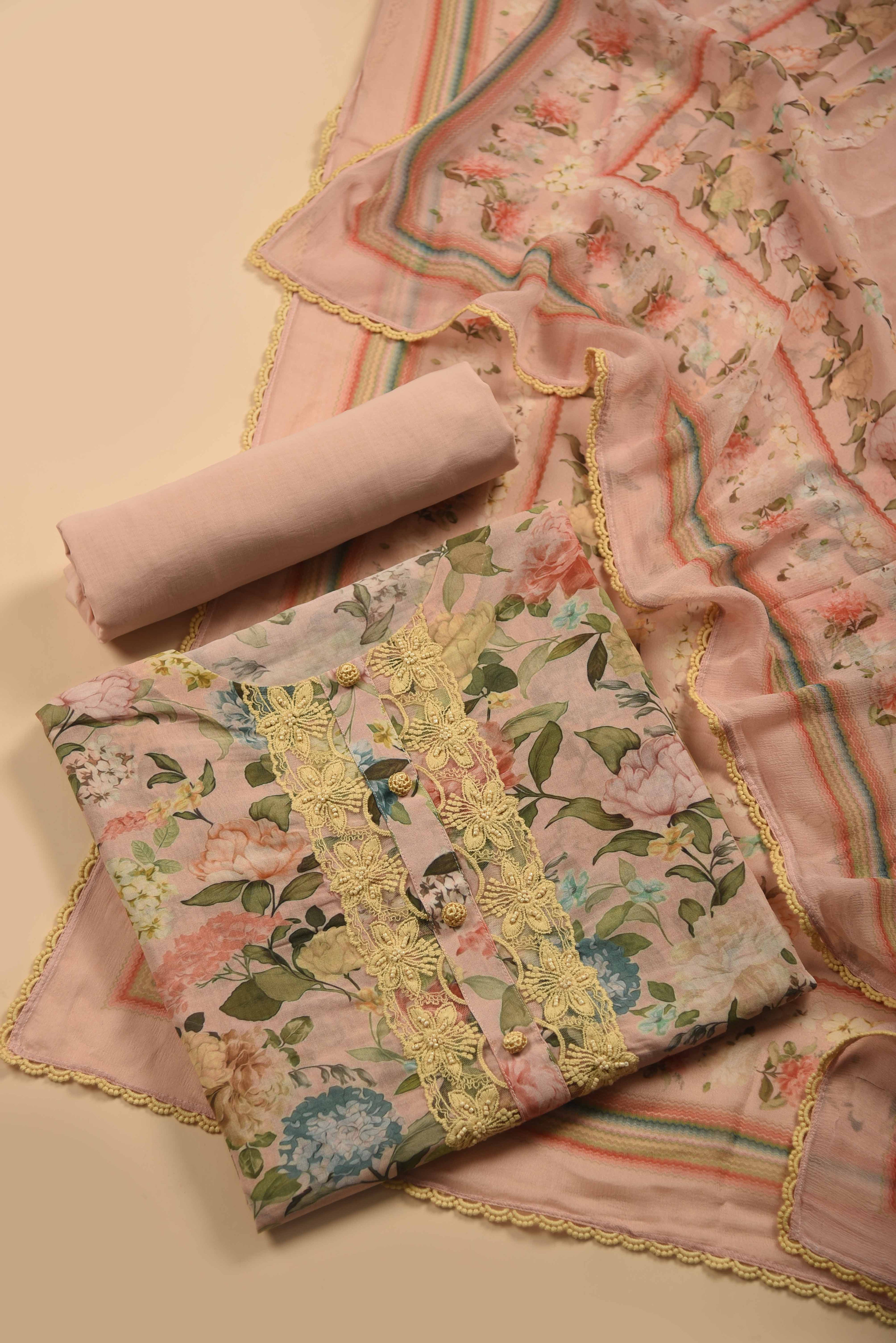Light Pink Fine 2×2 Rubia Digital Printed Unstitched Suit Fabric Set With Chiffon Digital Printed Dupatta