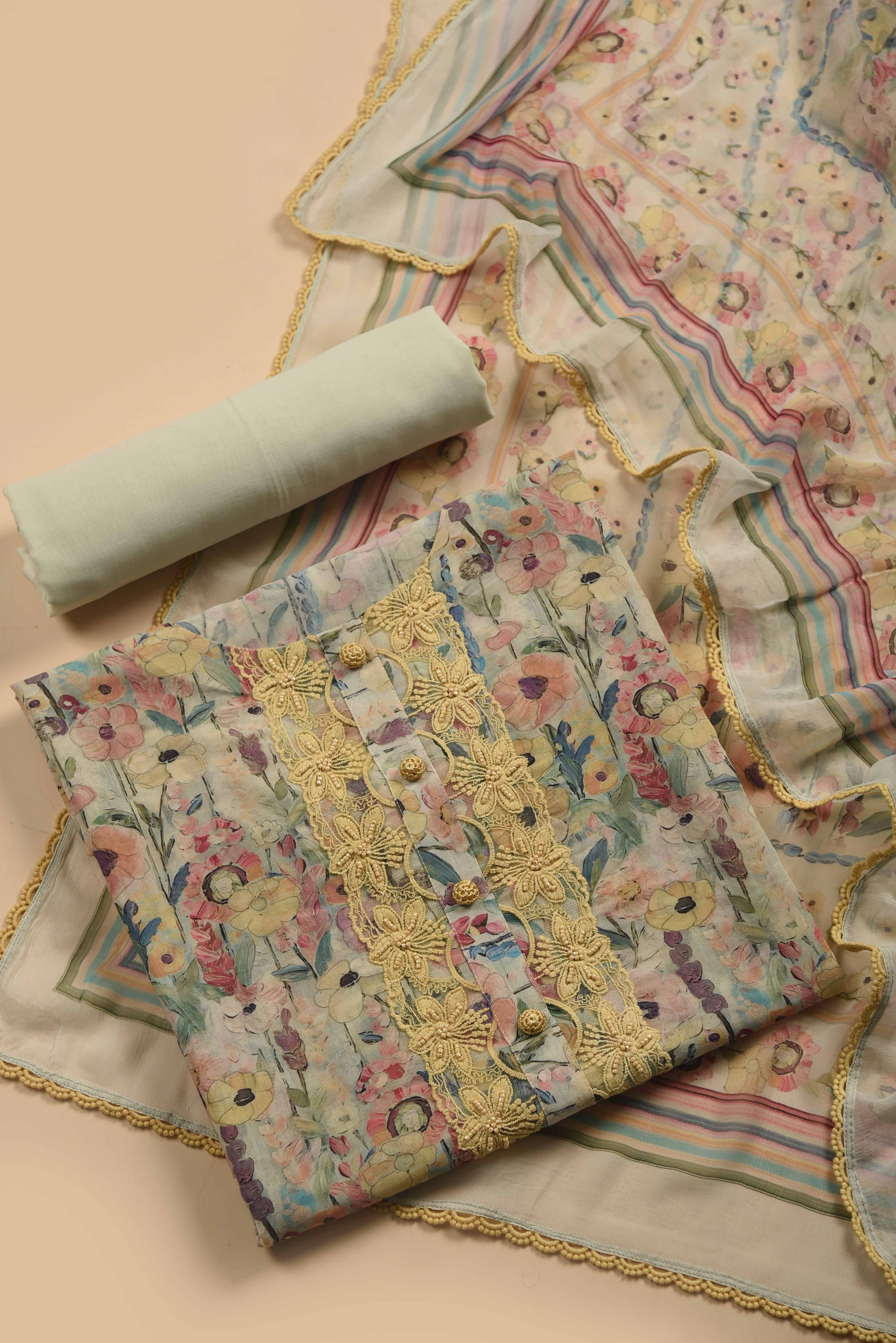 Shirt Fabric - 2.40 Mtr, Bottom - 2.40 Mtr, Dupatta - 2.30 Mtr |