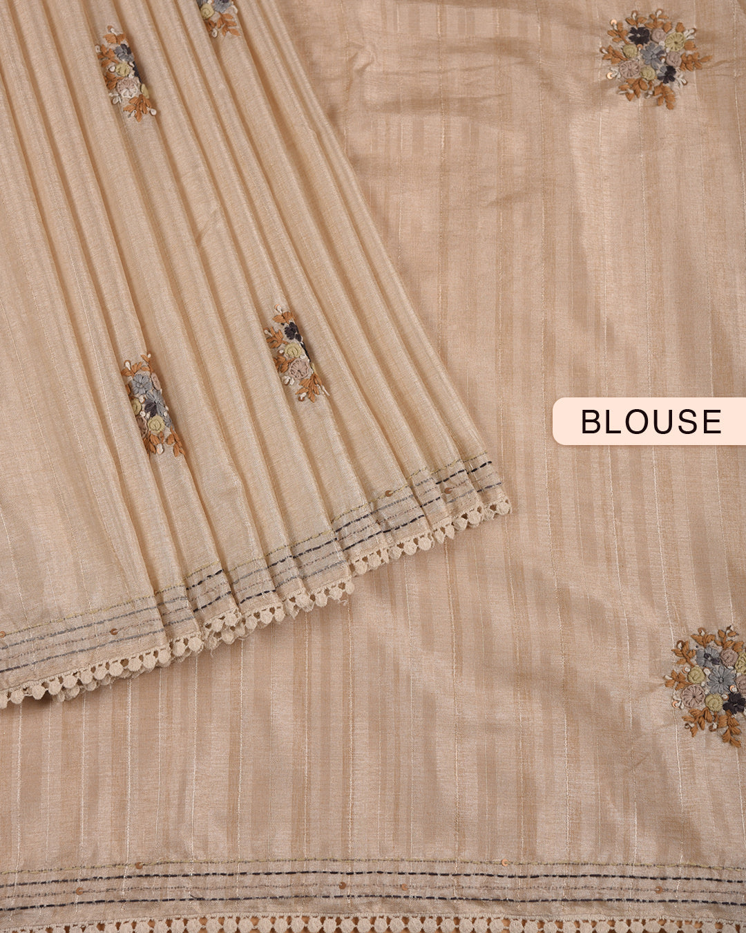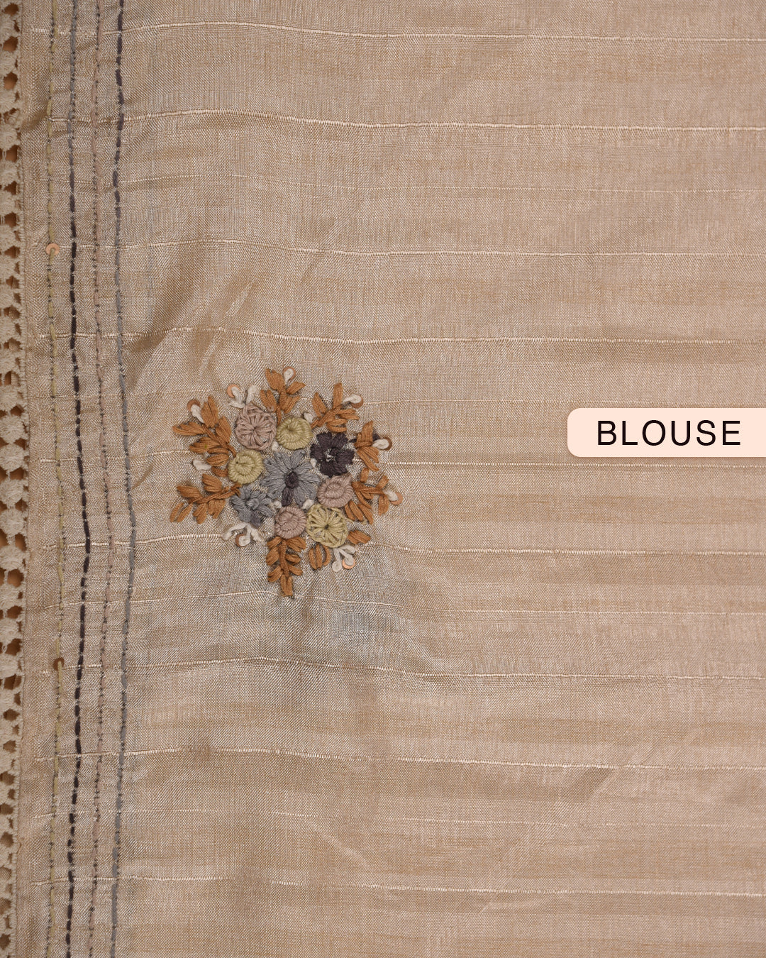 Complete the look with the cream cotton silk textured blouse.