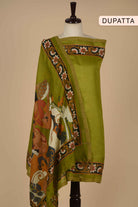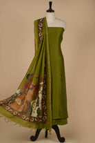 Green Chanderi Silk Woven Unstitched Suit Fabric Set With Chanderi Silk Printed Dupatta