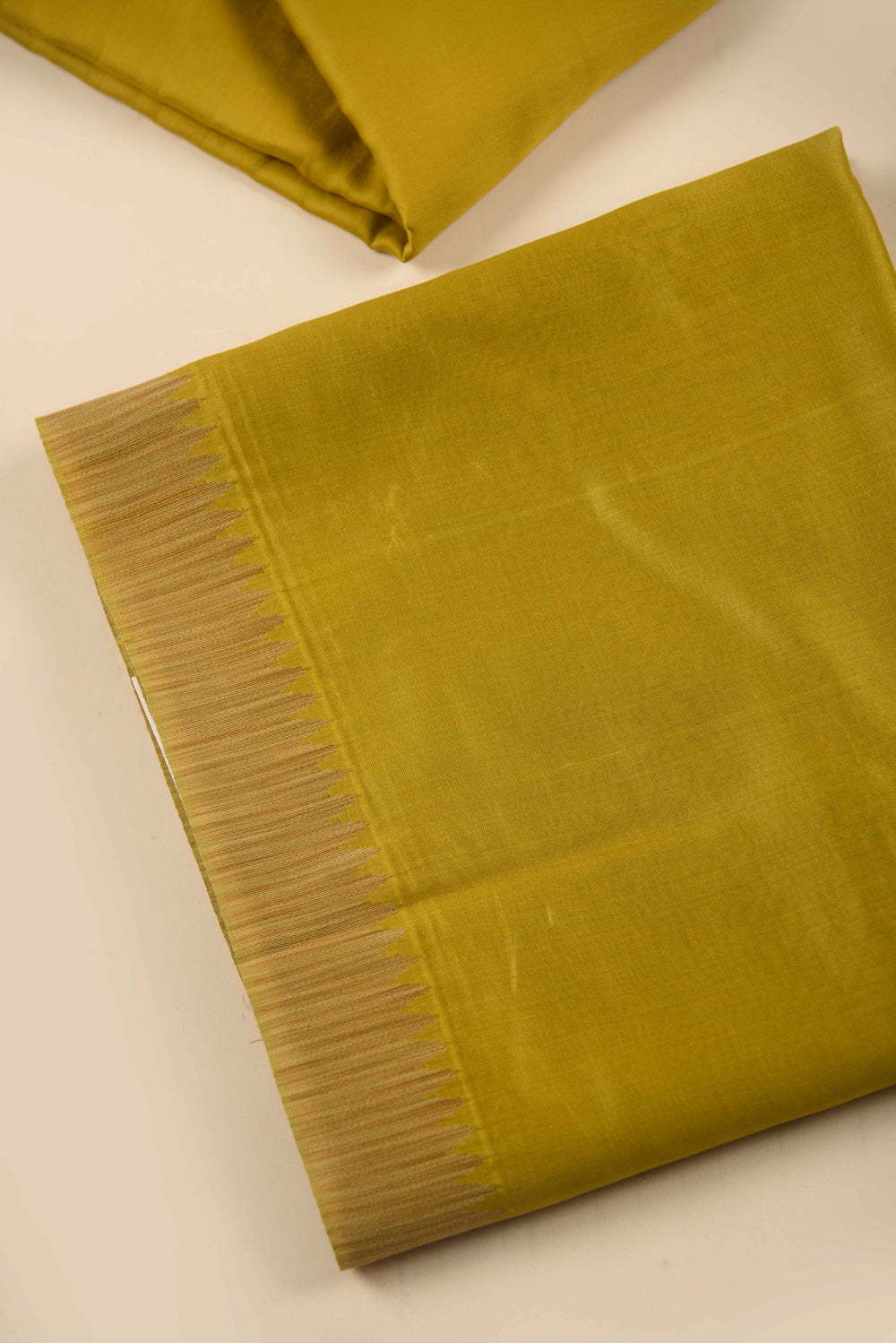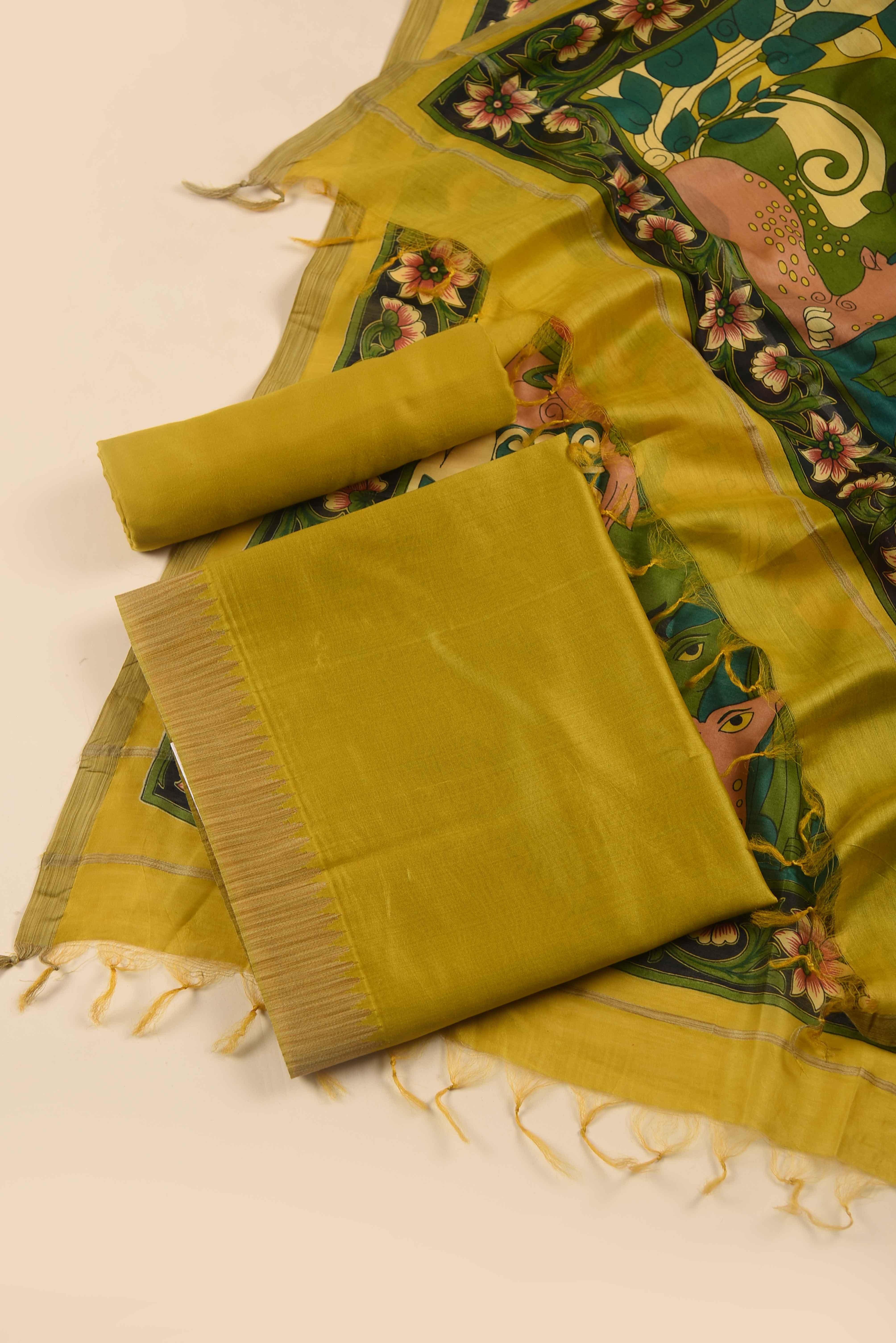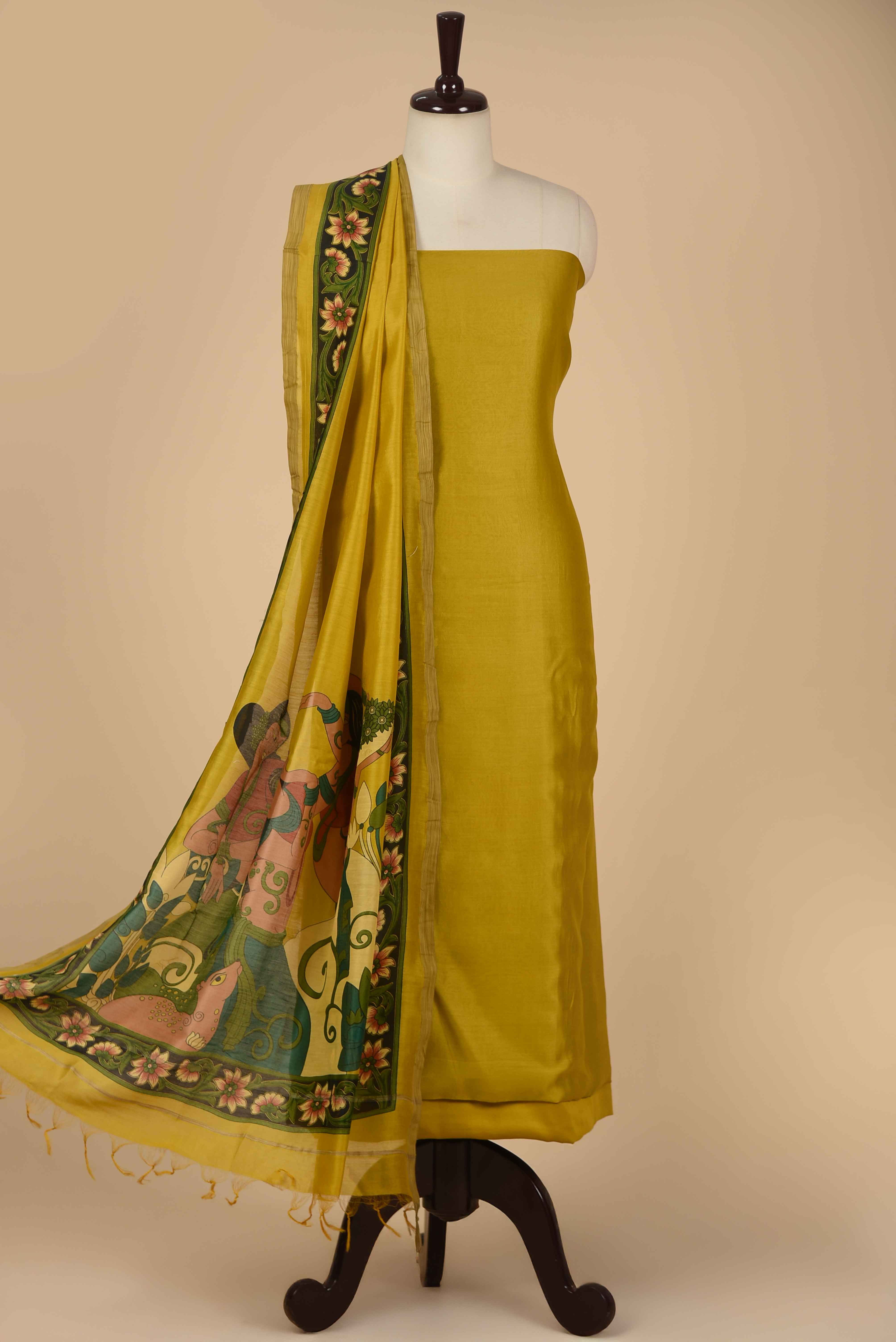 Mustard Chanderi Silk Woven Unstitched Suit Fabric Set With Chanderi Silk Printed Dupatta
