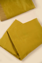 Embrace sophisticated elegance with this premium Mustard Chanderi Silk unstitched suit set, a masterpiece of traditional Indian weaving.