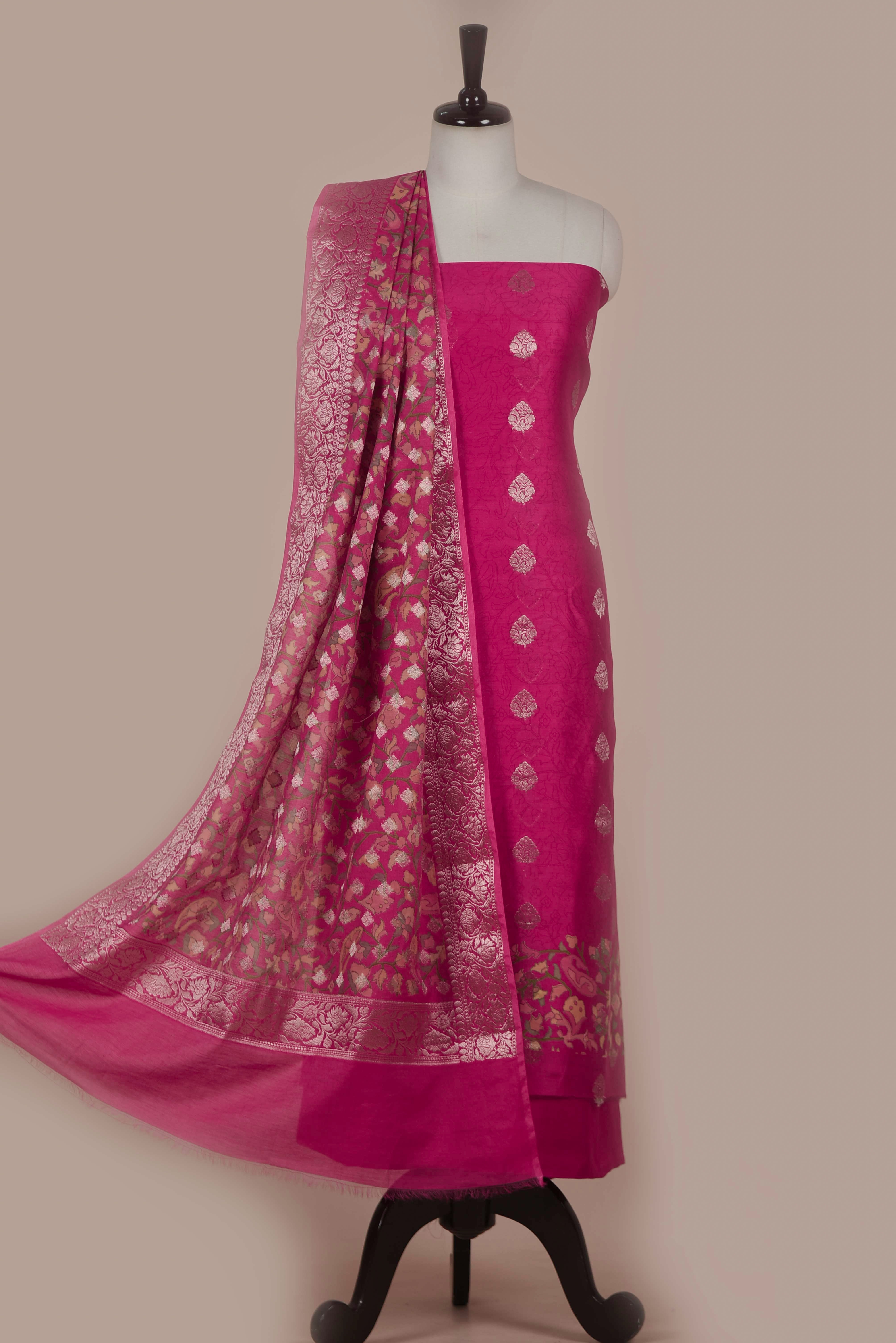 Pink Chanderi Silk Printed With Woven Unstitched Suit Fabric Set with Chanderi Printed With Woven Dupatta