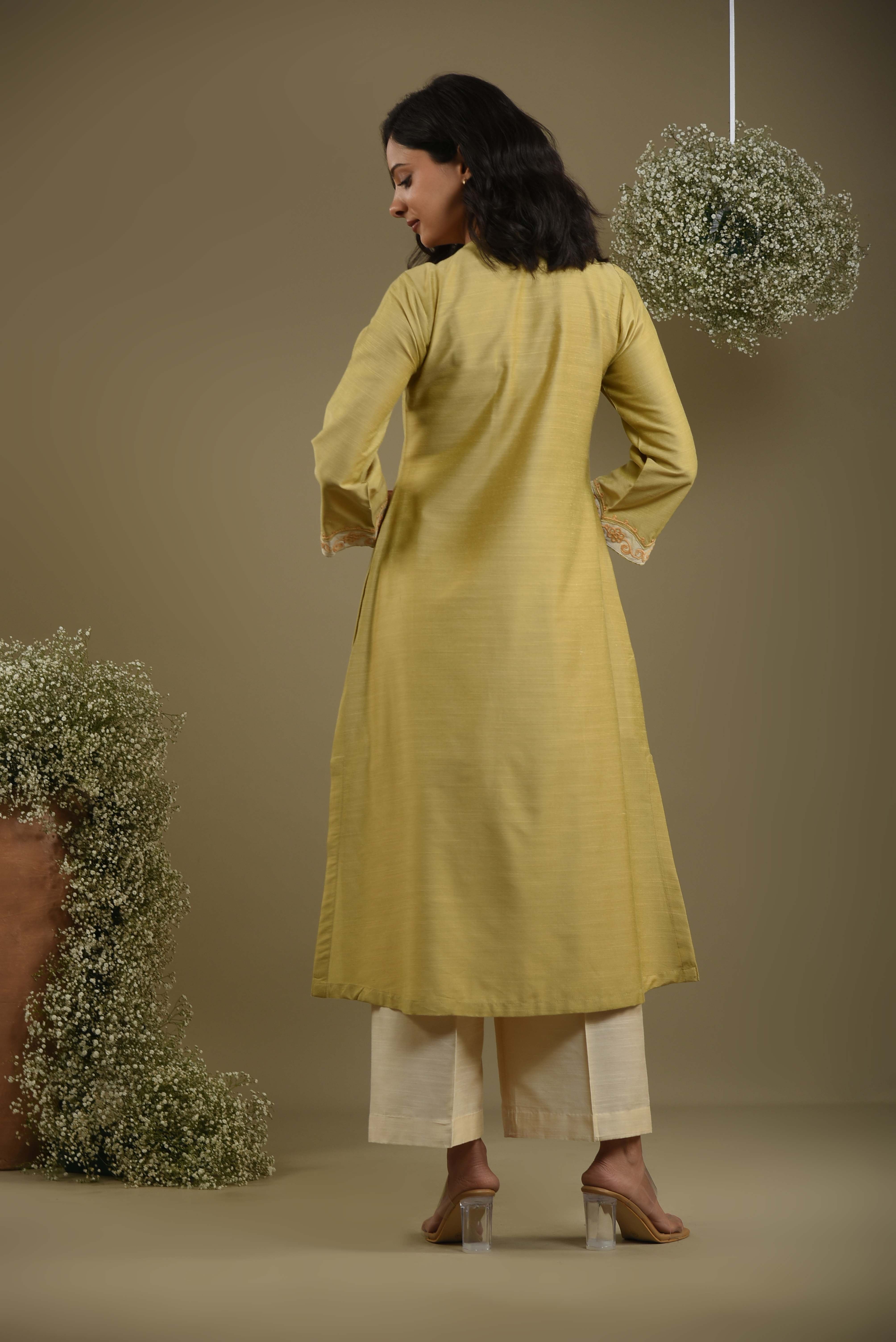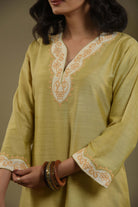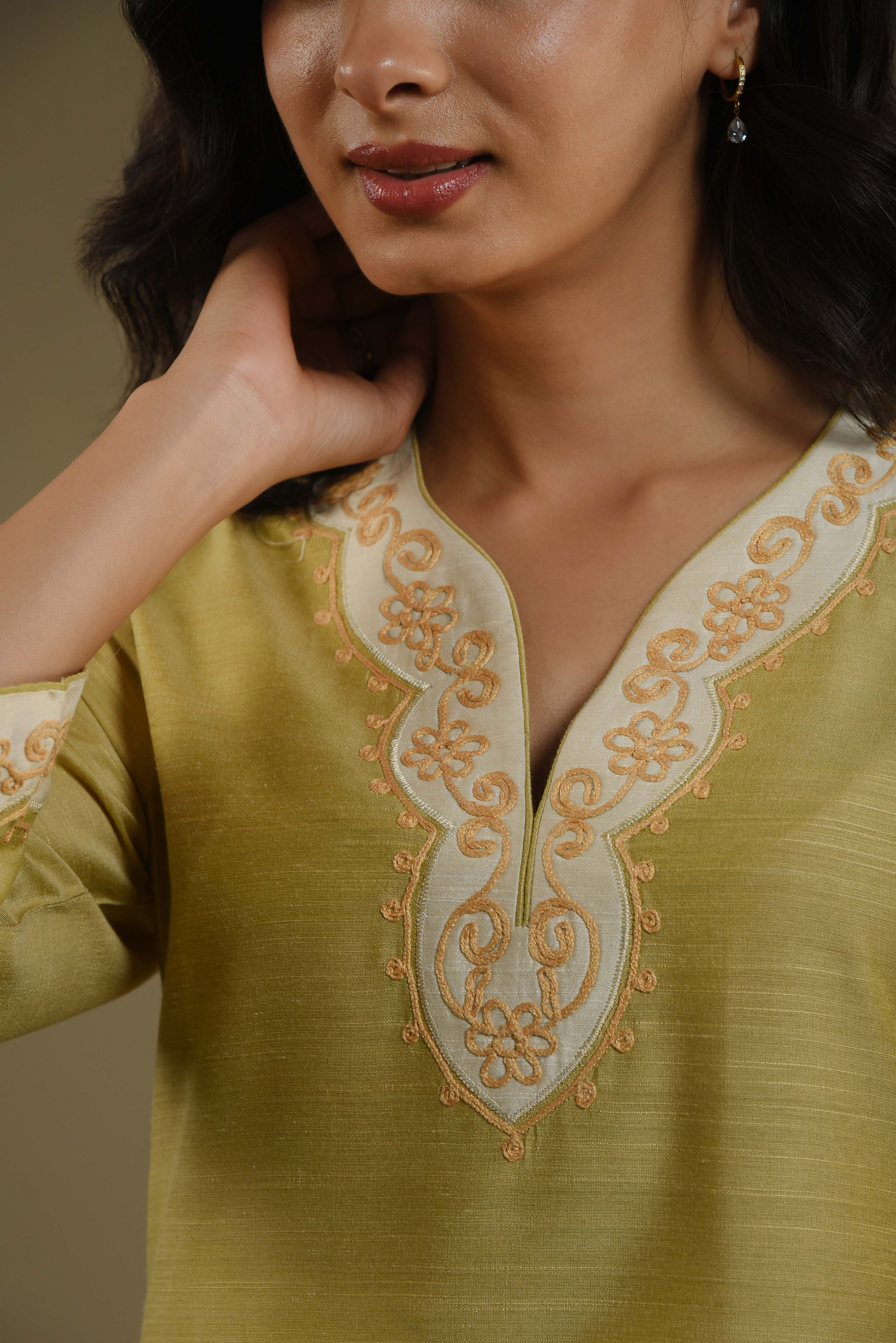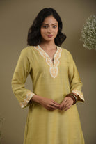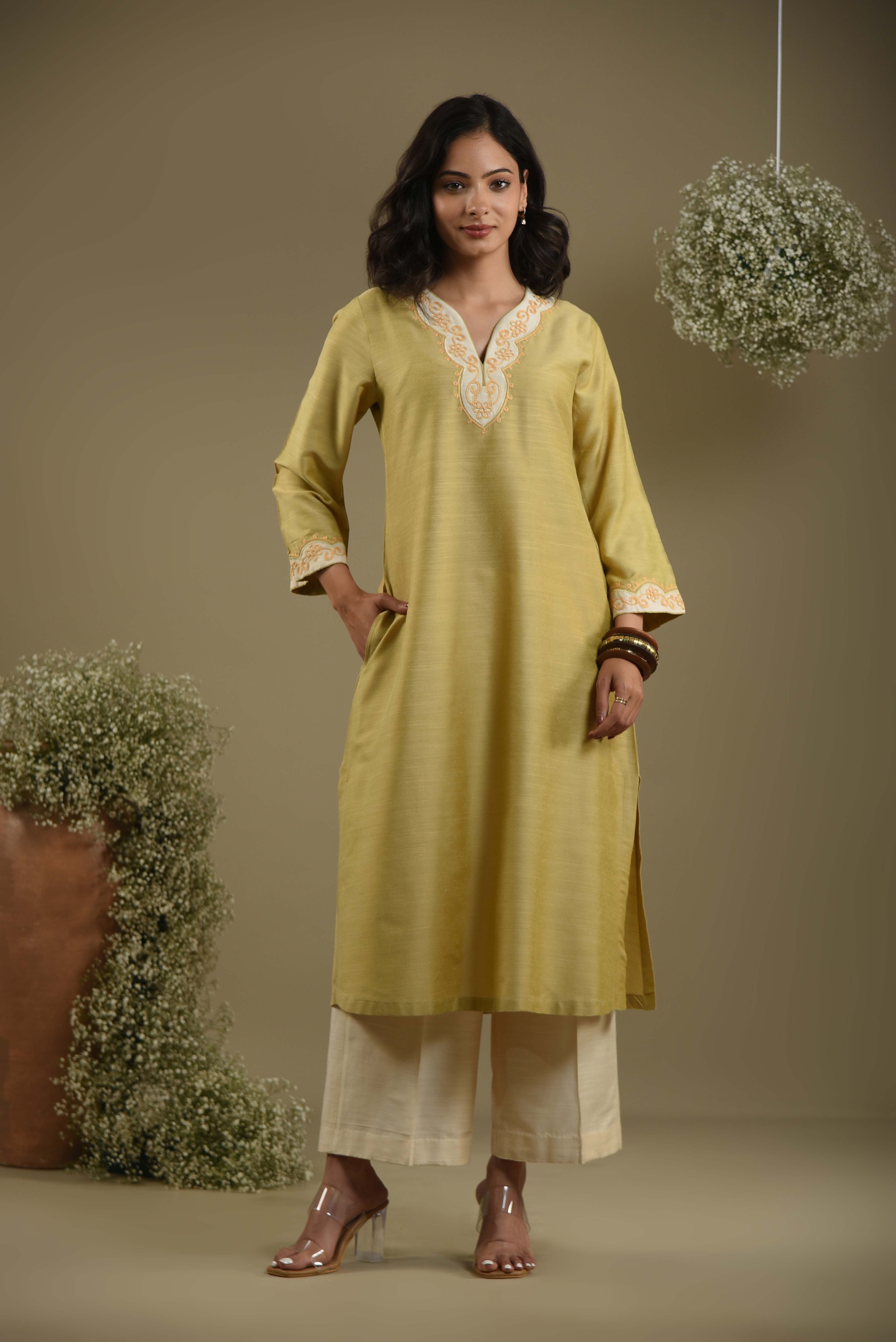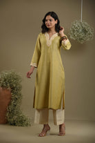 - Crafted from soft green fine cotton silk fabric, this occasion-ready regular fit kurta set beautifully blends elegance and comfort.
