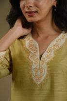 Soft Green And Cream Cotton Silk With Dori Work Kurta Set With Culotte Pants - Regular Fit