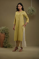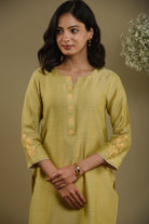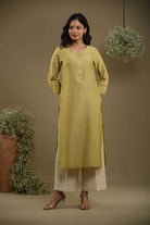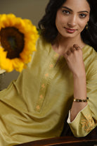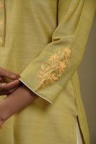 - Crafted in soft green cotton silk, this regular-fit kurta set exudes understated occasion wear elegance.