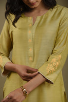 Soft Green Cotton Silk With Floral Dori Work Kurta Set With Culotte Pants - Regular Fit