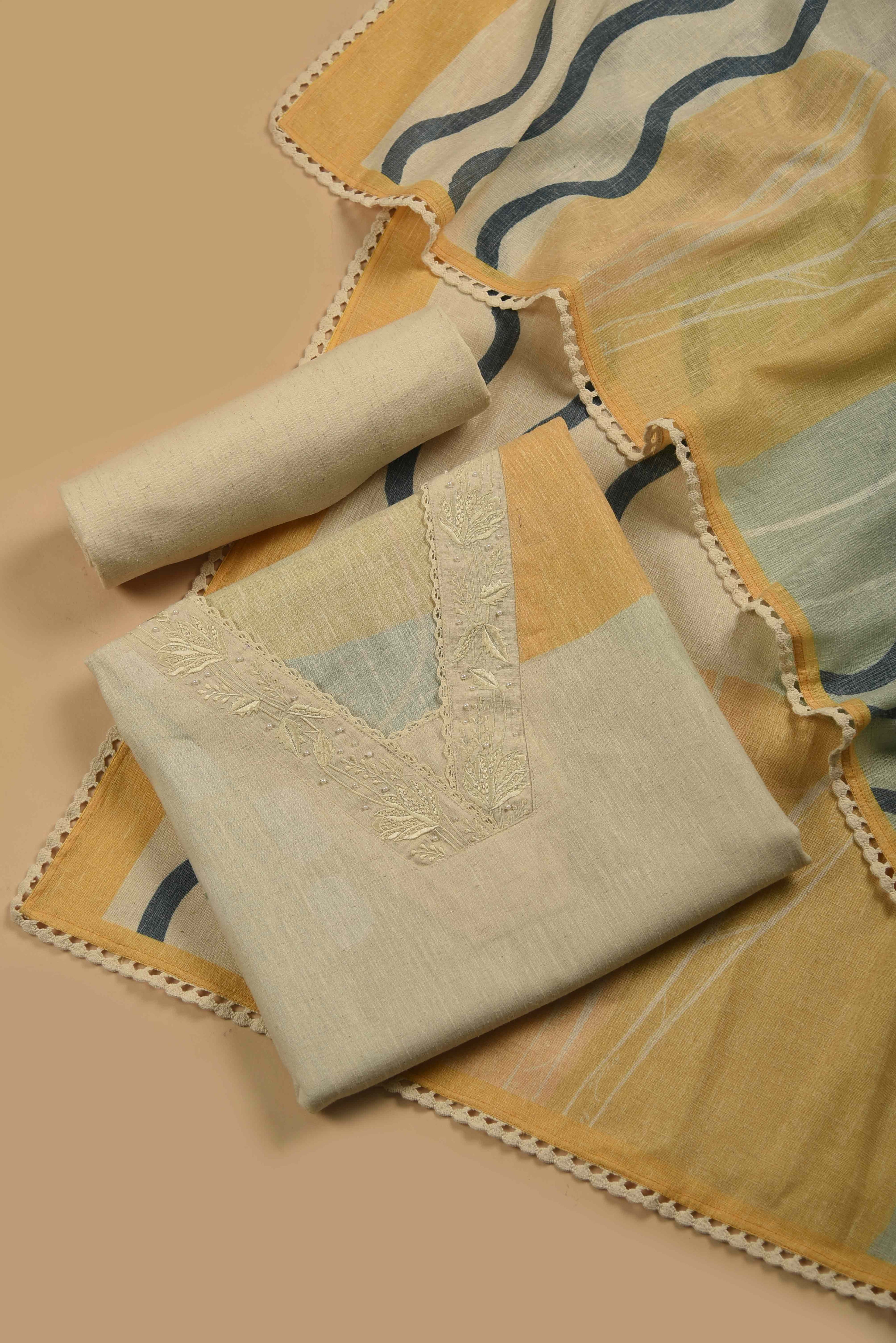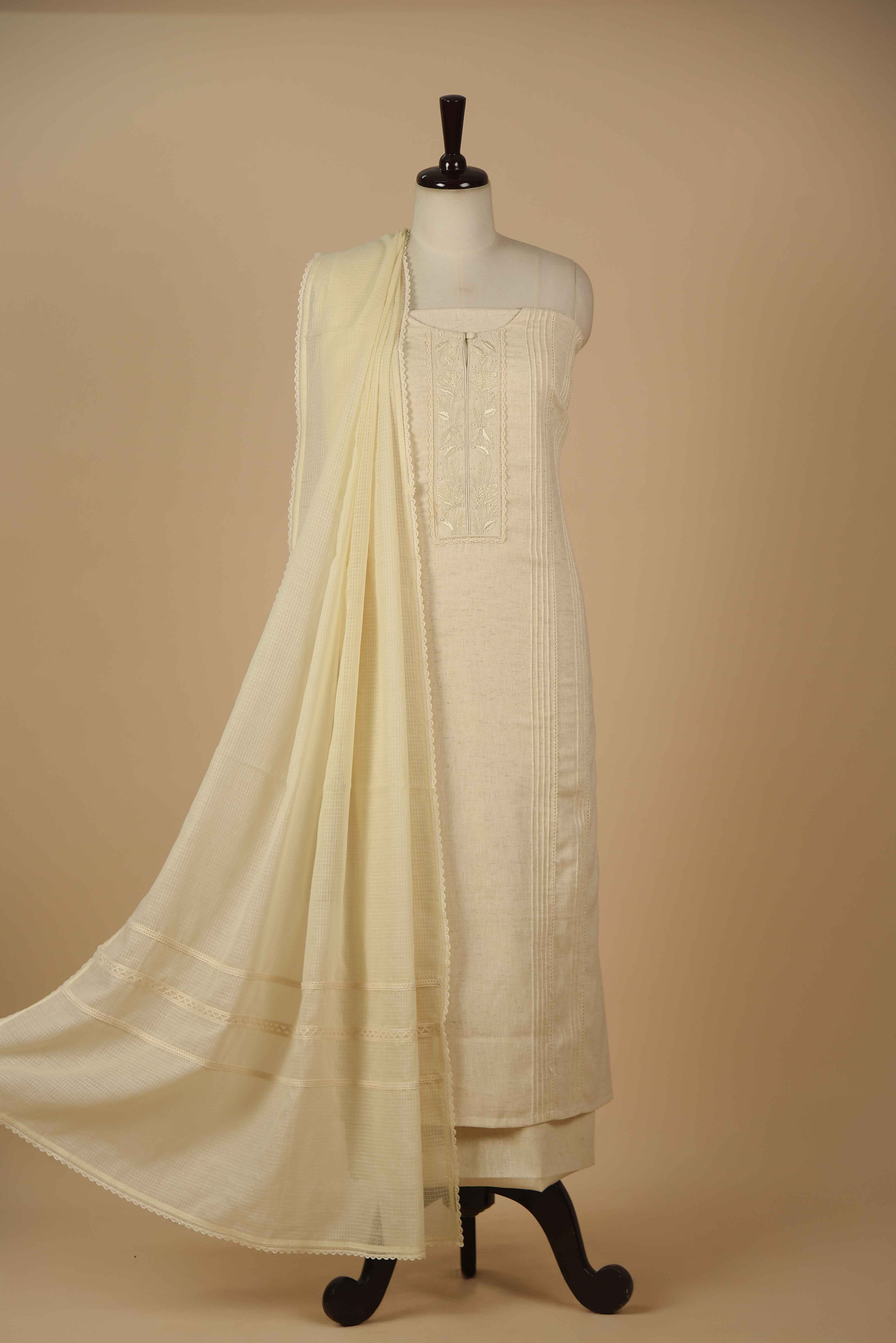 Red Mul chanderi Embroidered Unstitched Suit Fabric Set With Mul Chanderi Embroidered Dupatta