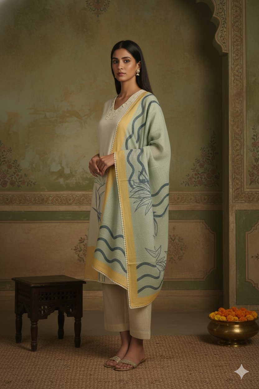 Brown Winter Wear Wool Spun Blend Tribal Embroidered Co-ord Set-Regular Fit