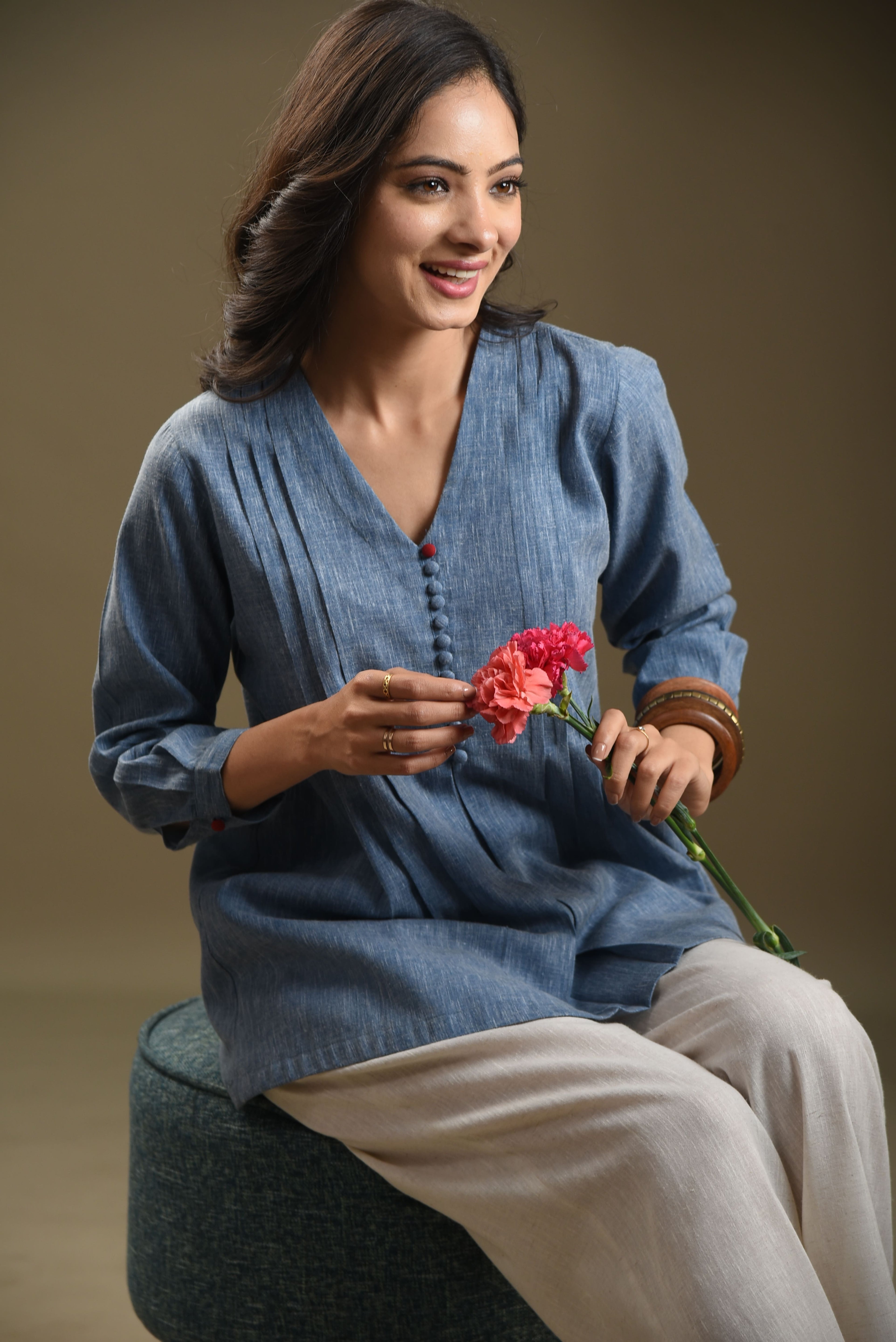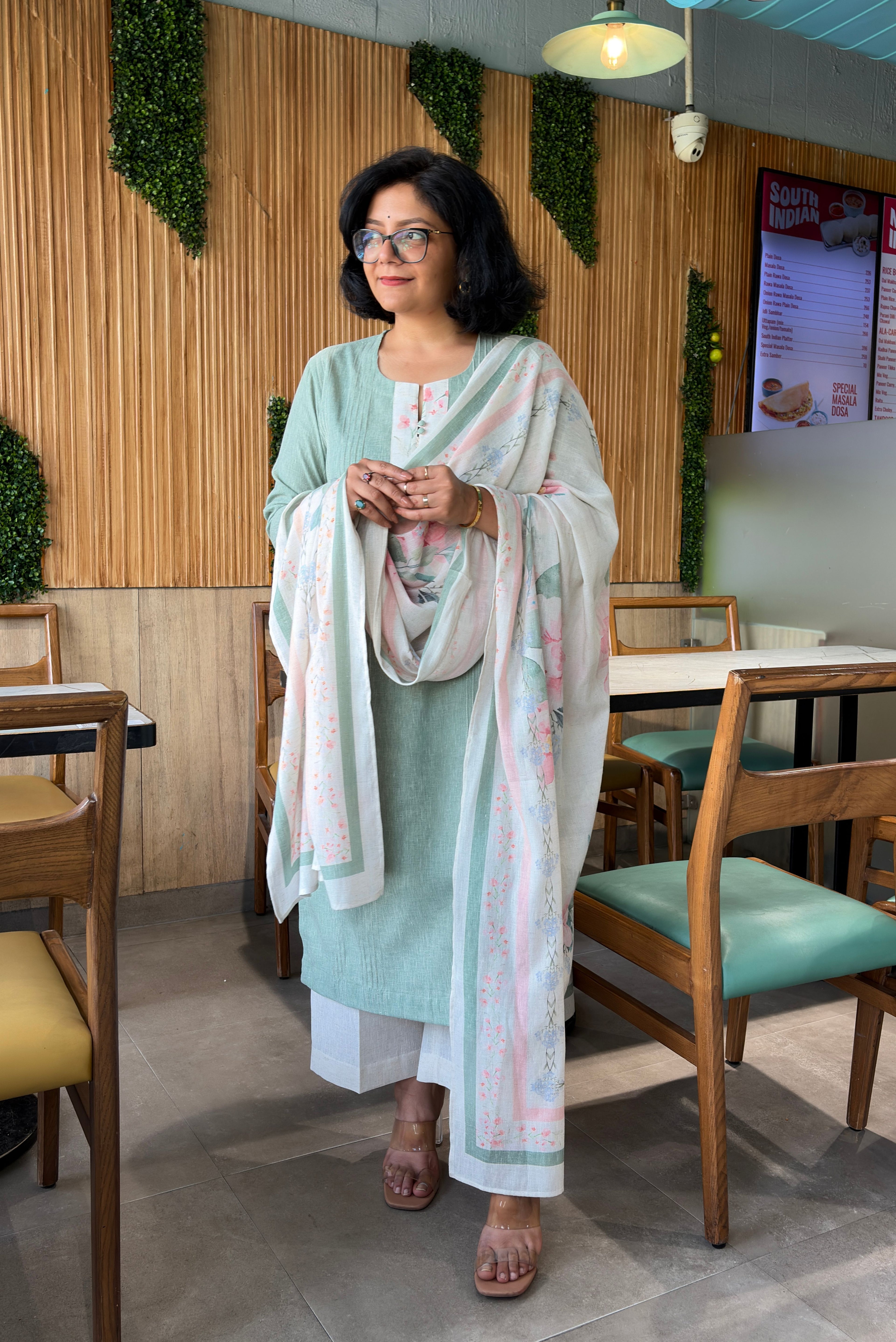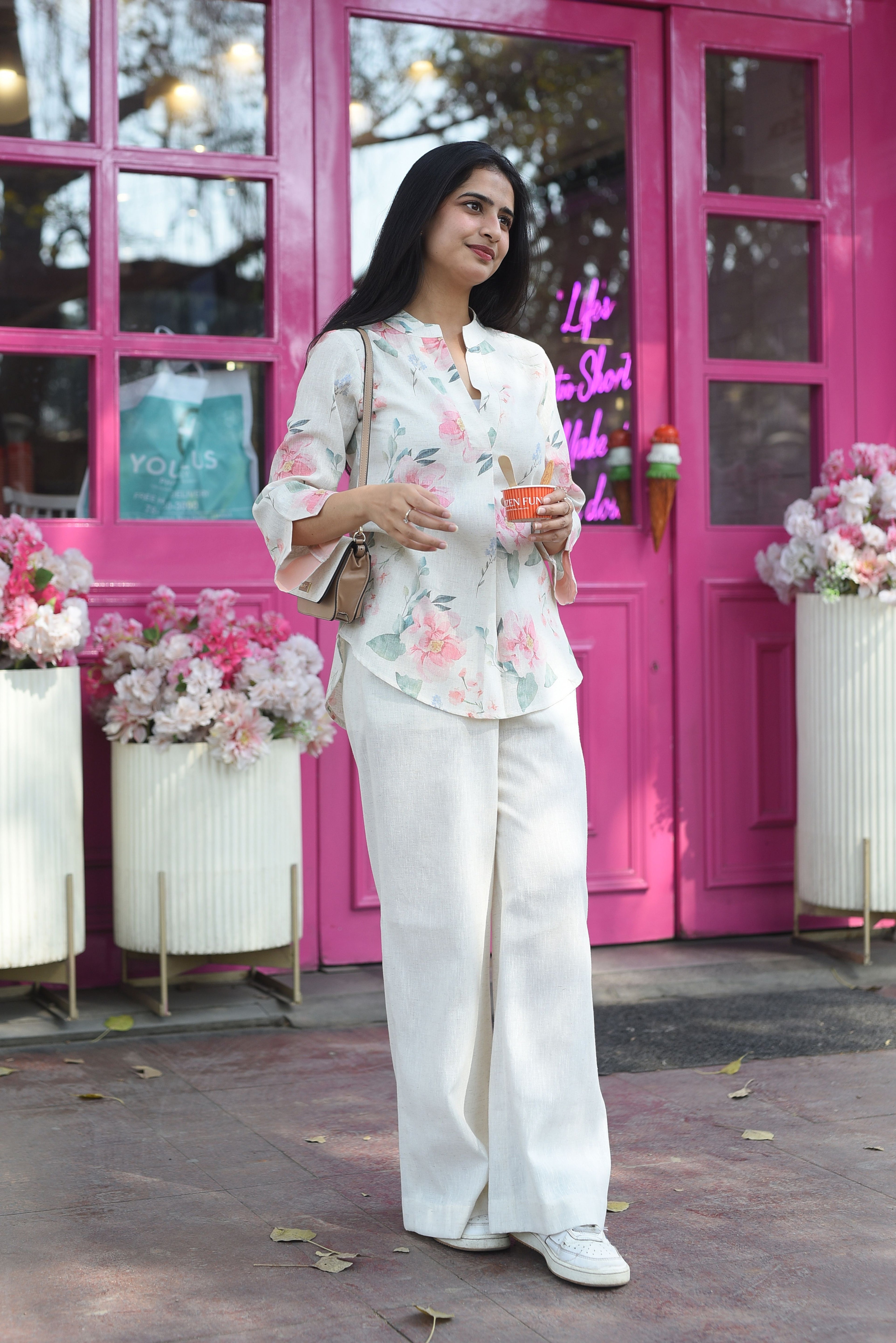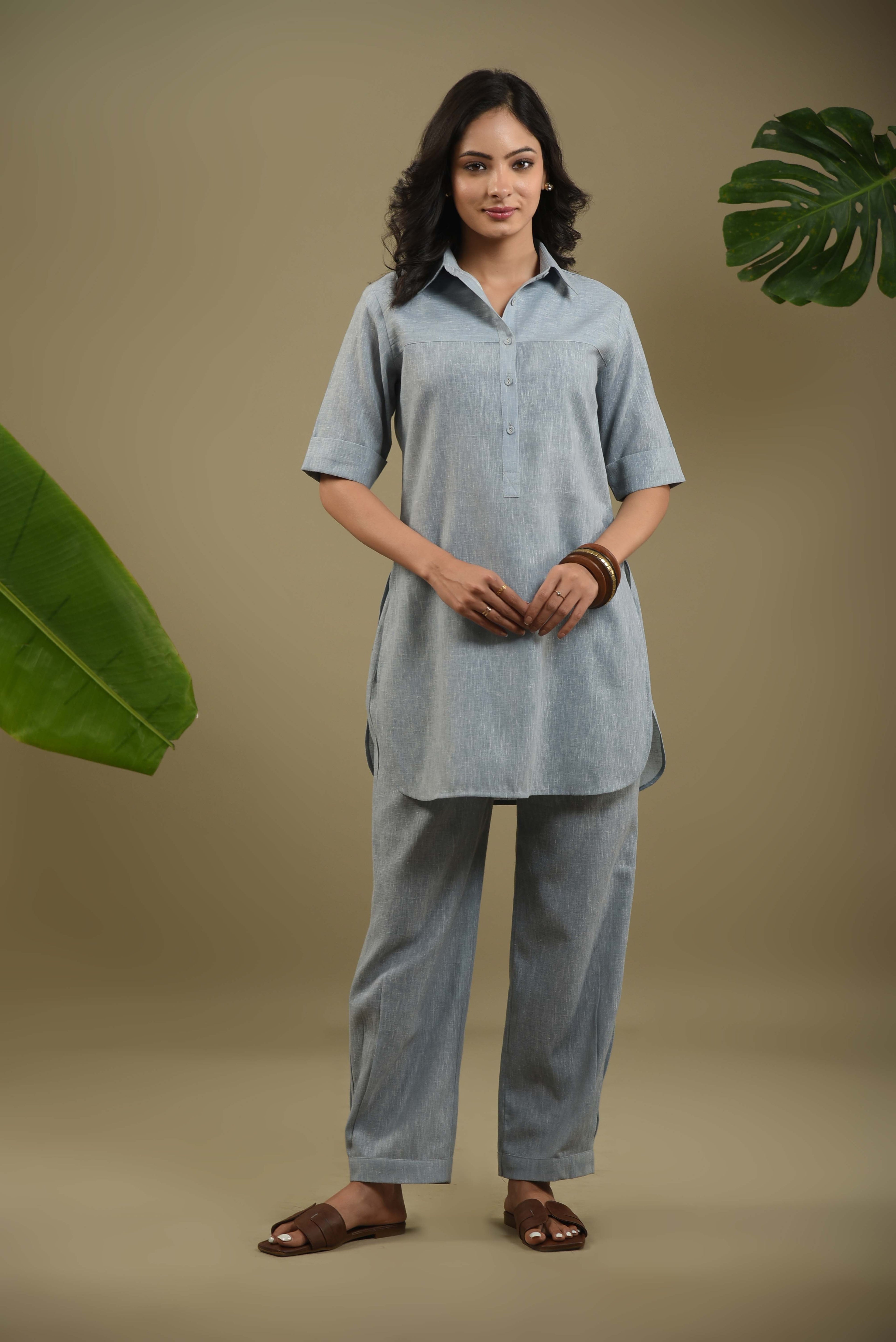 this set transitions so effortlessly — wore it for back to back meetings all day then straight to a casual dinner, just changed accessories. cotton woven fabric kept its crisp look the entire time which is honestly impressive. culottes are so comfortable that i forgot i was in ethnic wear most of the day.