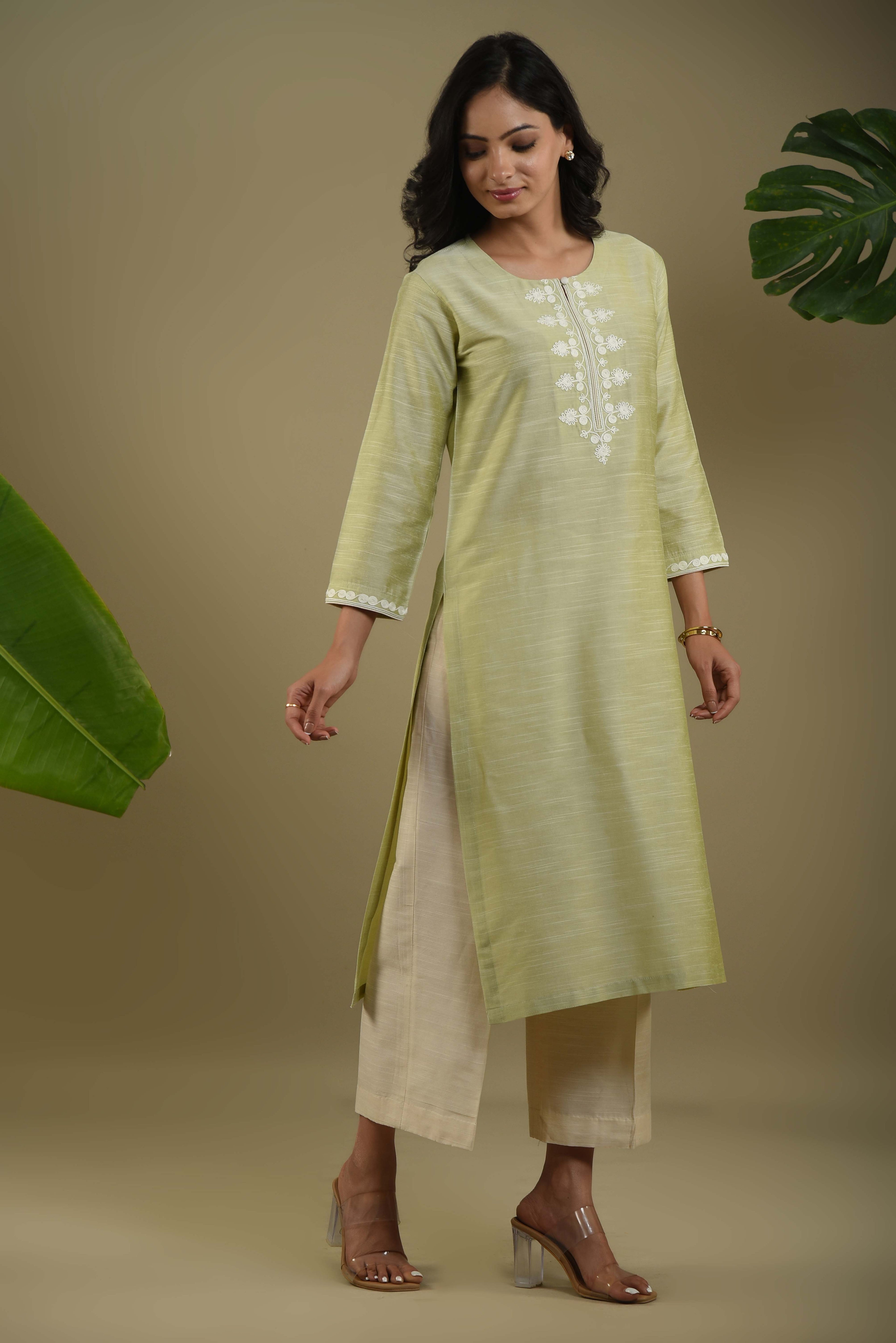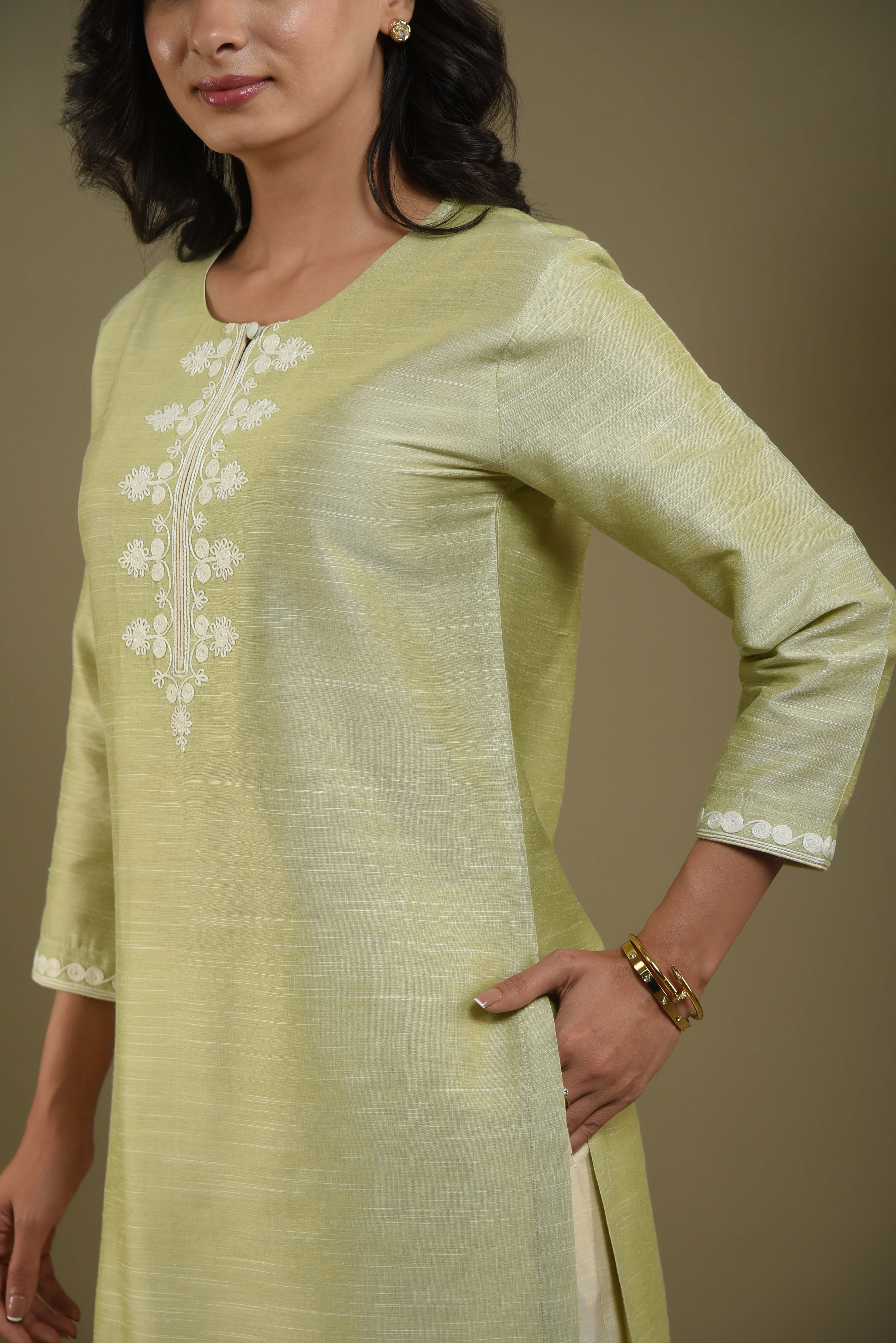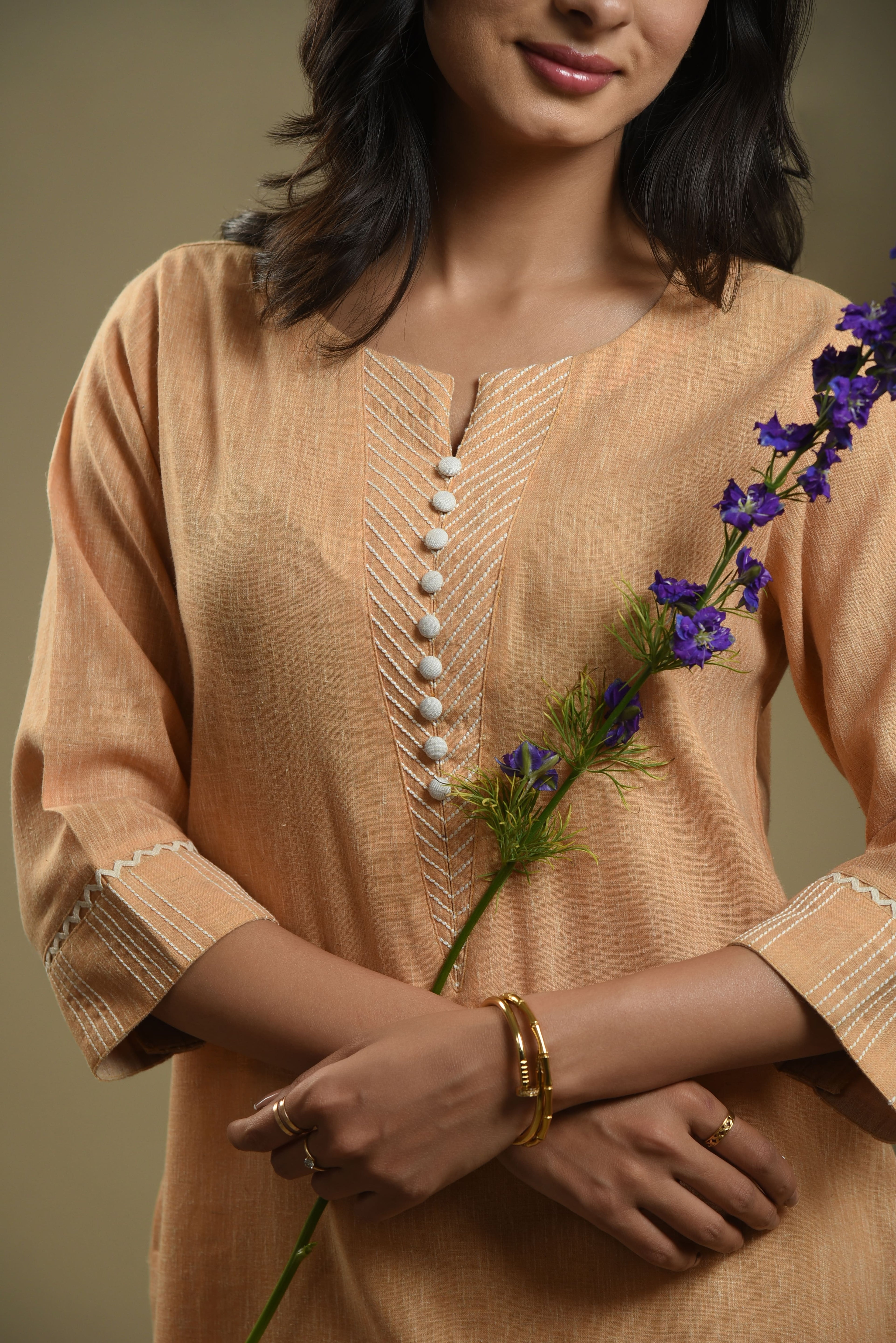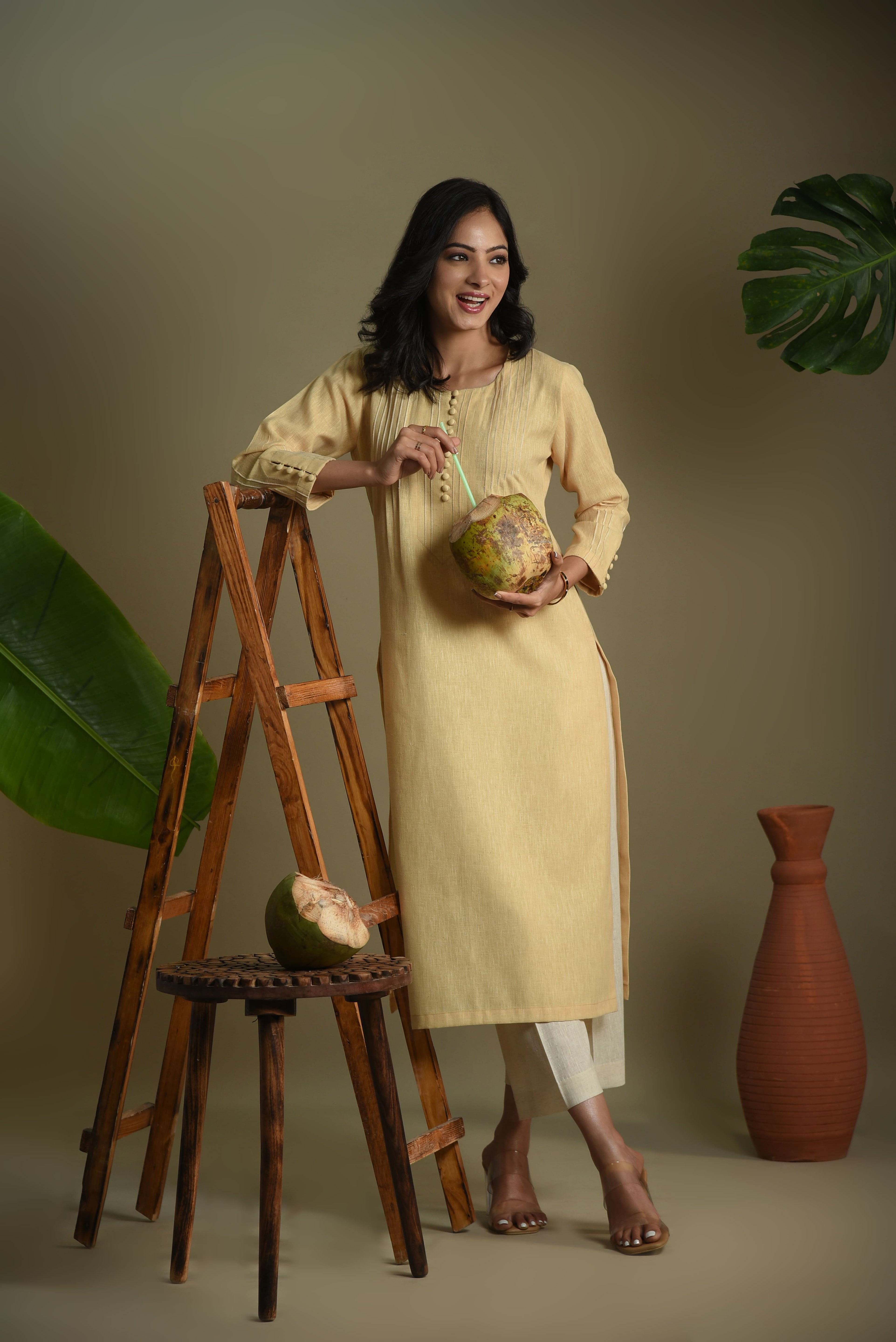 the woven texture catches light in this beautiful subtle way that photos cannot fully capture. came well packed with no creases at all. L fits perfectly — kurta length is just right, not too long not too short. this has become one of my favourite pieces honestly.