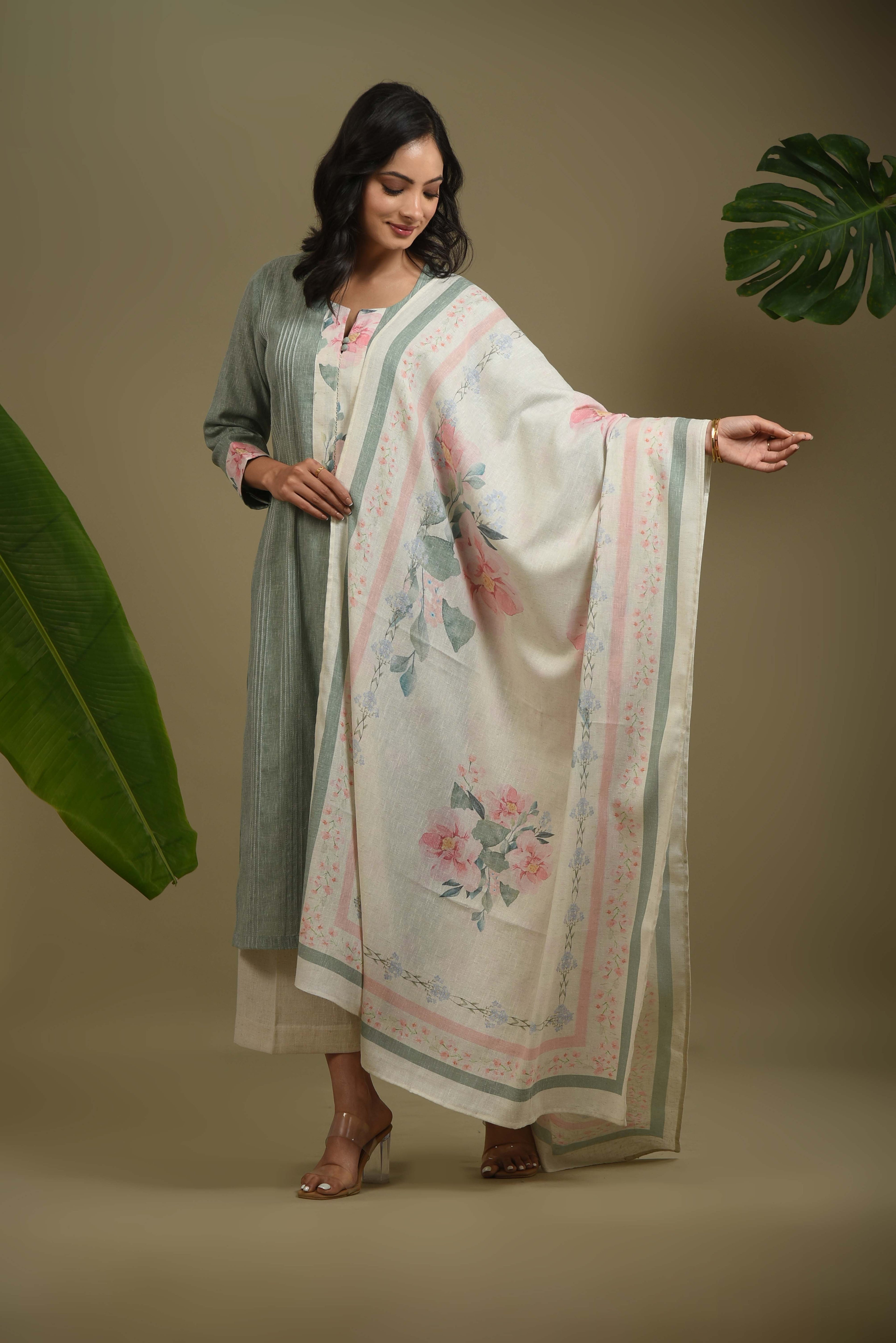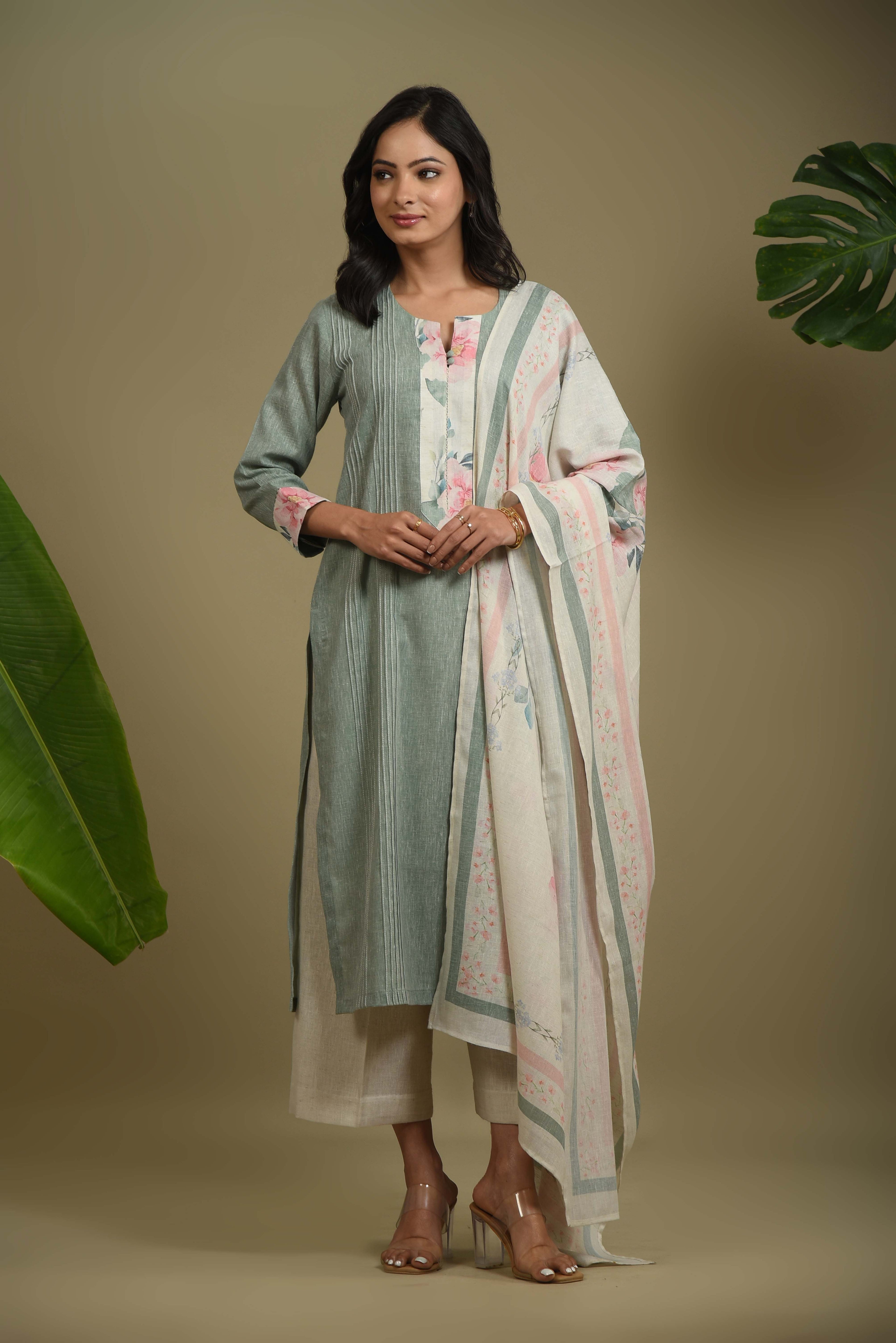 Black With Green Kota Hand Block Printed Unstitched Suit Fabric Set With Kota Hand Block Printed Dupatta