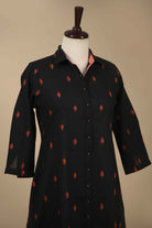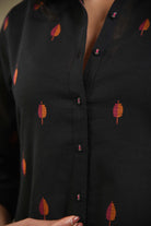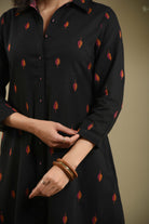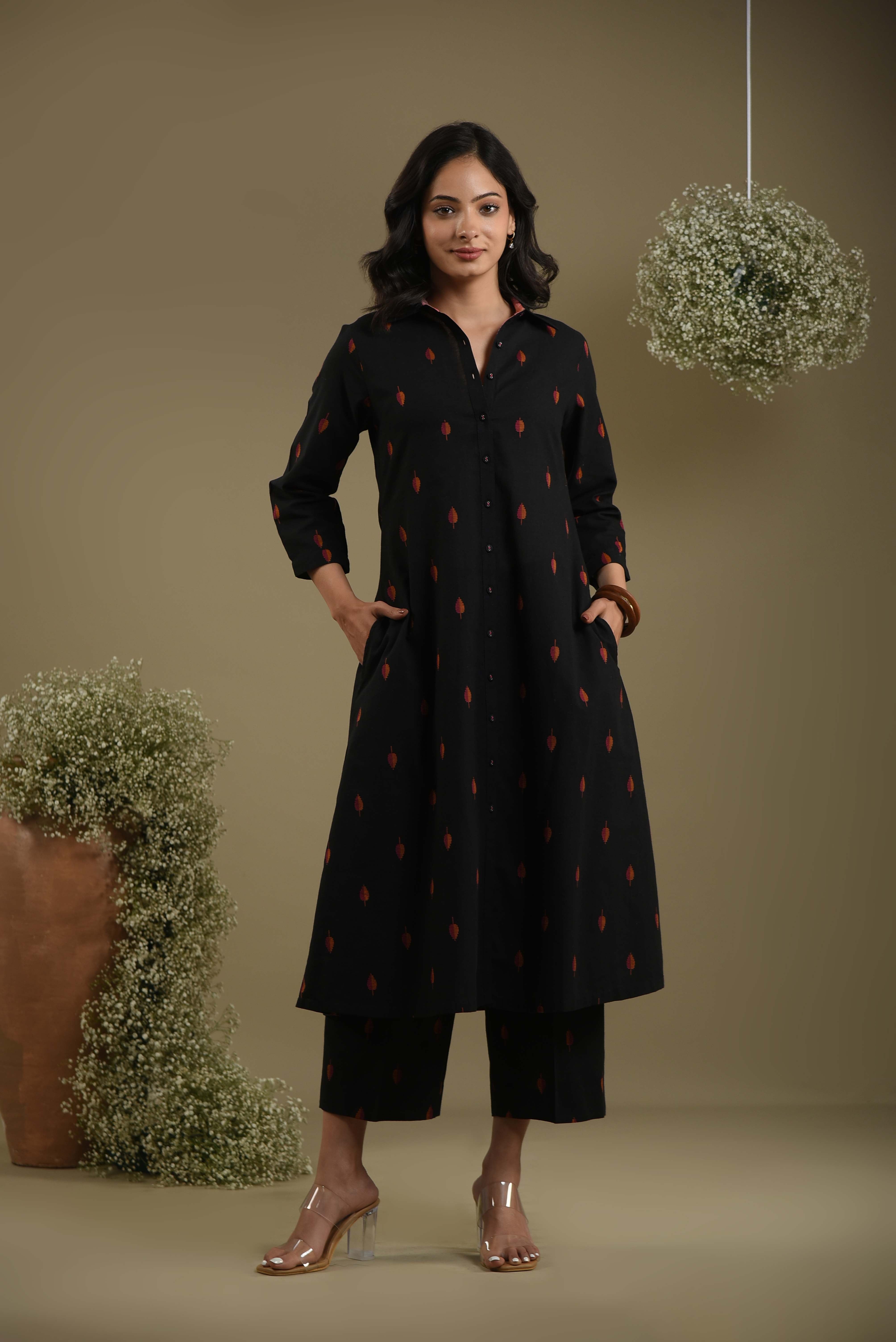 Black Cotton Woven A-Line Kurta Set With Cotton Woven Culottes – Regular Fit