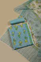 Blue Pure Cotton Hand Block Printed Unstitched Suit Fabric Set With Kota Hand Block Printed Dupatta