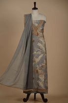 Gray Cotton Printed Unstitched Suit Fabric Set With Cotton Dupatta