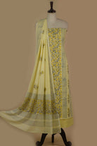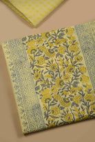 Light Yellow Mul Cotton Printed Unstitched Suit Fabric Set With Mul Cotton Printed Dupatta